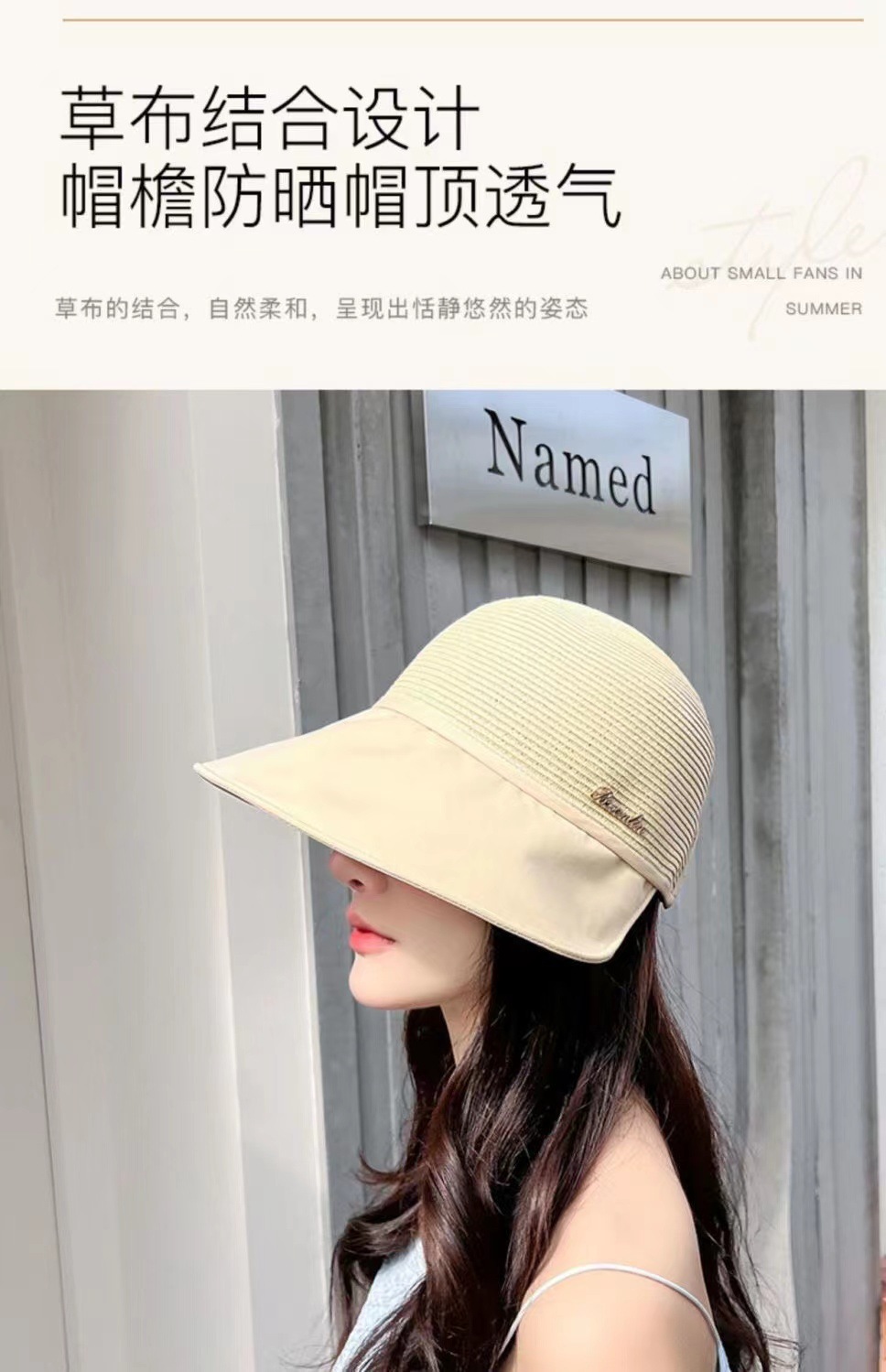 [베이지] 자외선 차단 모자 - 후크 + 방풍 로프 +