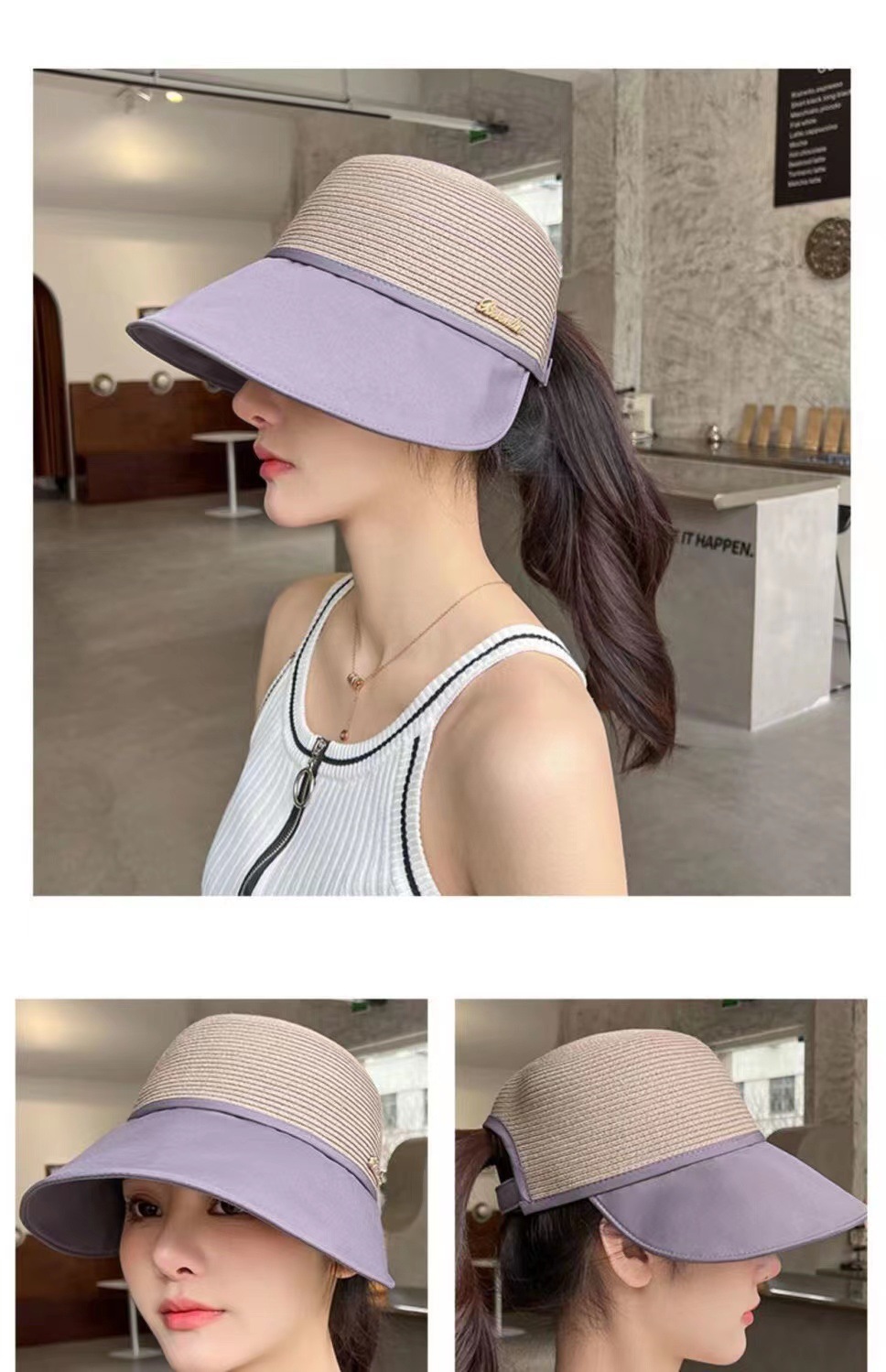 [스모크 퍼플] 자외선 차단 모자 - 후크 + 방풍 로프 +