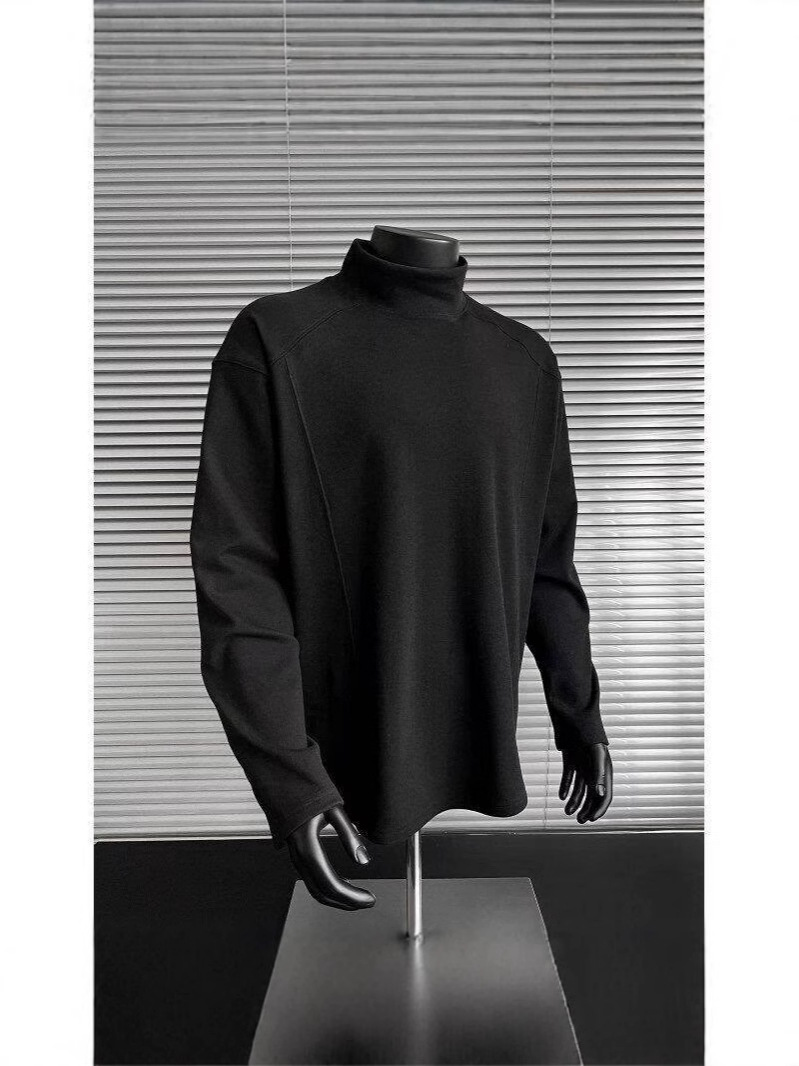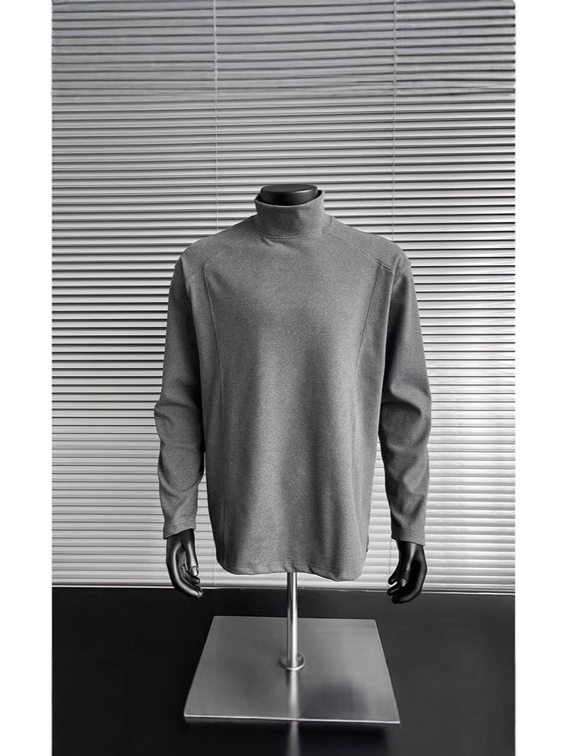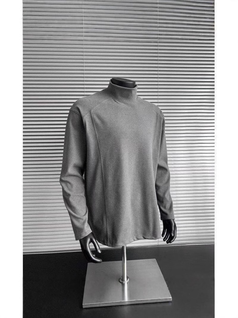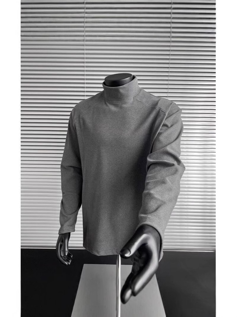 회색 반 높이 칼라 벨벳베이스 셔츠 남자의 겨울 따뜻한 내부 긴팔 티셔츠 미국식 하이 엔드 헝겊 스웨터