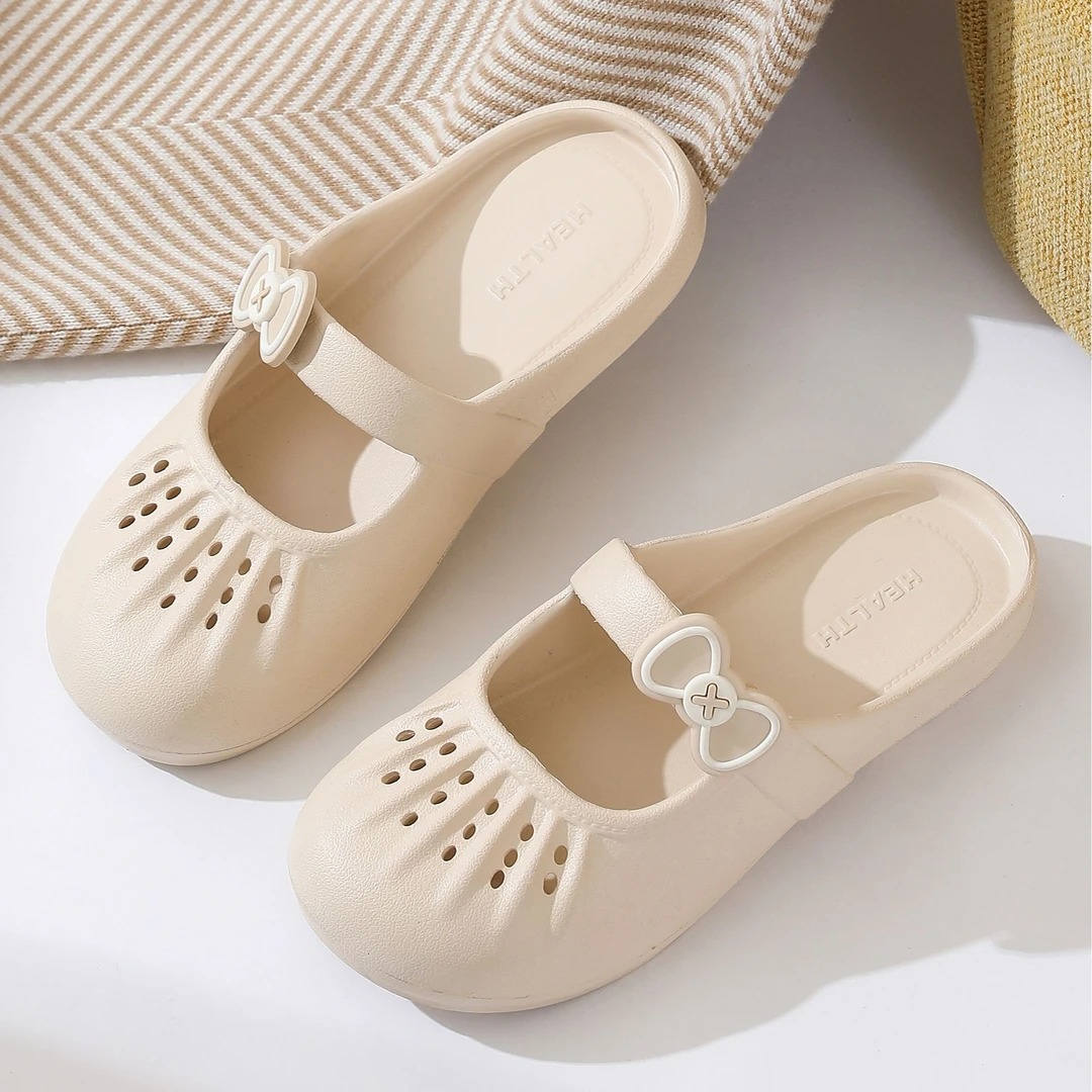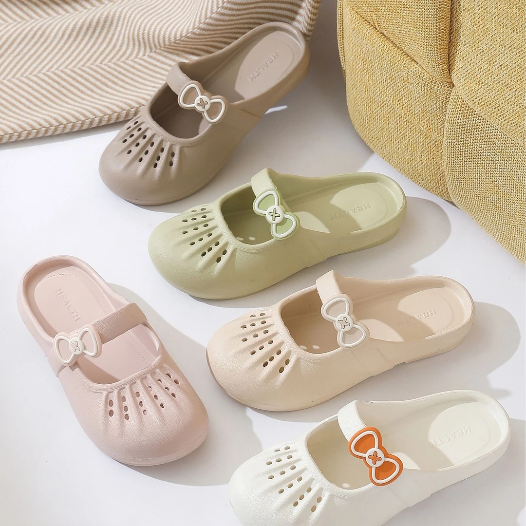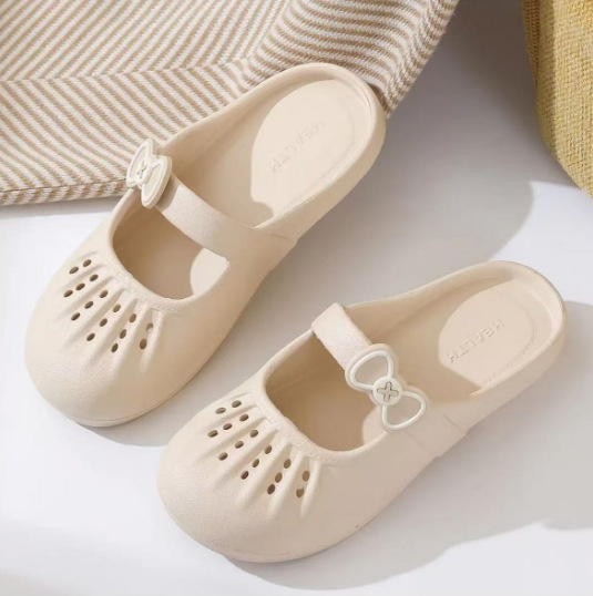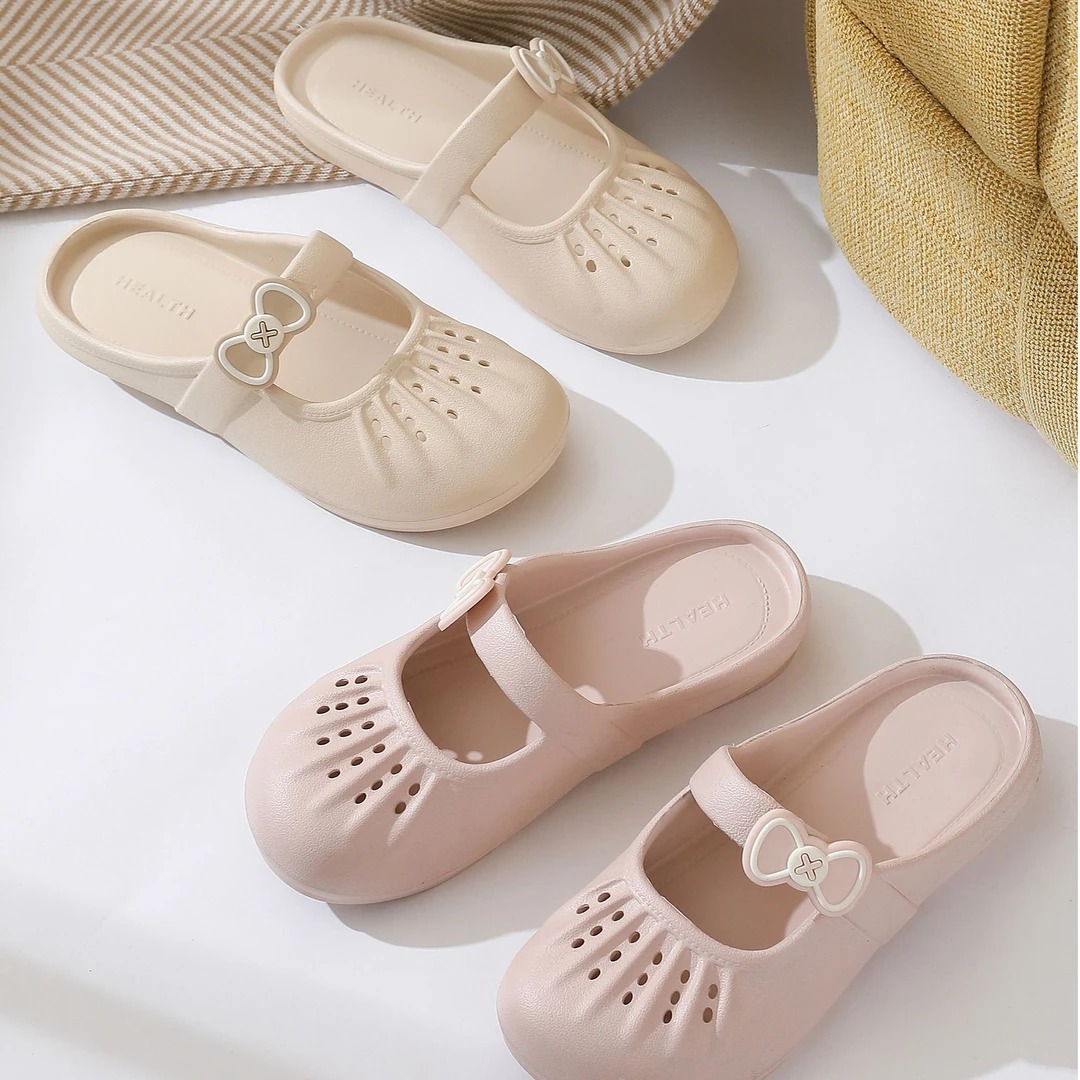 2025 여름 새 구멍 신발 폐쇄 탑 슬리퍼 여성의 미끄럼 방지 귀여운 캐주얼 홈 외부 착용 부드러운 바닥 호흡