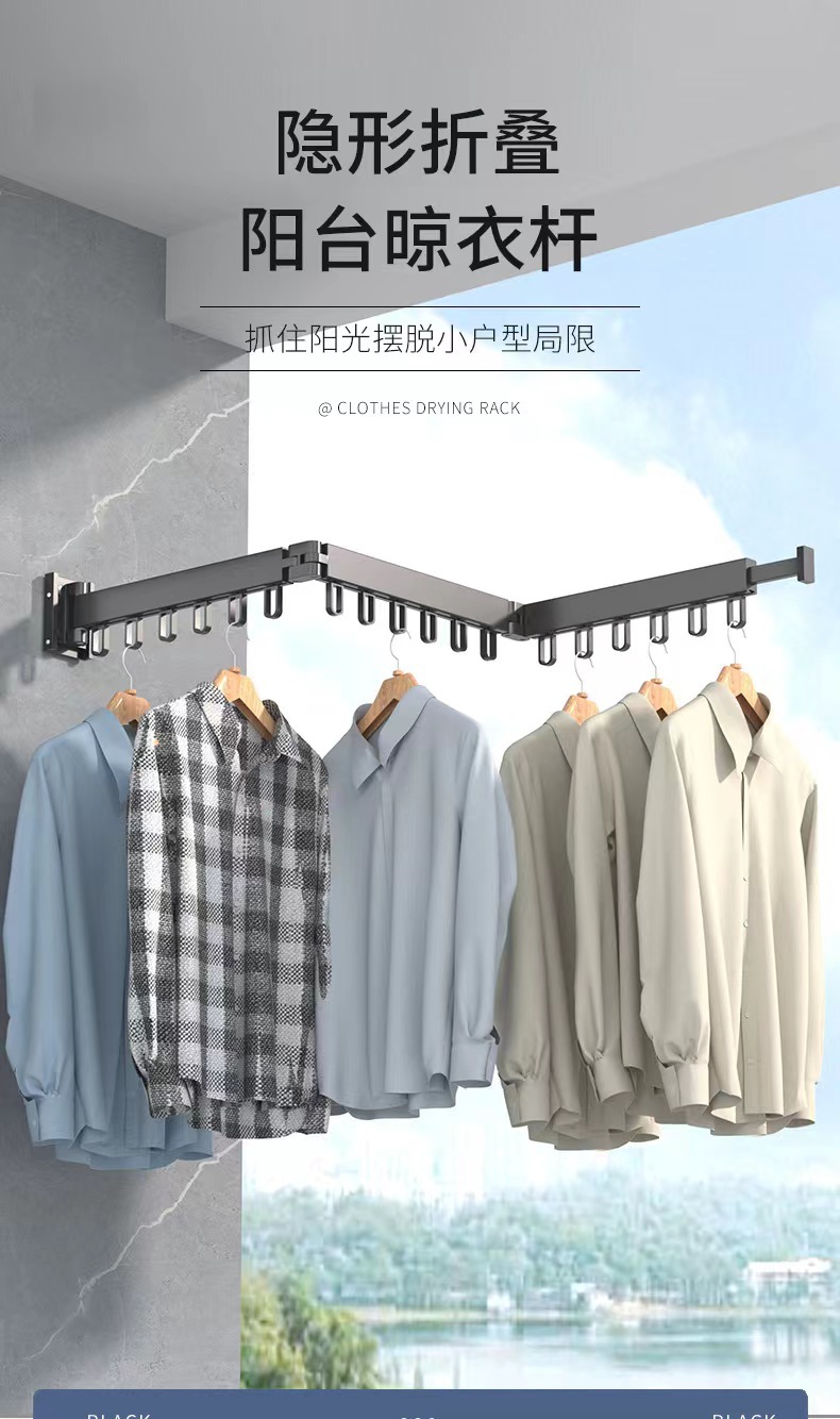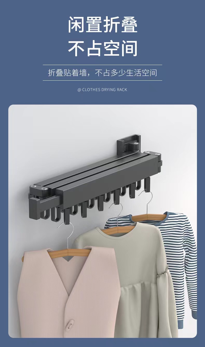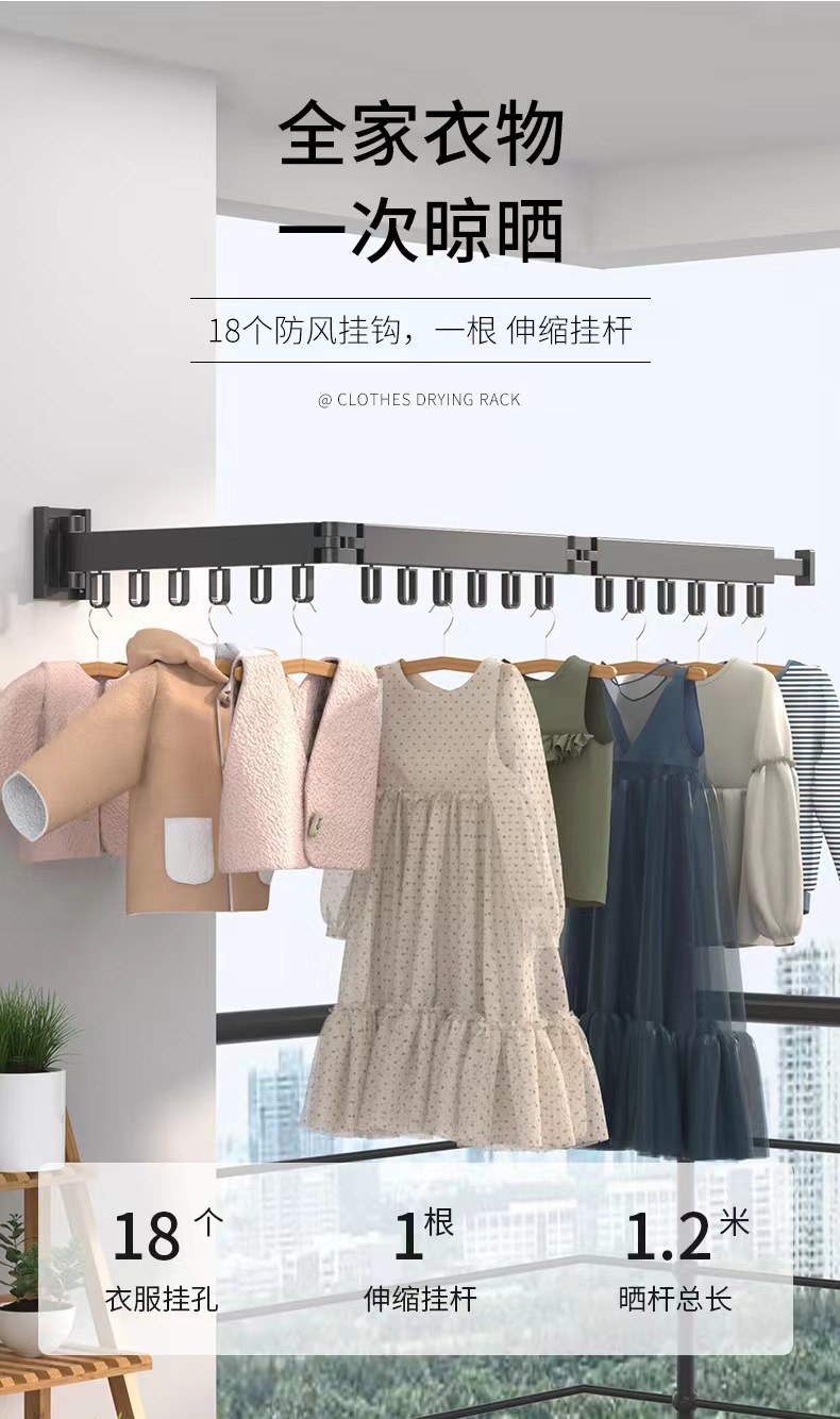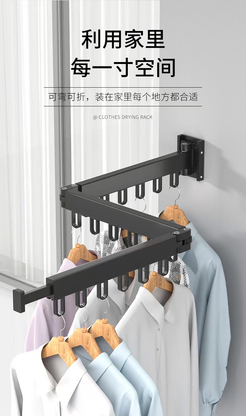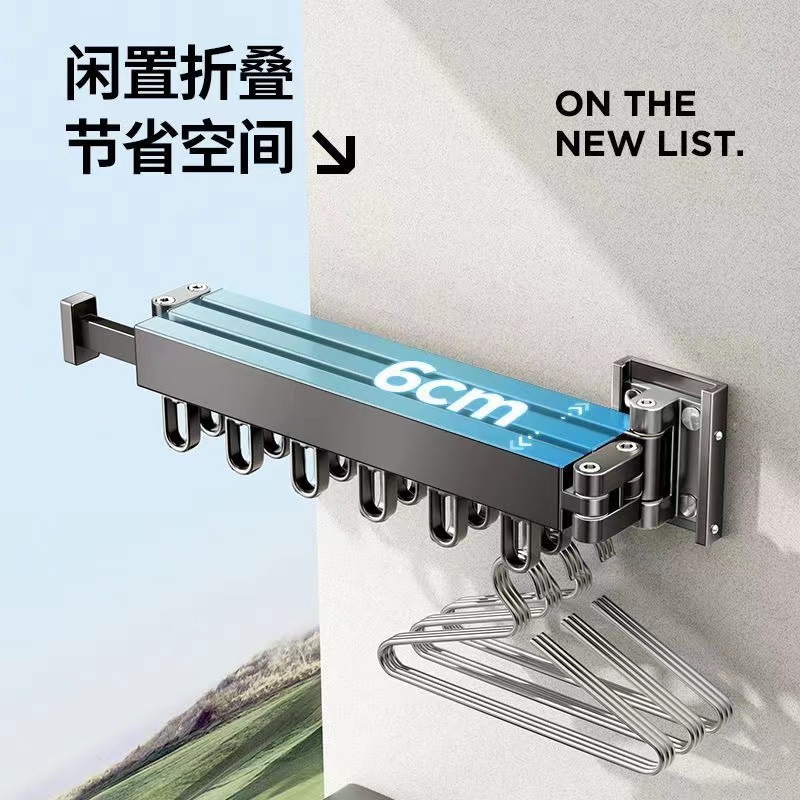 펀치 프리 접이식 건조 랙 벽에 매달려 보이지 않는 야외 망원경 건조 랙 옷 막대 발코니 가정용 건조 유물
