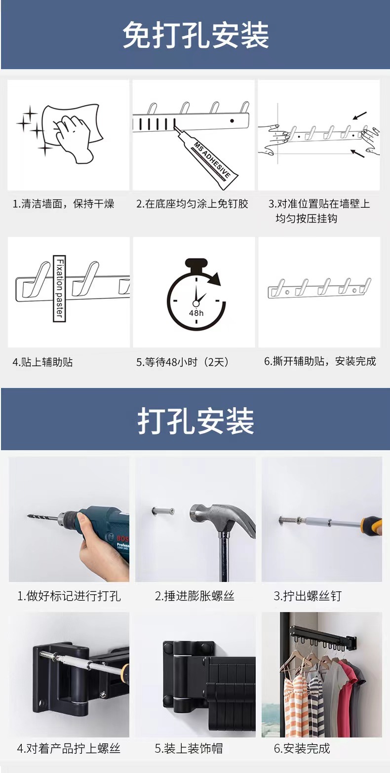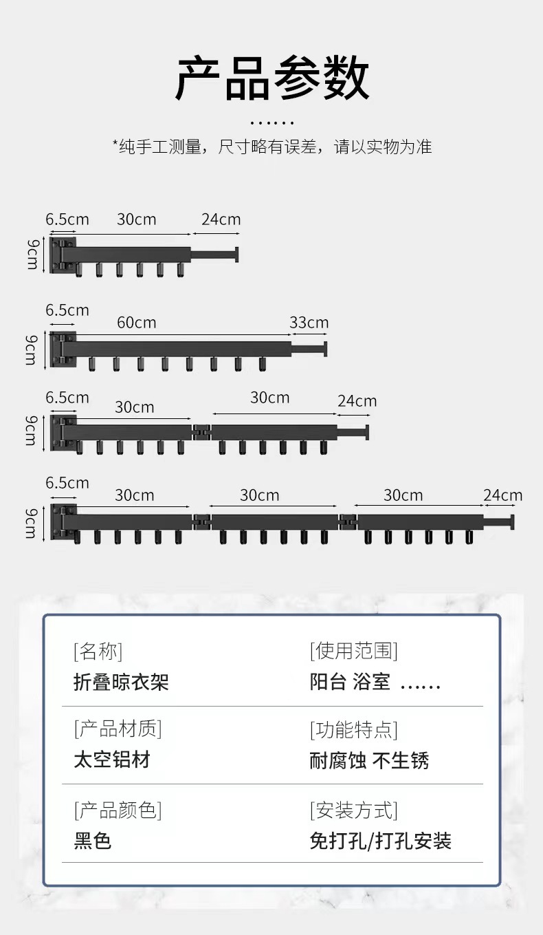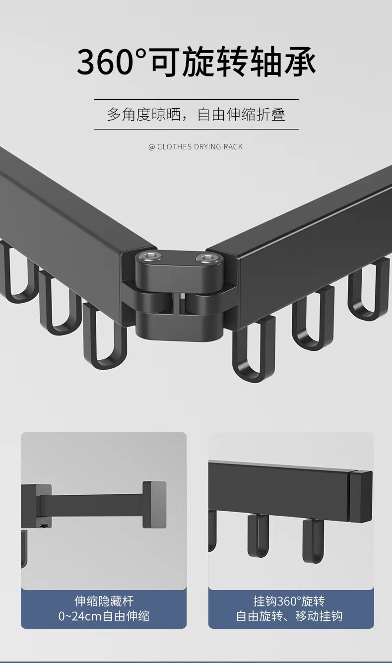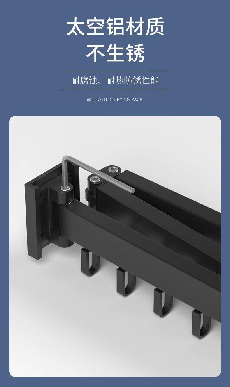 펀치 프리 접이식 건조 랙 벽에 매달려 보이지 않는 야외 망원경 건조 랙 옷 막대 발코니 가정용 건조 유물