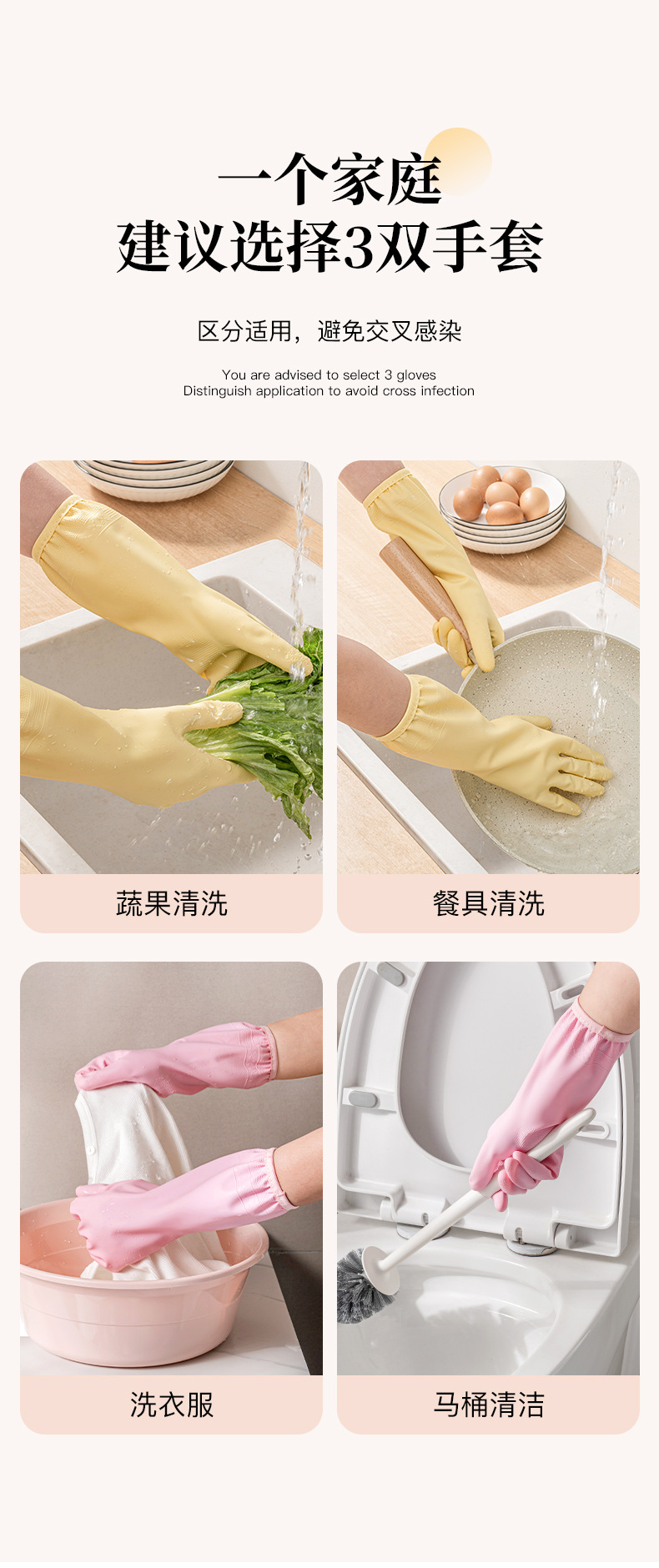 식기 세척 장갑 여성용 주방 가사 청소 라텍스 고무 내구성 세척 그릇 세탁 옷 고무 방수 가정용 장갑