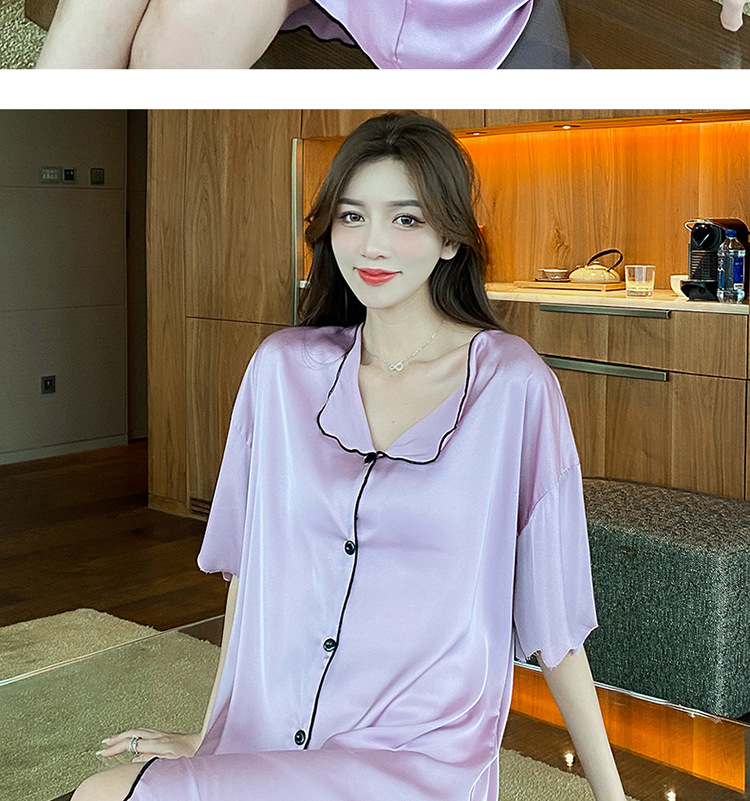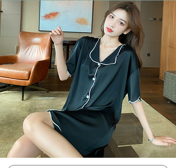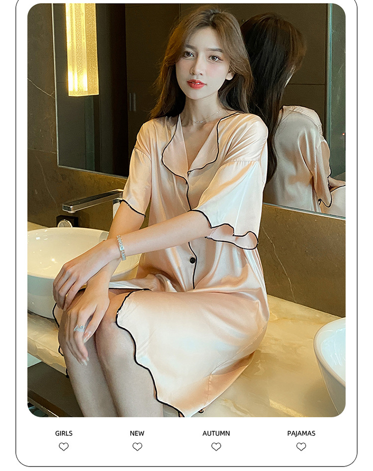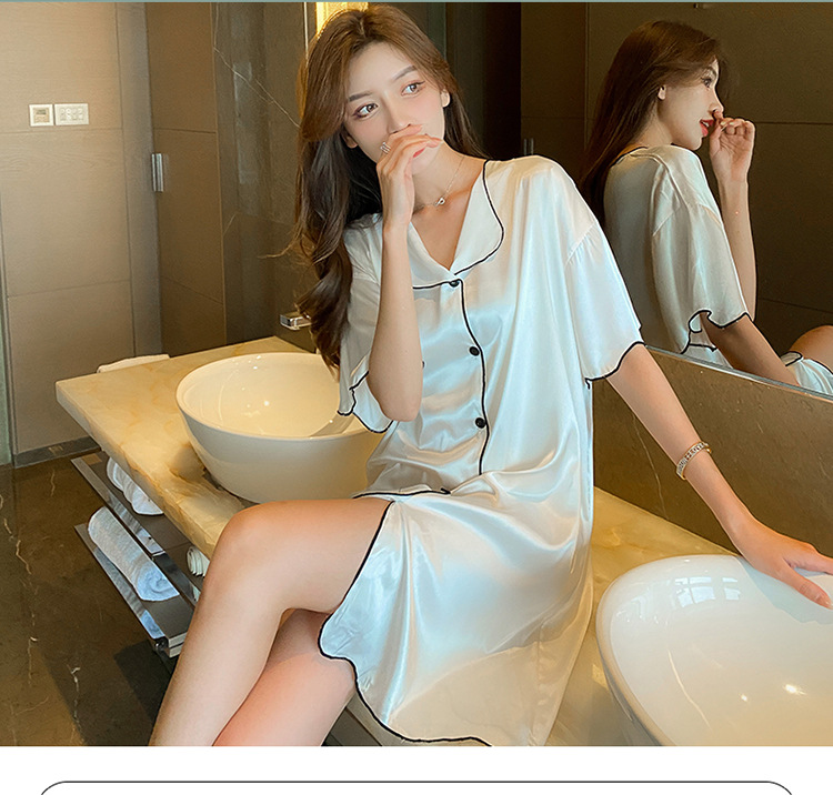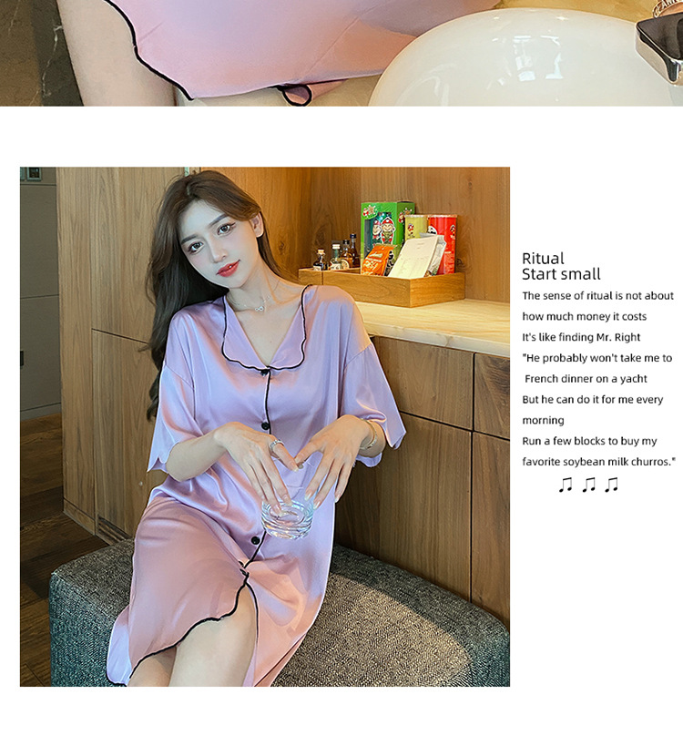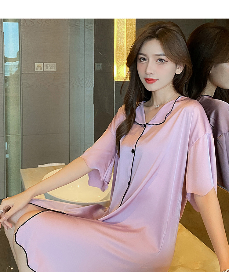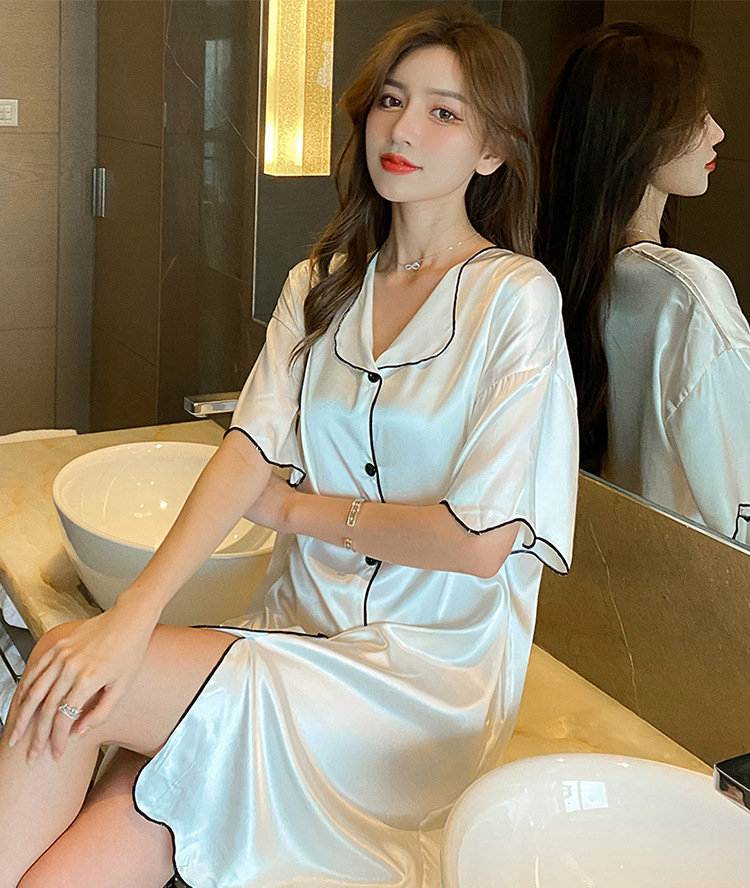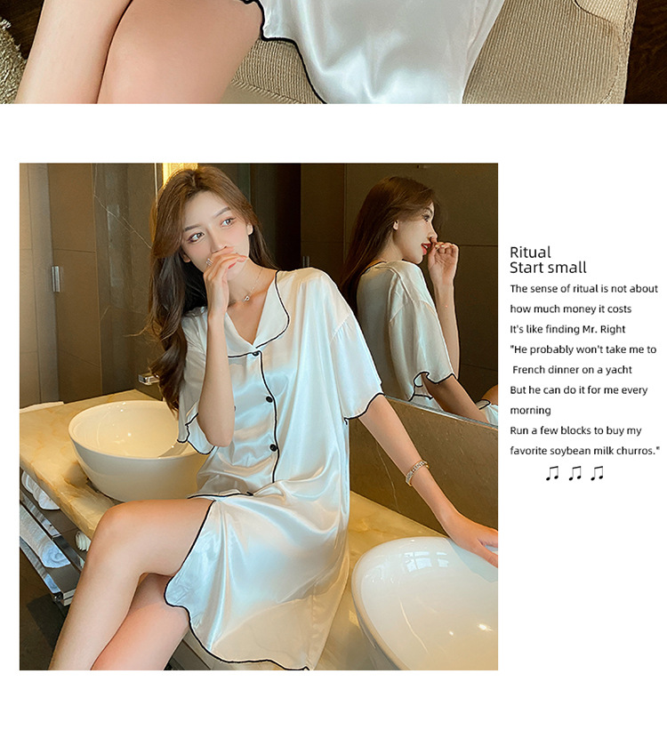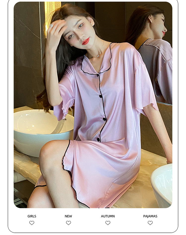 새로운 스타일의 나이트 드레스 여성 여름 아이스 실크 짧은 소매 여름 얇은 섹시한 귀여운 여성 실크 순수한 욕망 스타일 홈 의류