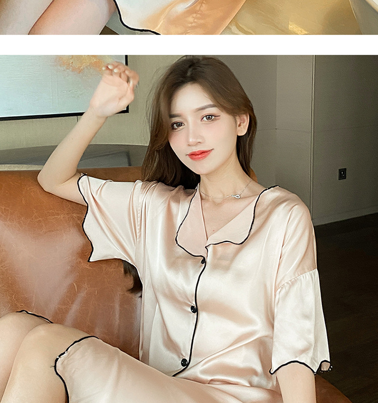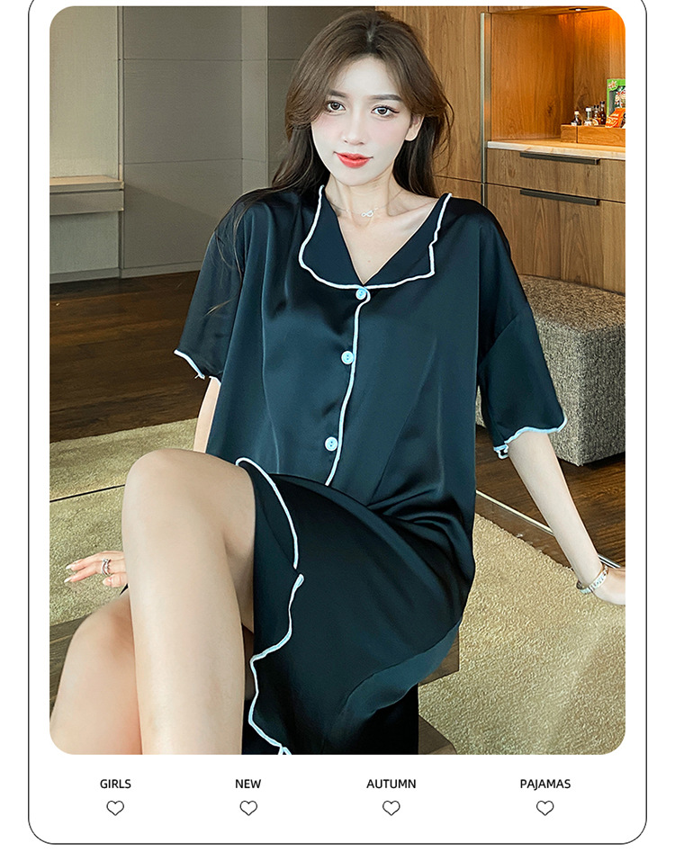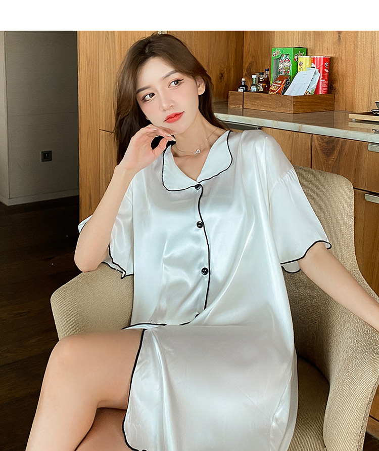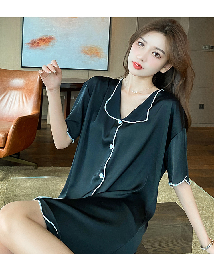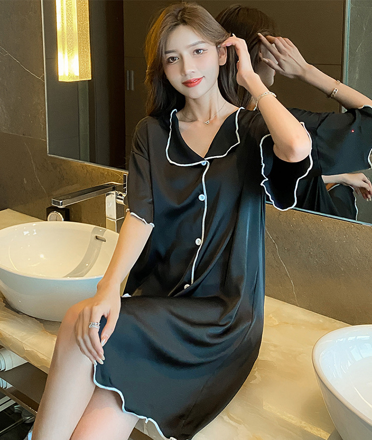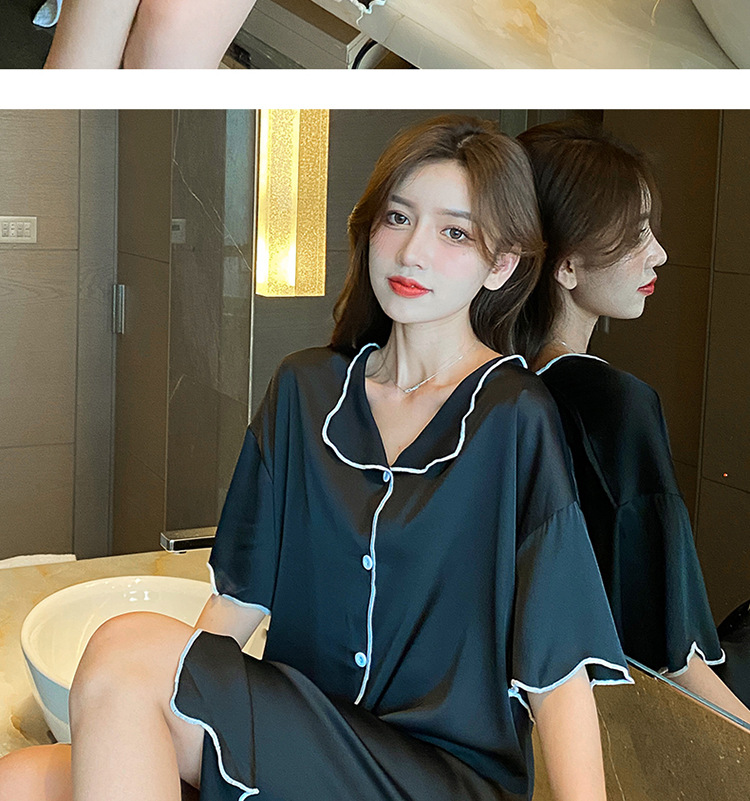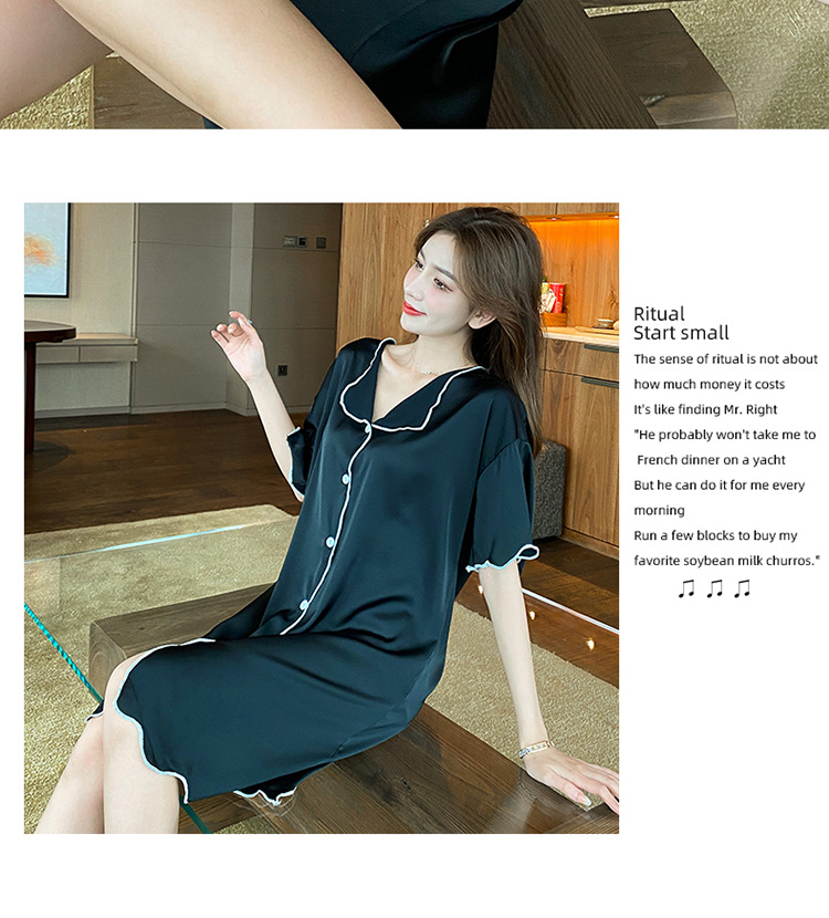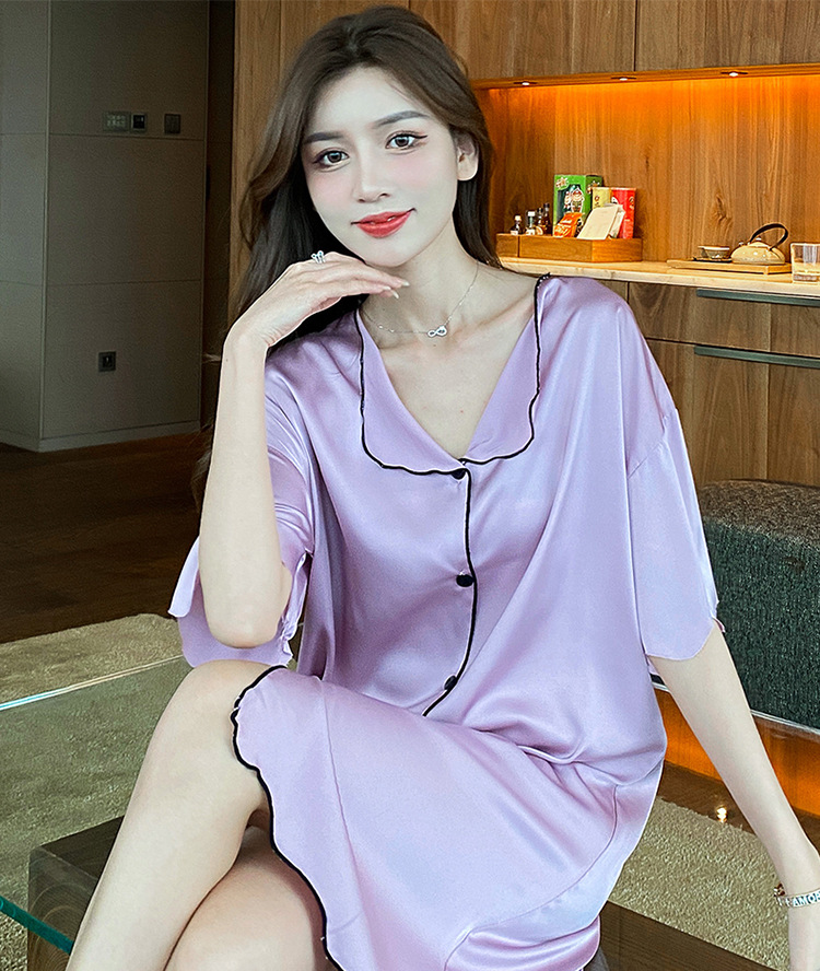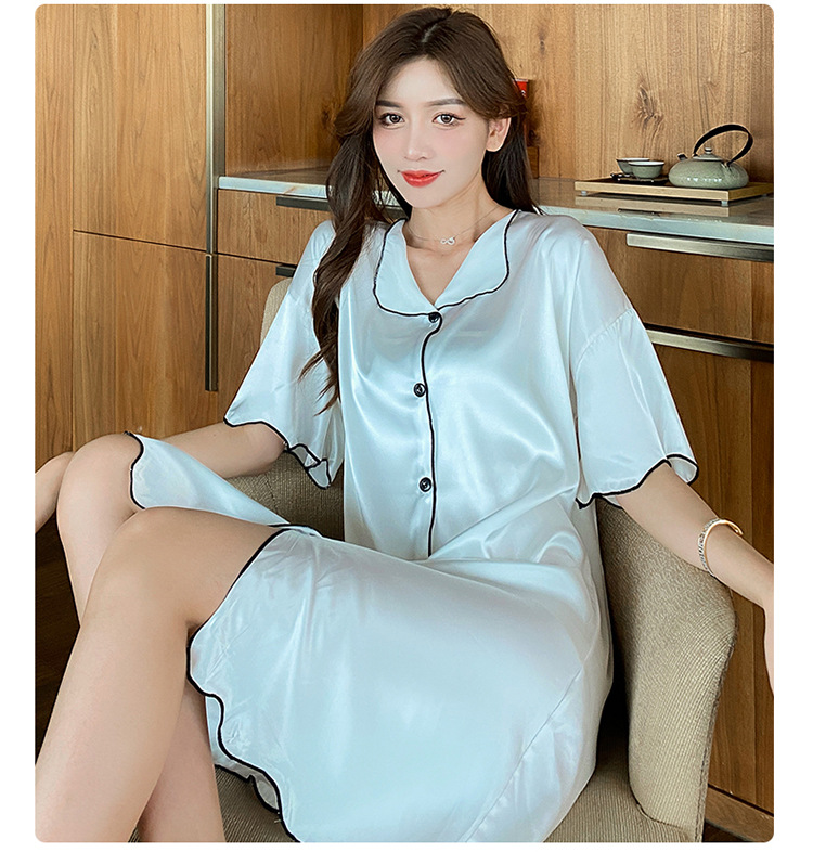 새로운 스타일의 나이트 드레스 여성 여름 아이스 실크 짧은 소매 여름 얇은 섹시한 귀여운 여성 실크 순수한 욕망 스타일 홈 의류