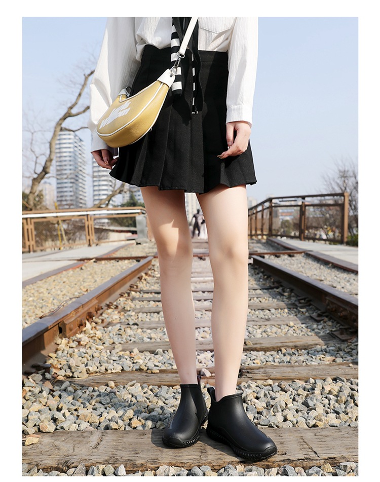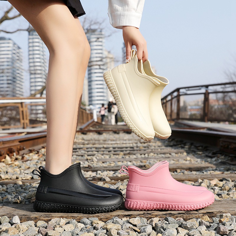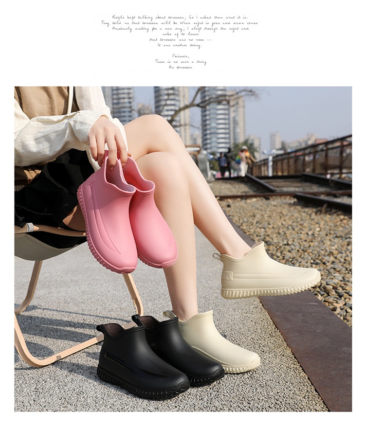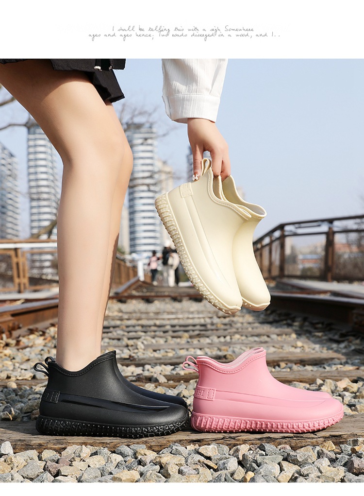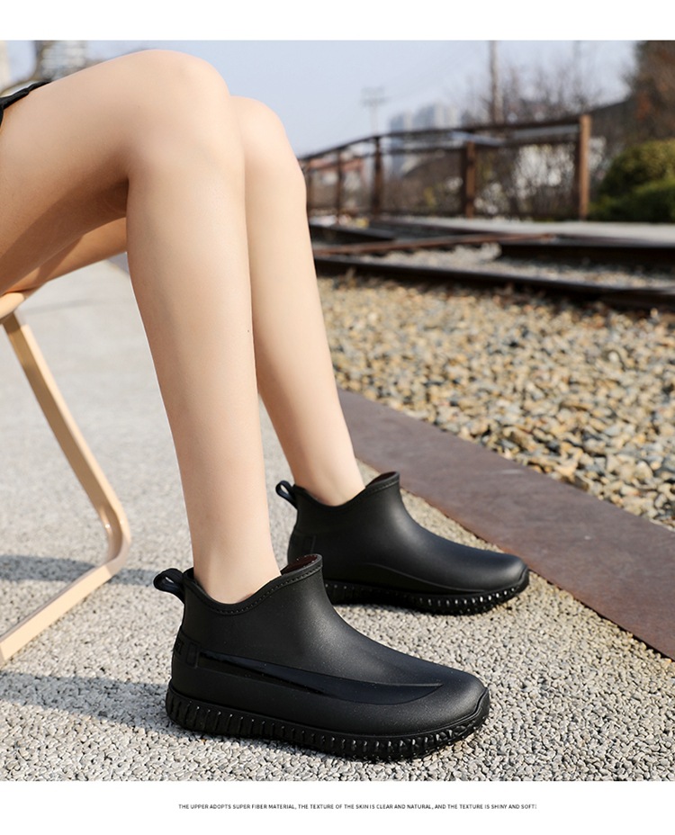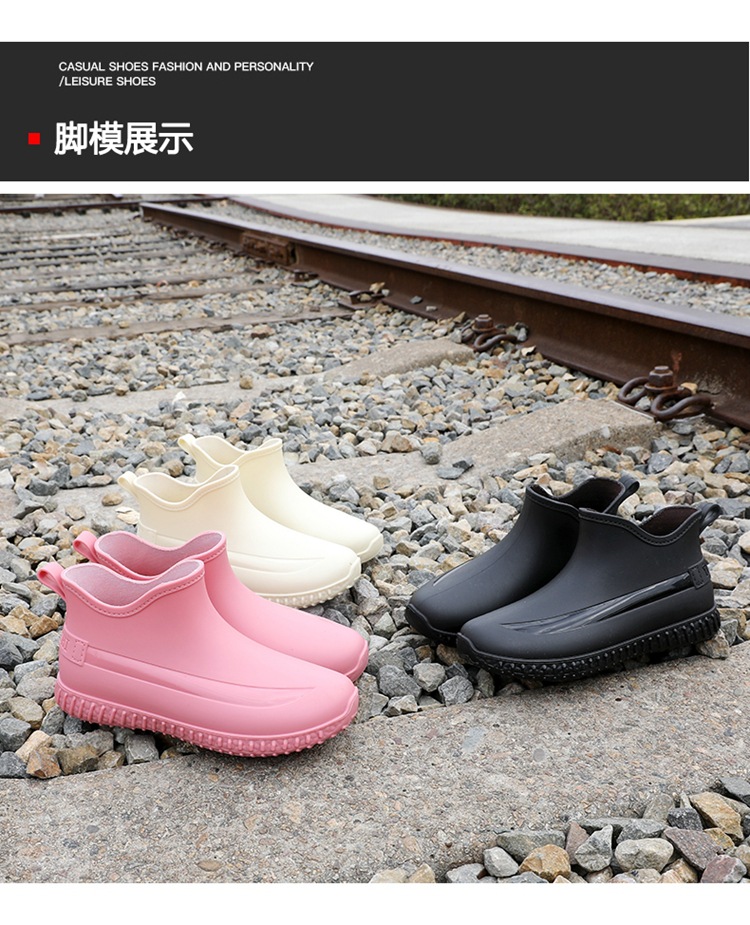 새로운 일본 스타일 간단한 짧은 장화 여성용 여름 방수 미끄럼 방지 두꺼운 바닥 사이버 유명 패션 착용 방지 고무 신발 워터 부츠