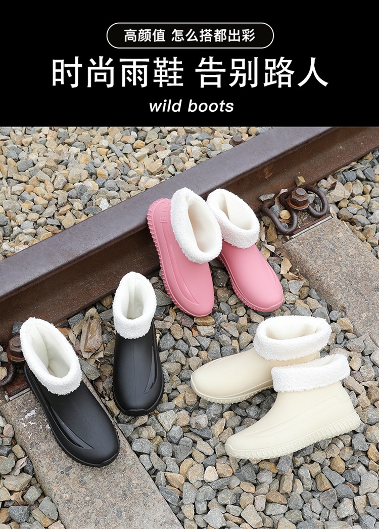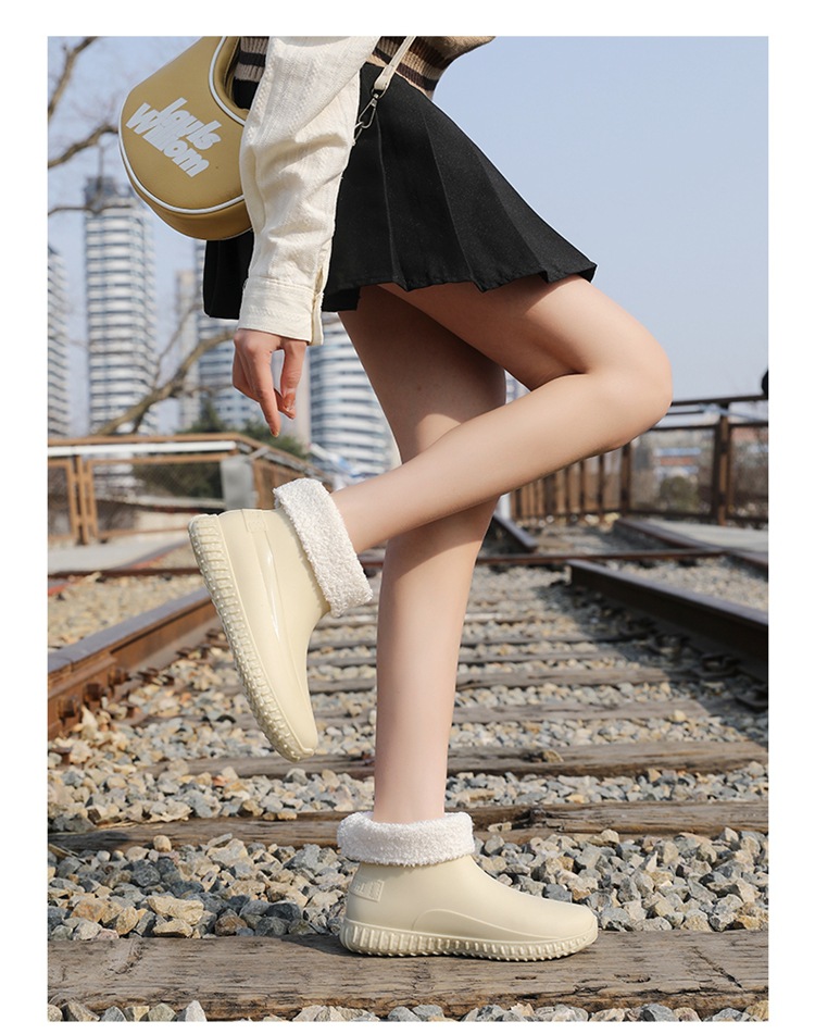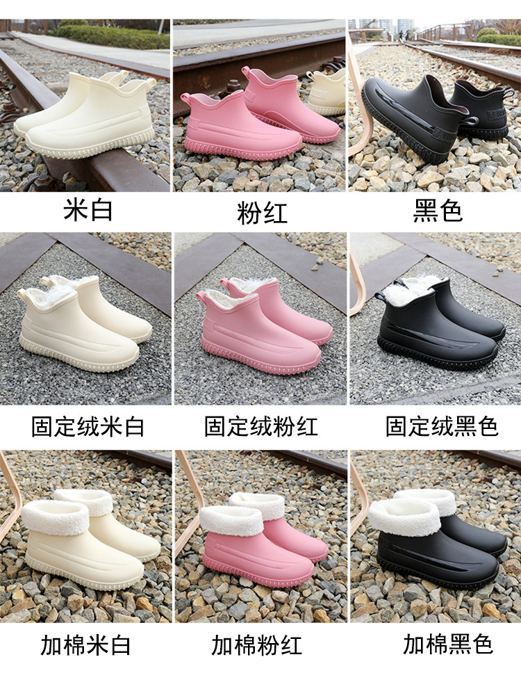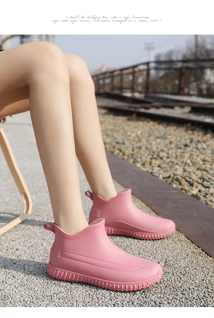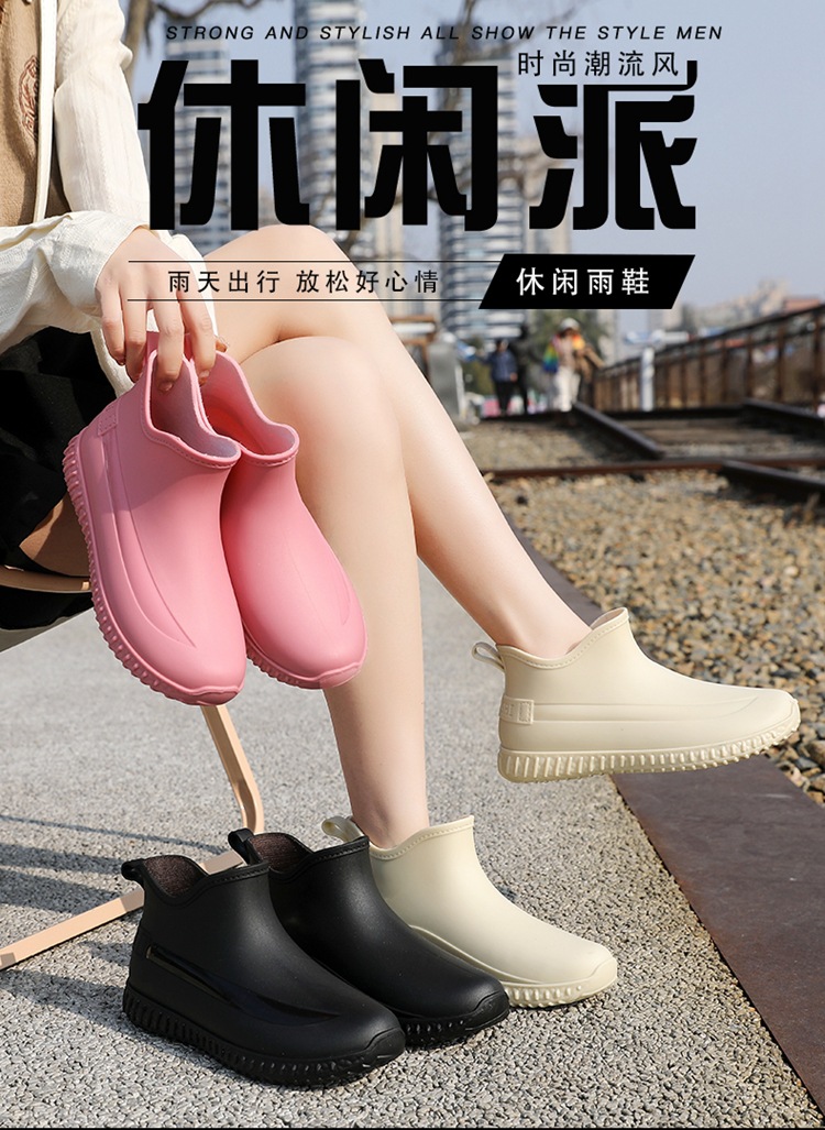 새로운 일본 스타일 간단한 짧은 장화 여성용 여름 방수 미끄럼 방지 두꺼운 바닥 사이버 유명 패션 착용 방지 고무 신발 워터 부츠