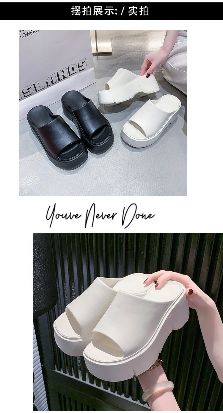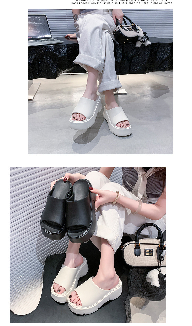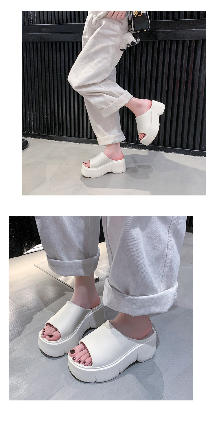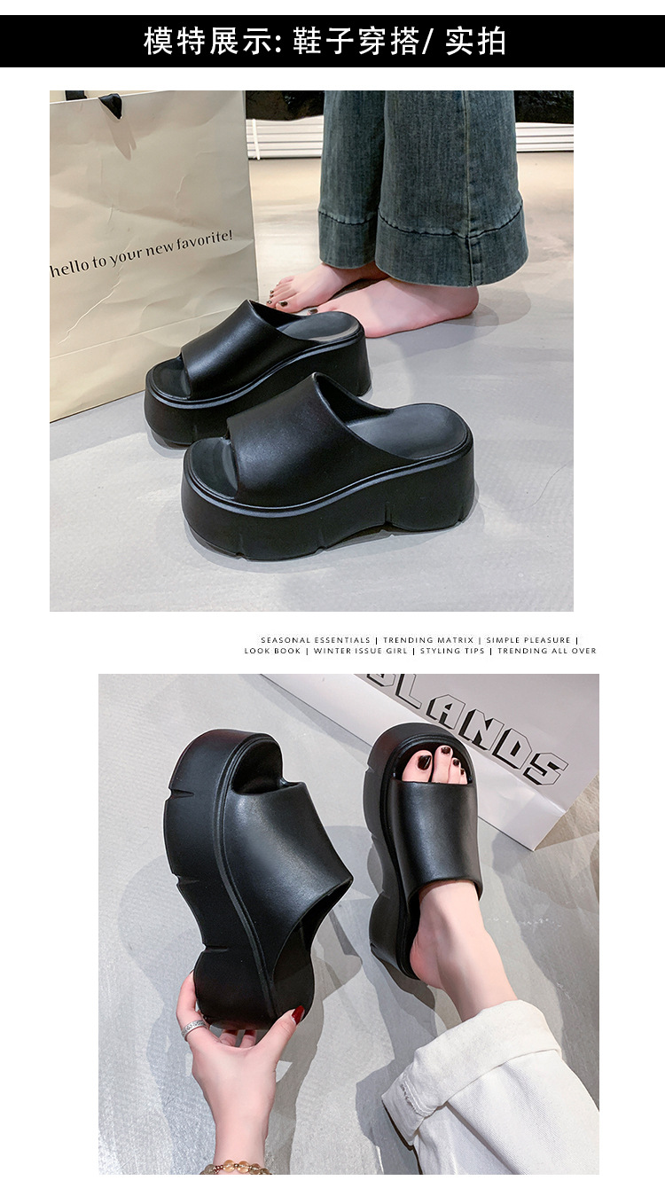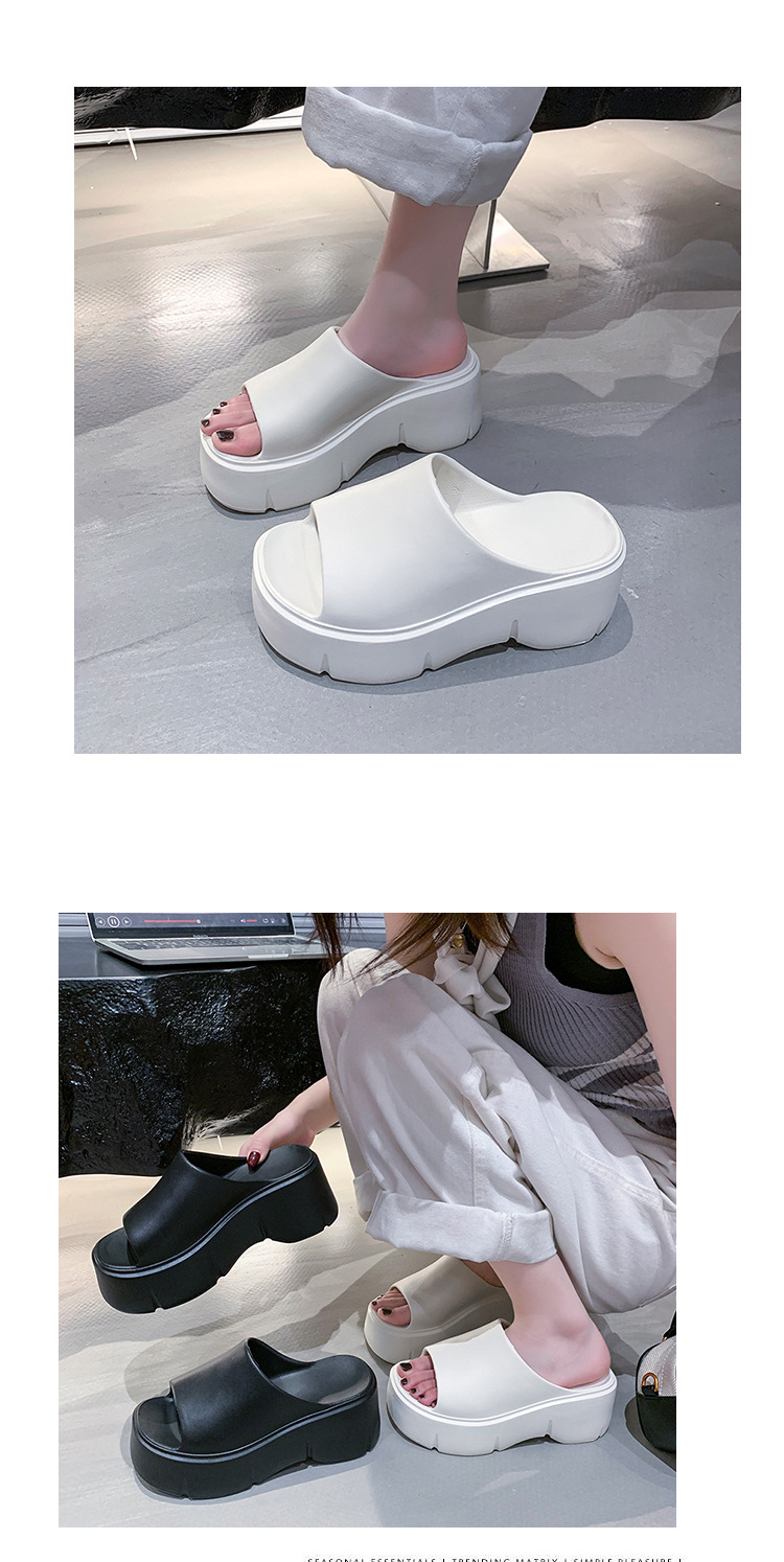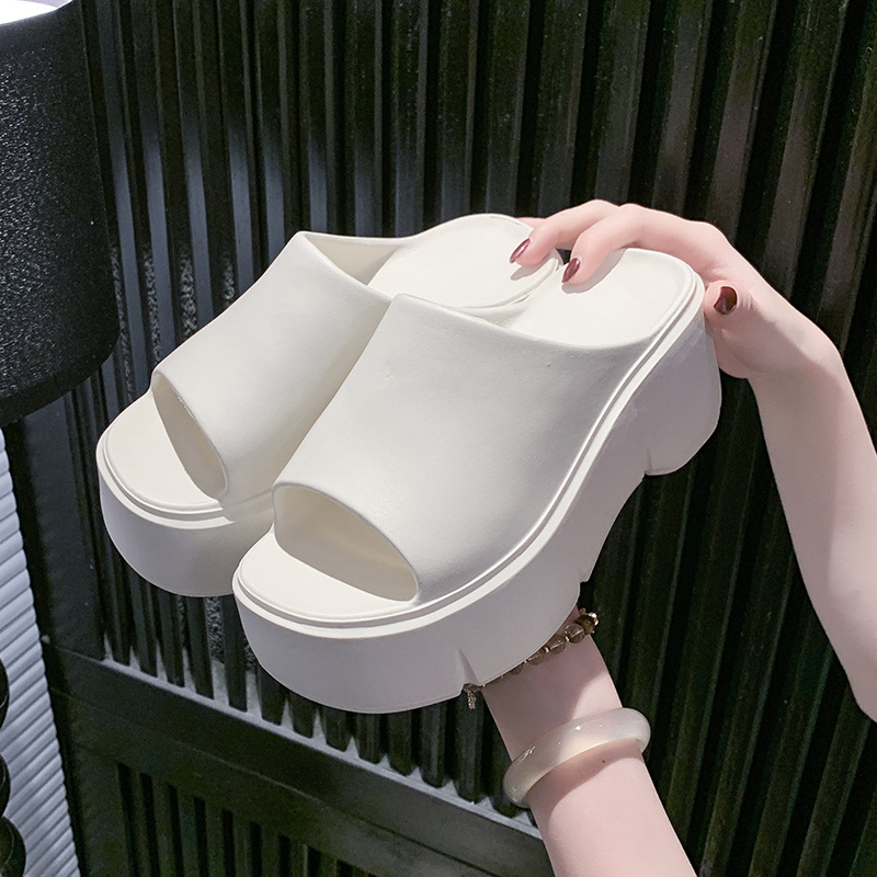2025년 여름 패션 심플한 단색 여성용 실내외 겸용 두꺼운 밑창 키높이 신상 샌들 슬리퍼 여성용