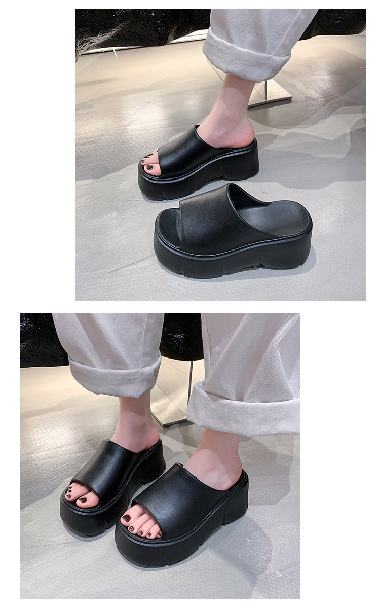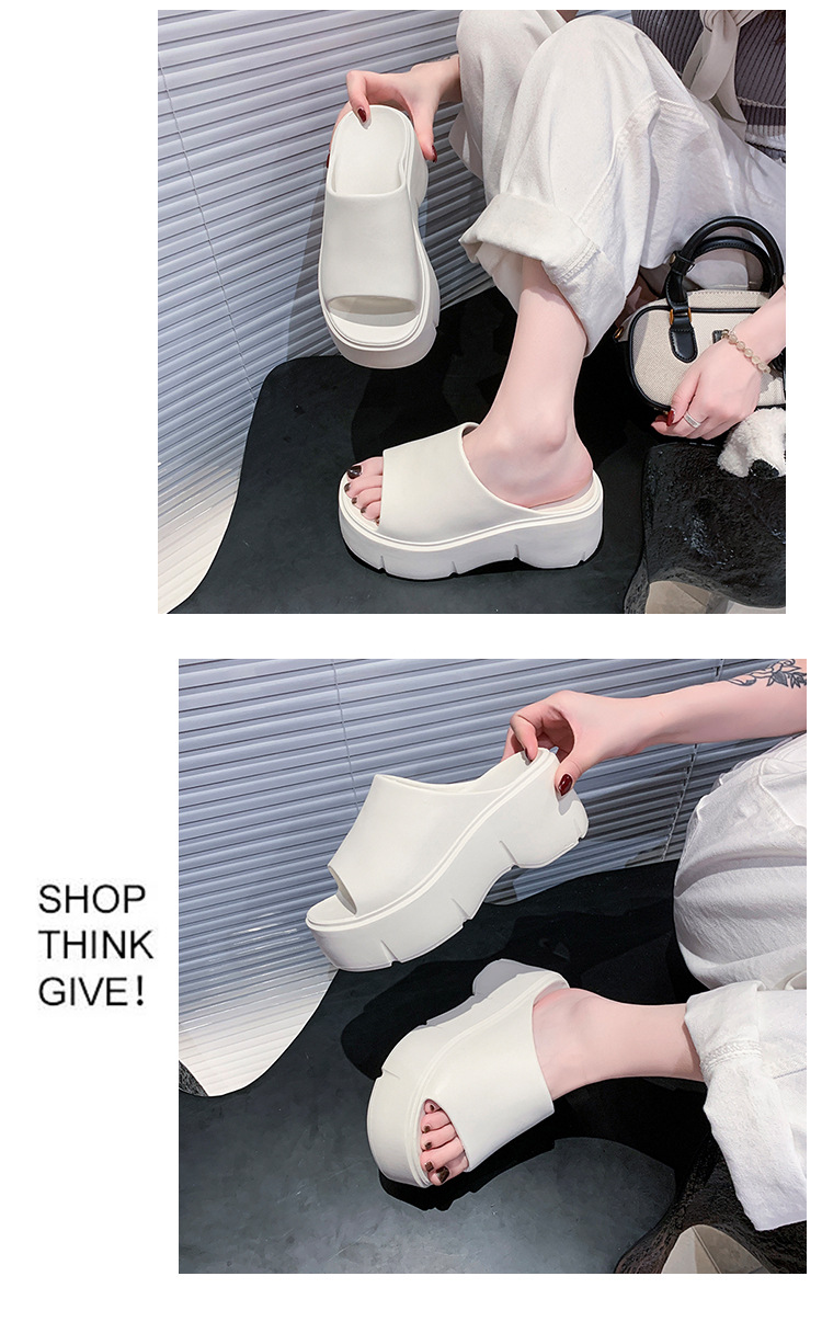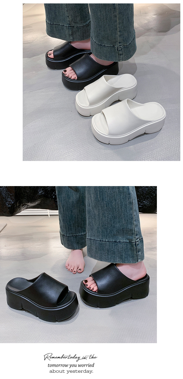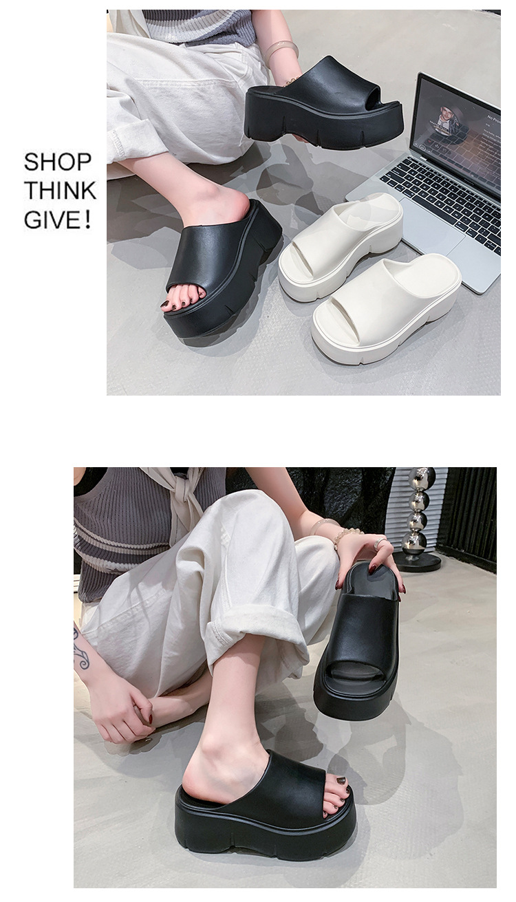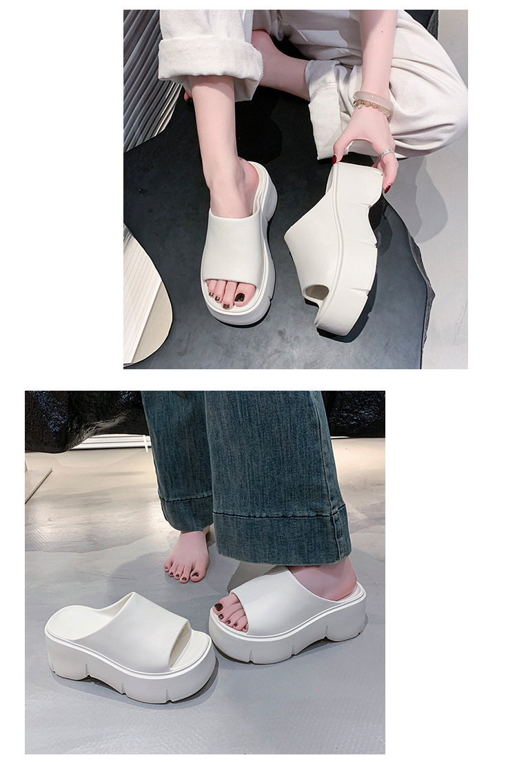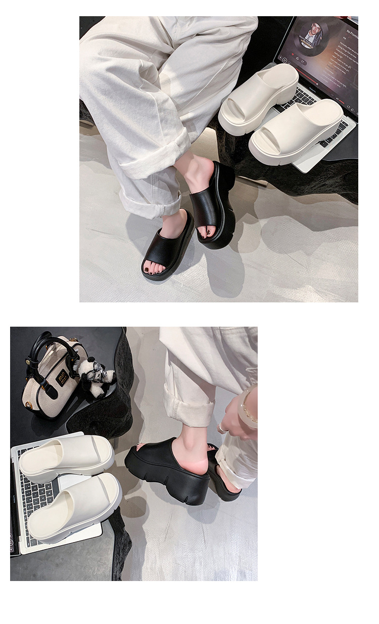 2025년 여름 패션 심플한 단색 여성용 실내외 겸용 두꺼운 밑창 키높이 신상 샌들 슬리퍼 여성용
