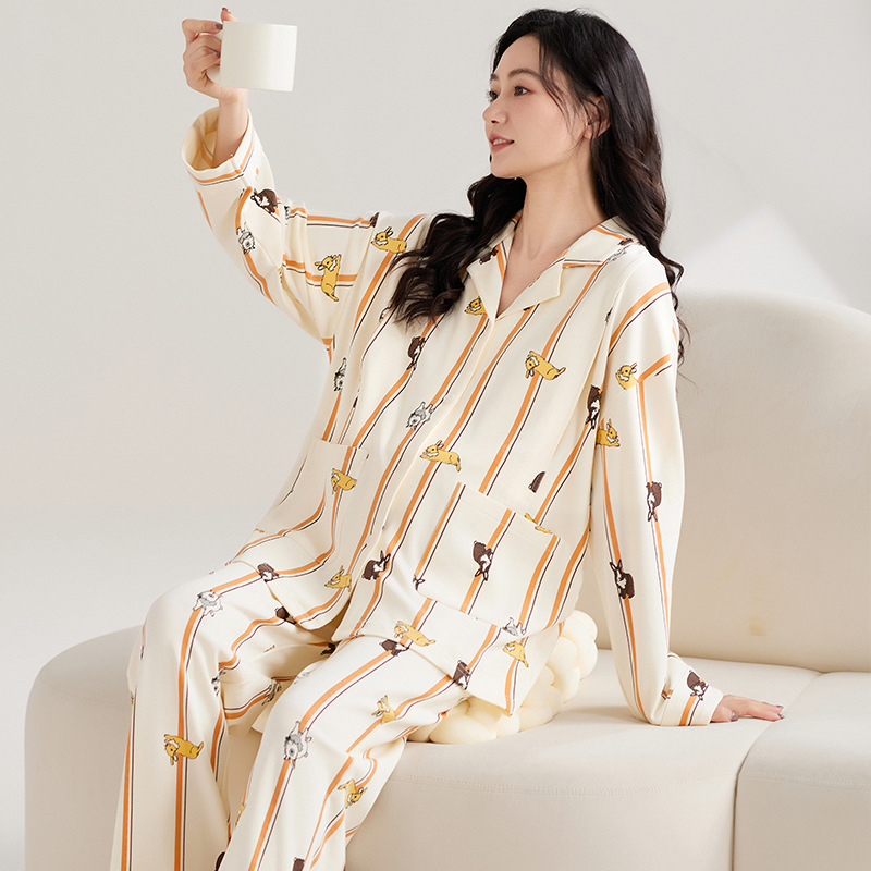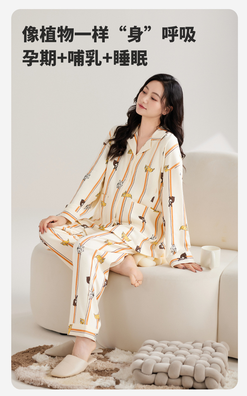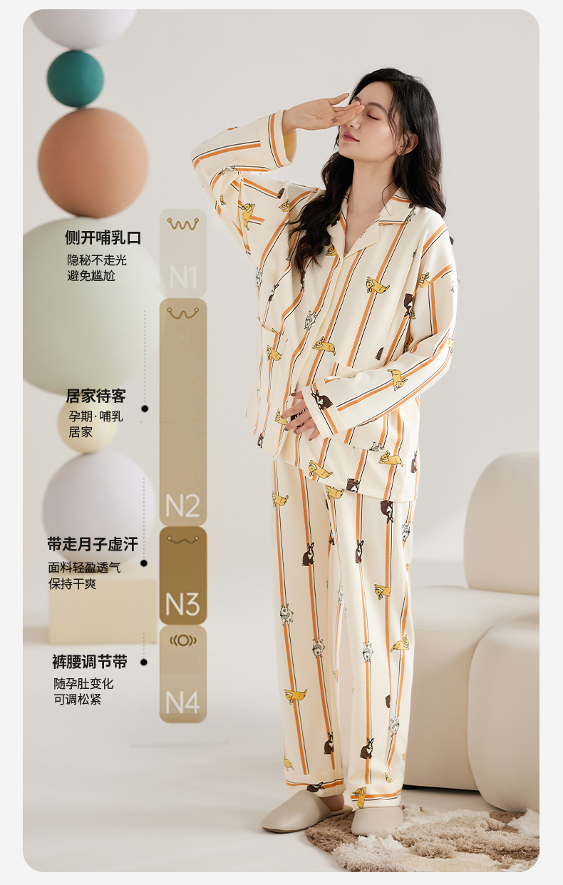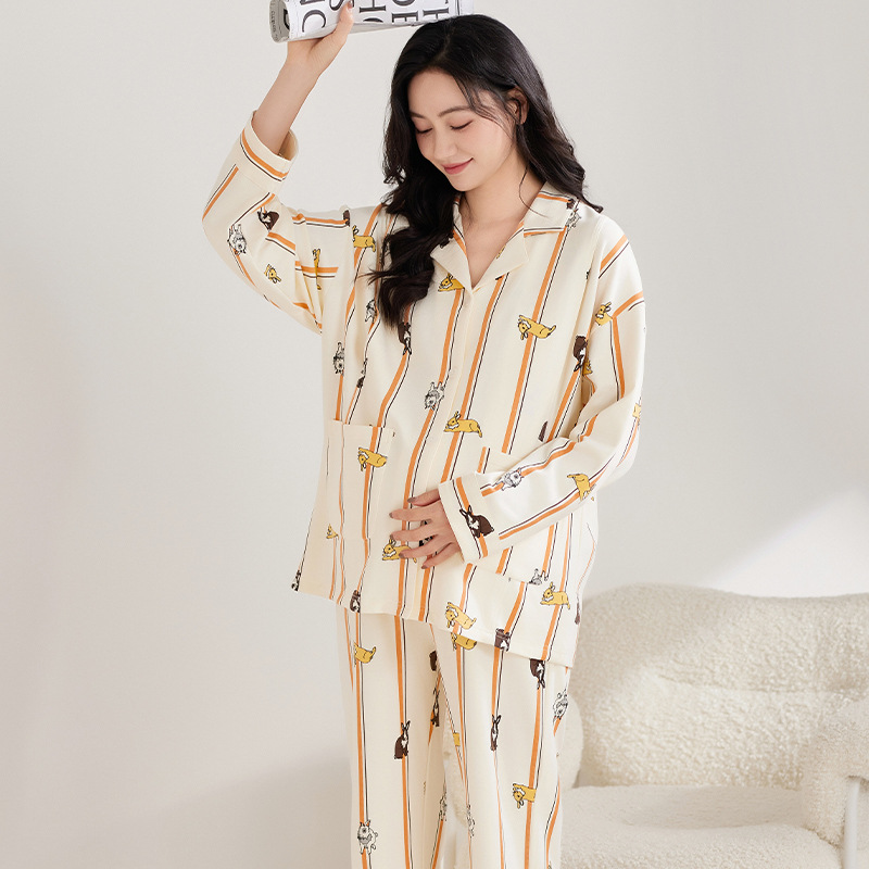 [A 등급] 봄 · 여름 임산부를 위한 긴소매 풀랙 순면 월간 의류 산후간호 파자마 임산부 의류 세트