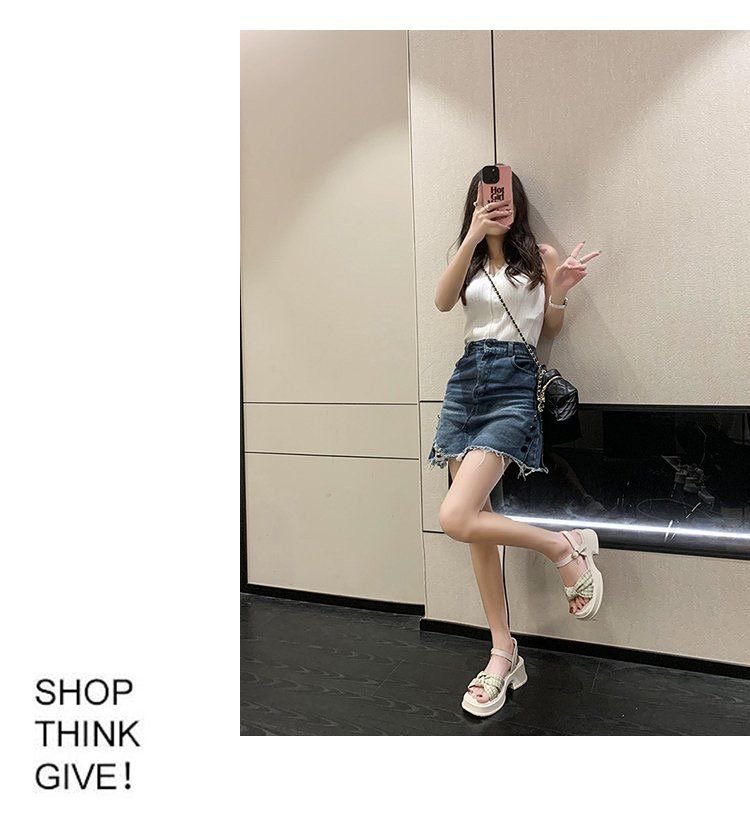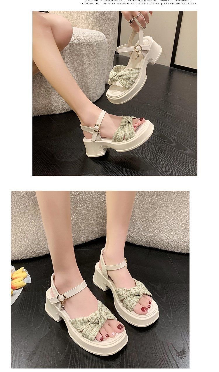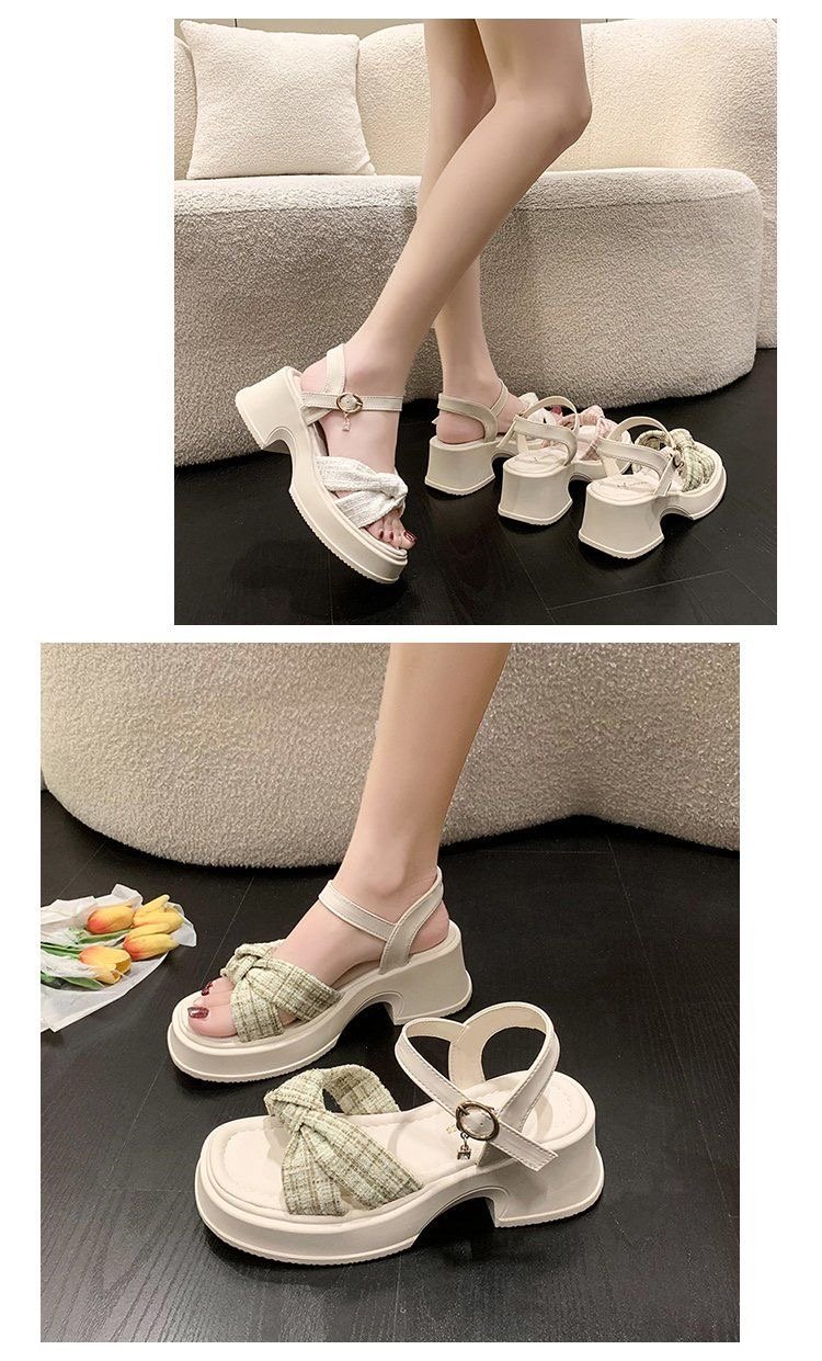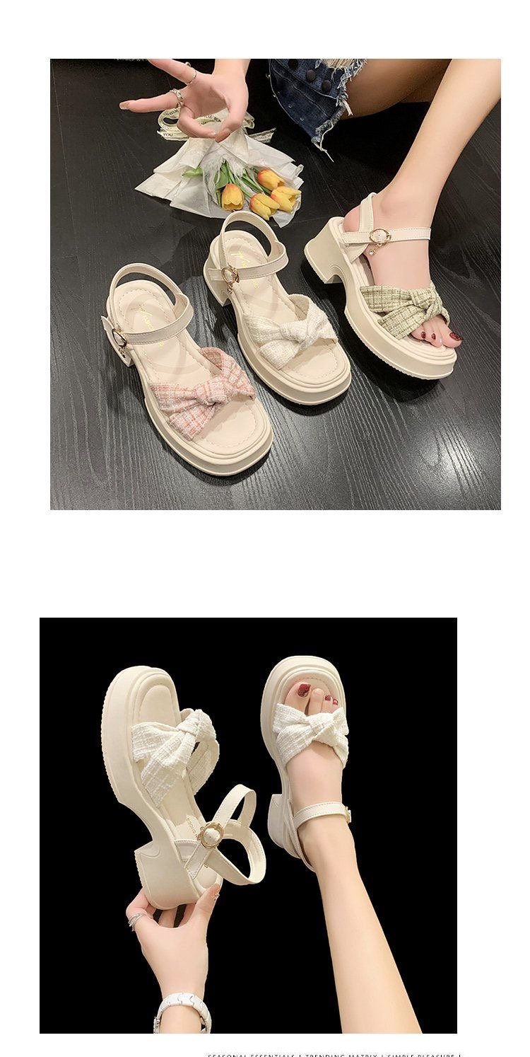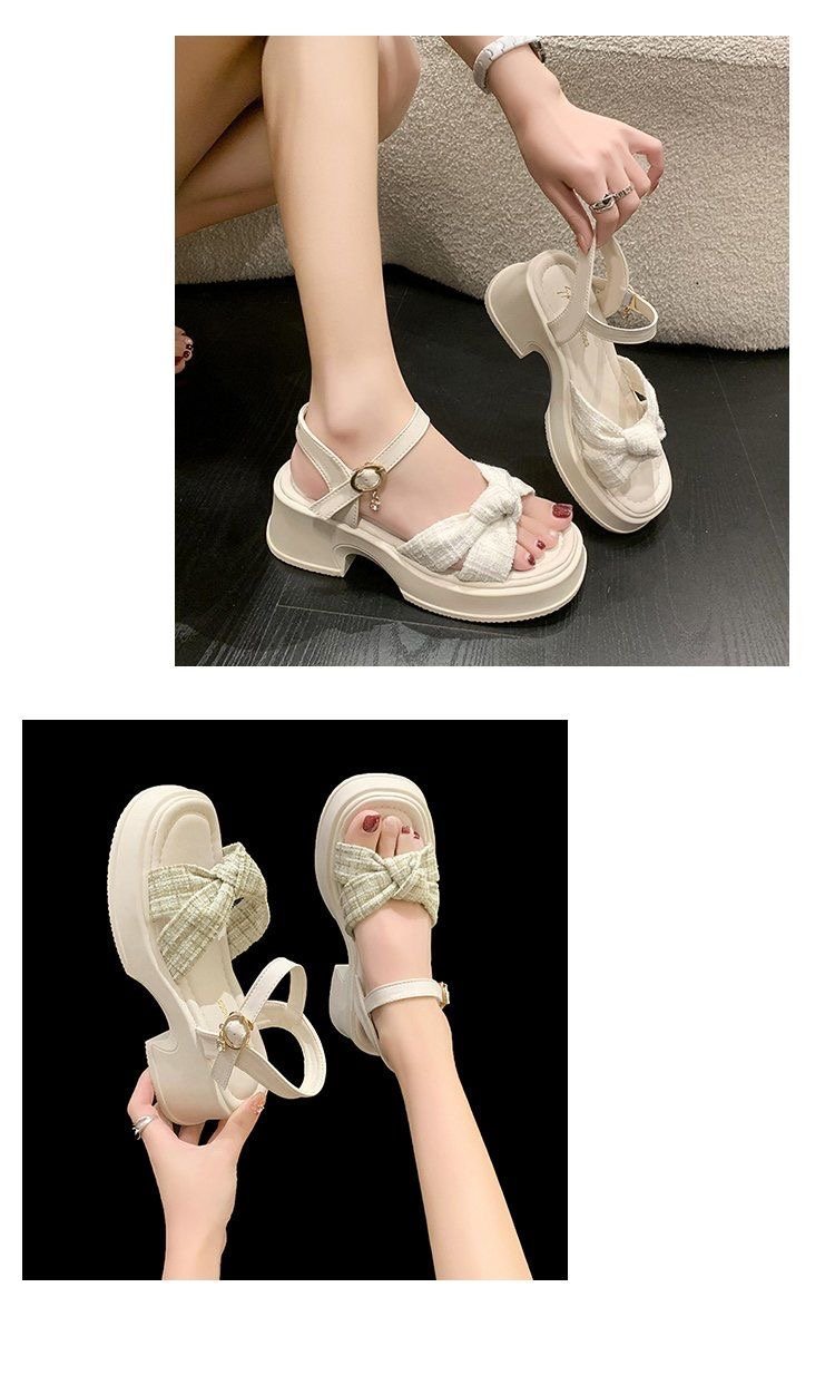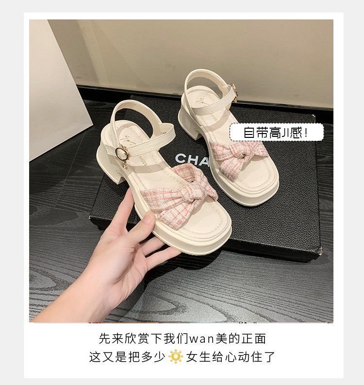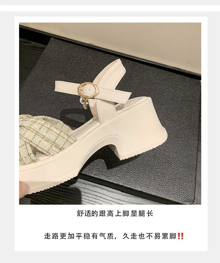 폭발 샌들 요정 스타일 두꺼운 바닥 여성 의상 여름 2024 작은 두꺼운 힐링 유행 비치 슈즈