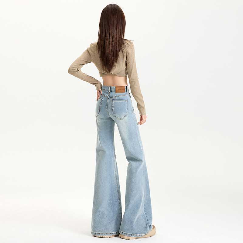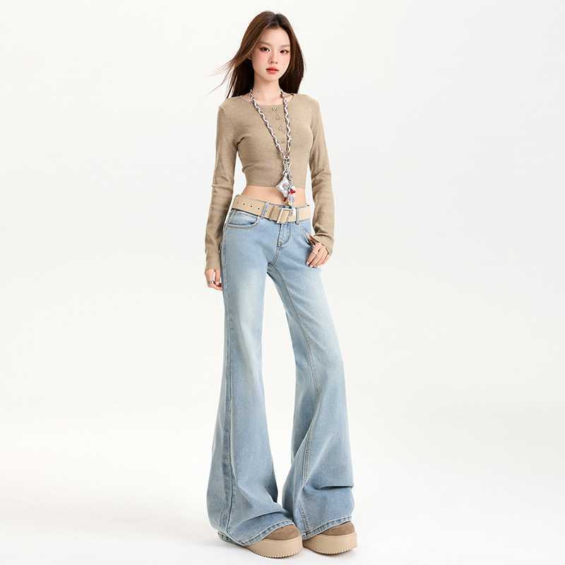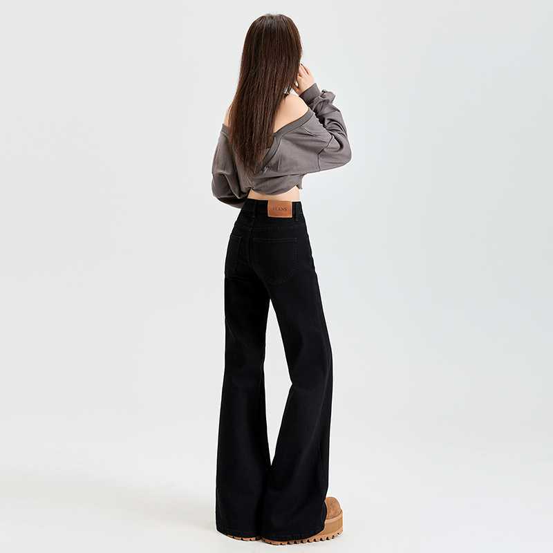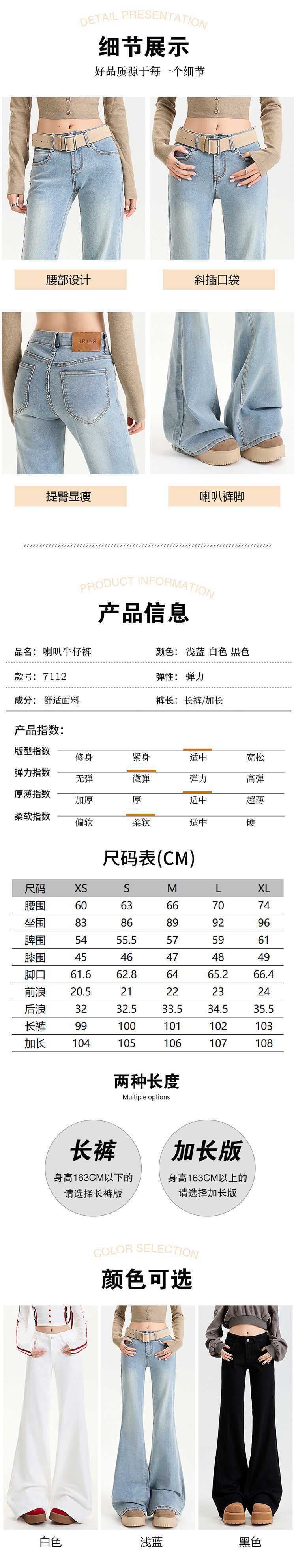 연청 플레어 진 여성용 핫걸 로우 웨이스트 팬츠 슬리밍 롱 팬츠 블랙 화이트 도매