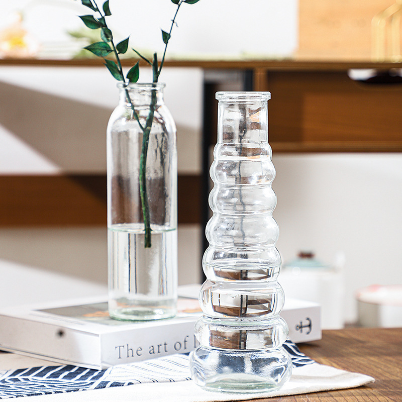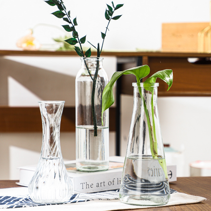꽃병 장식 북유럽 창조적 인 거실 유리 꽃병 투명 간단한 말린 꽃병 수경