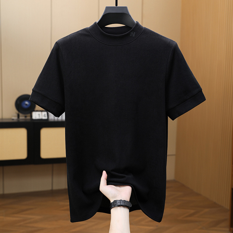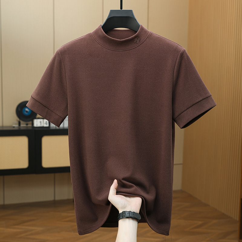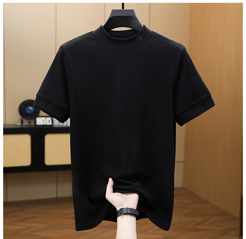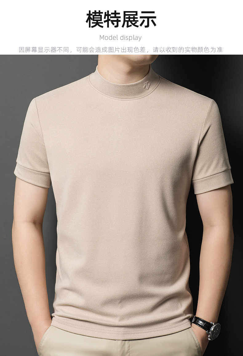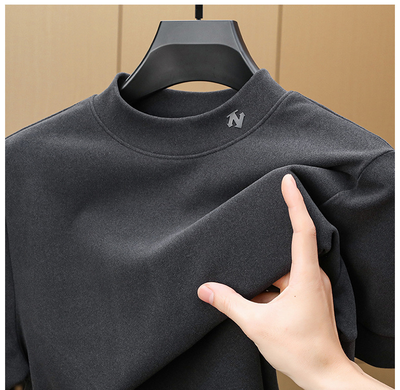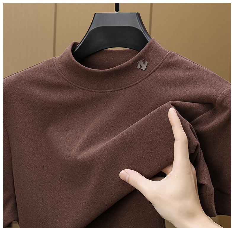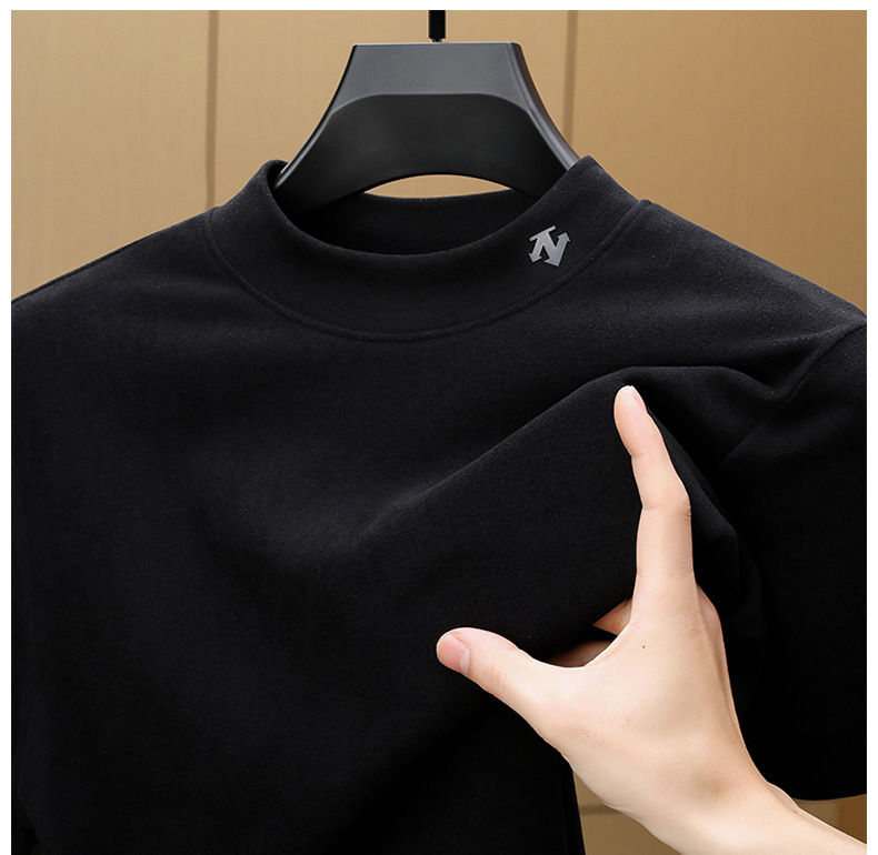 2025 시즌 그래 핀 세미 하이 칼라 따뜻한 반팔베이스 셔츠 남자 양면 벨벳 솔리드 컬러 이너 탑 티셔츠