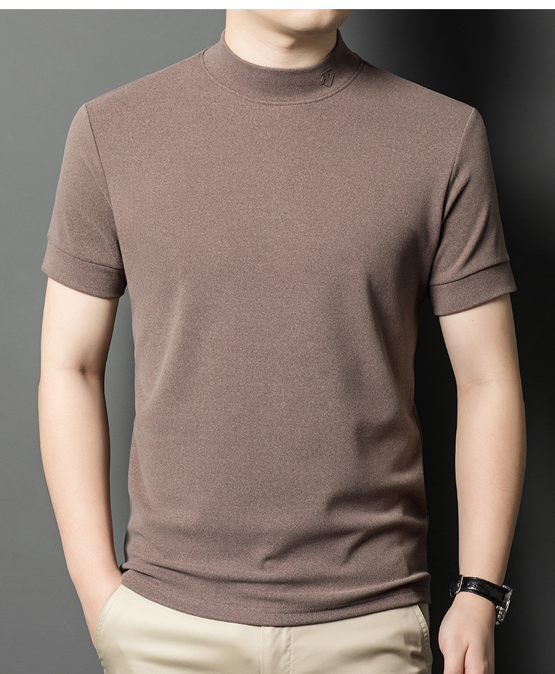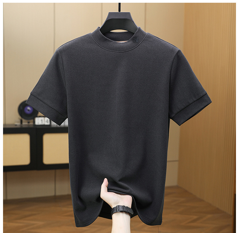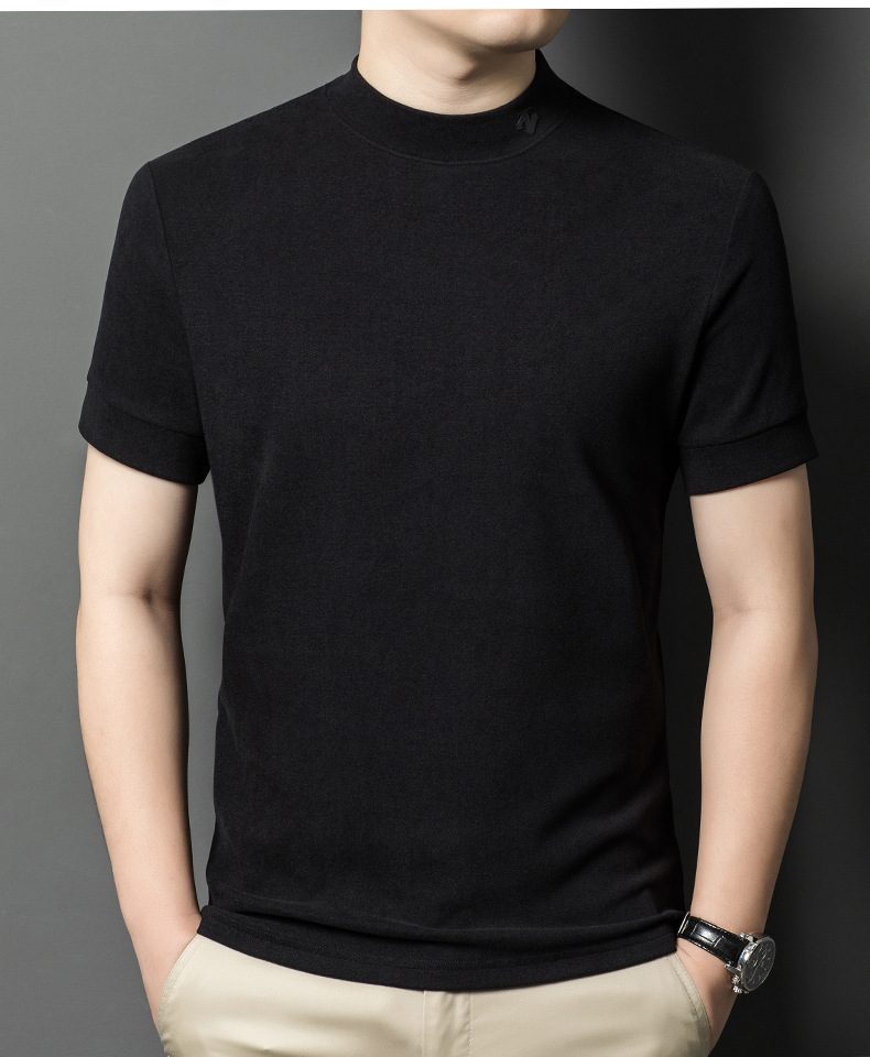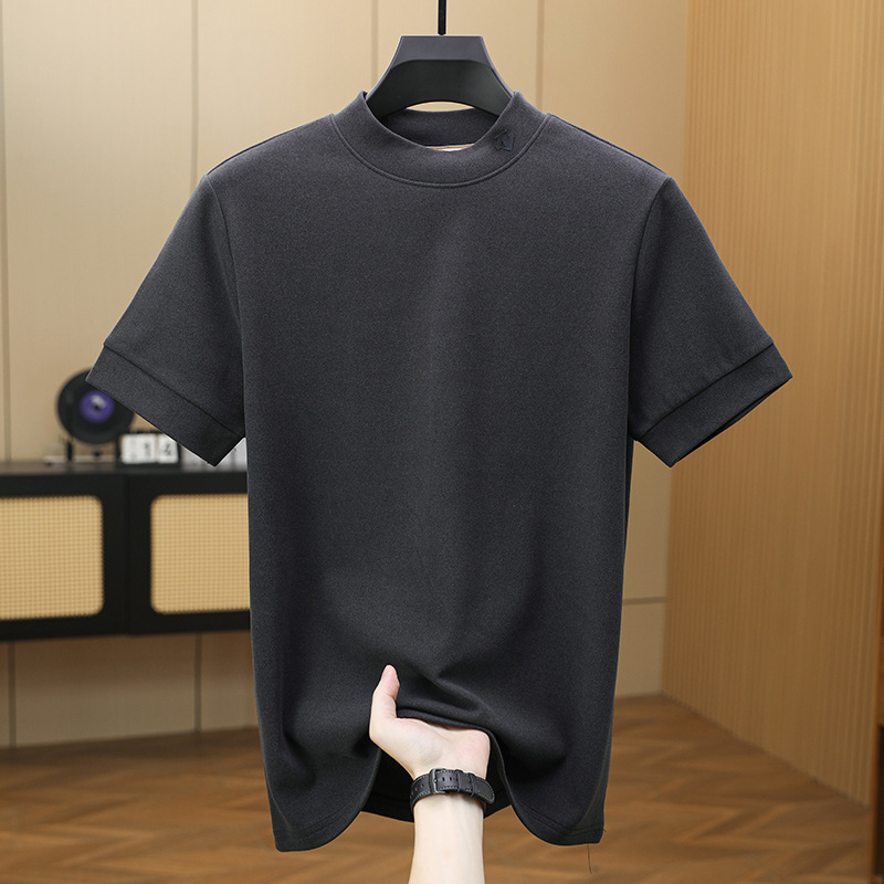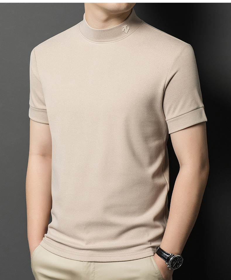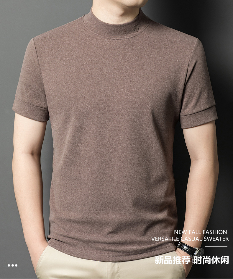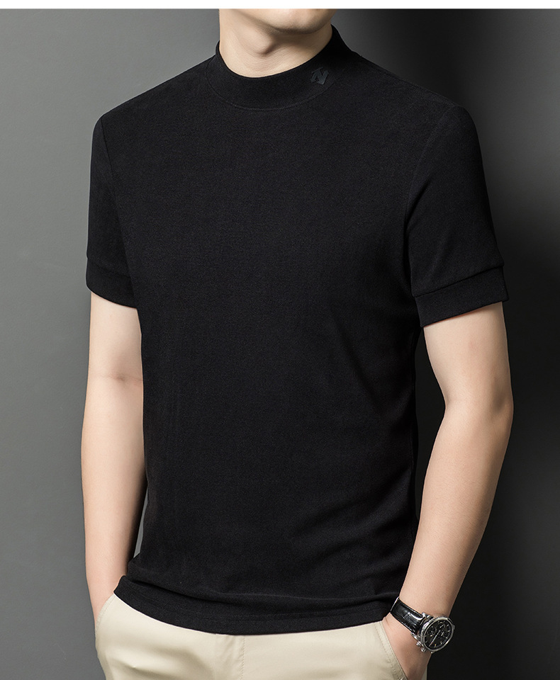 2025 시즌 그래 핀 세미 하이 칼라 따뜻한 반팔베이스 셔츠 남자 양면 벨벳 솔리드 컬러 이너 탑 티셔츠
