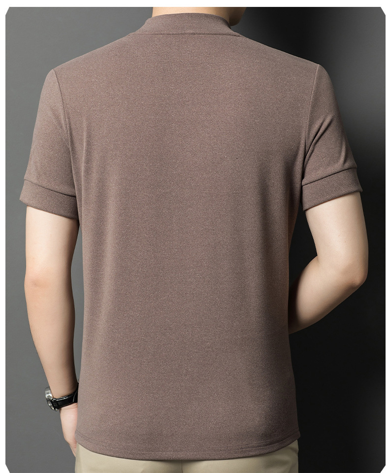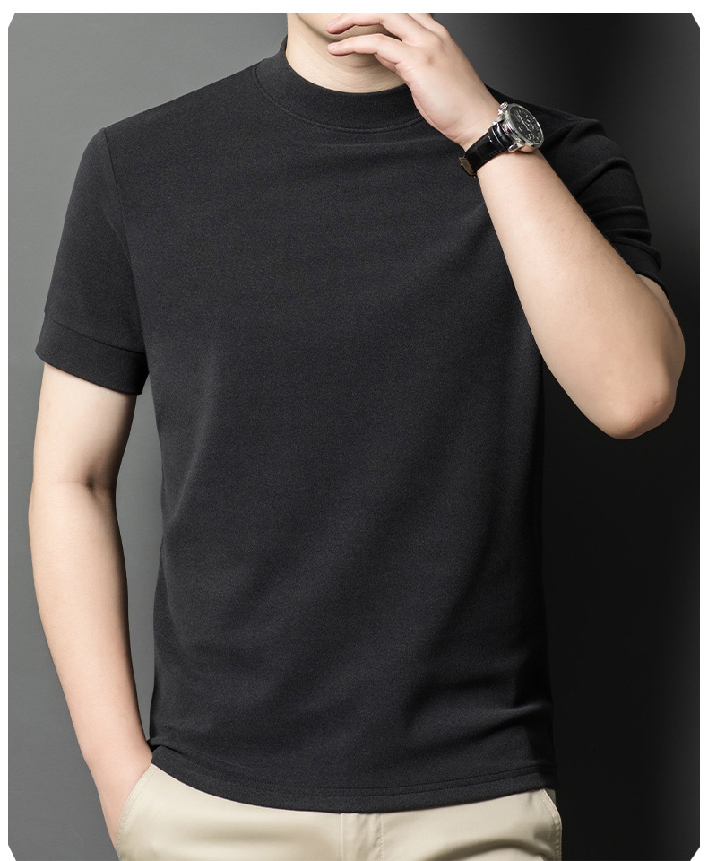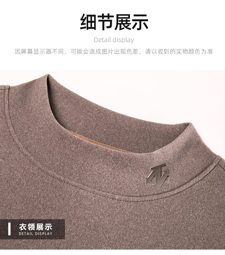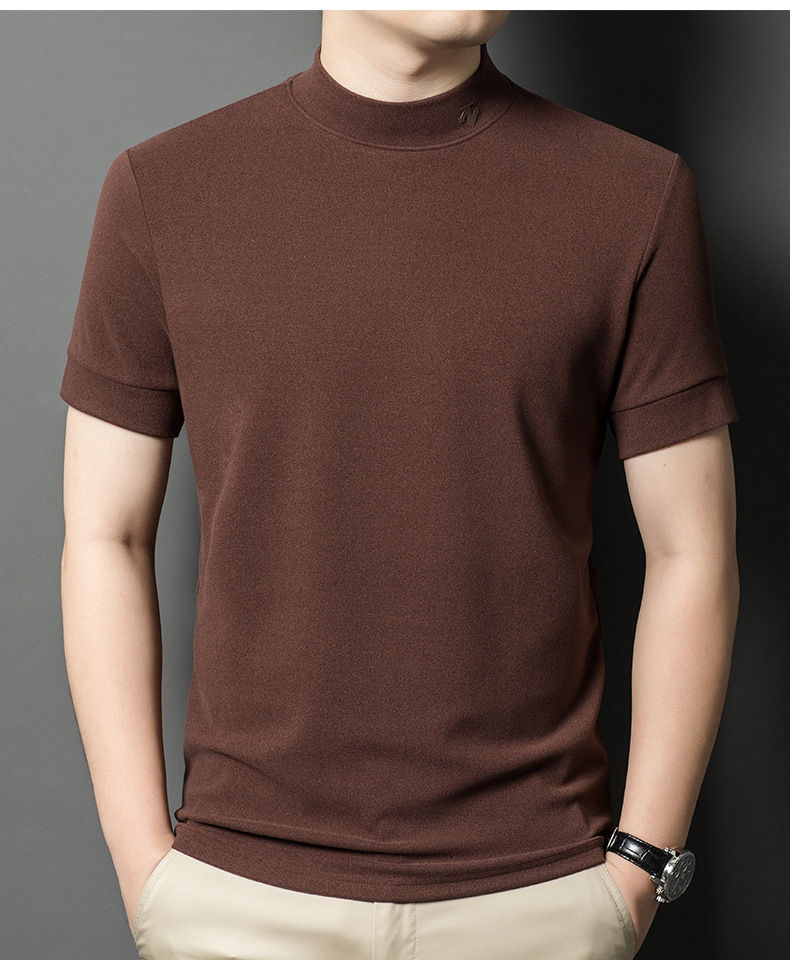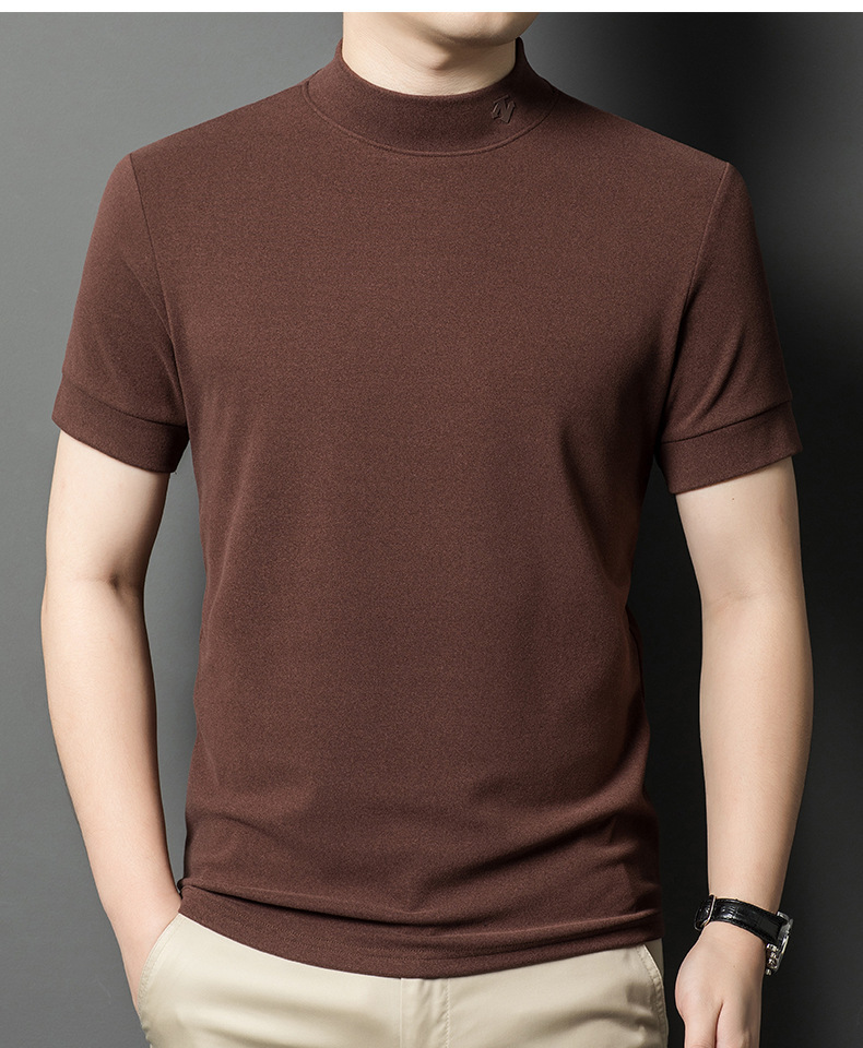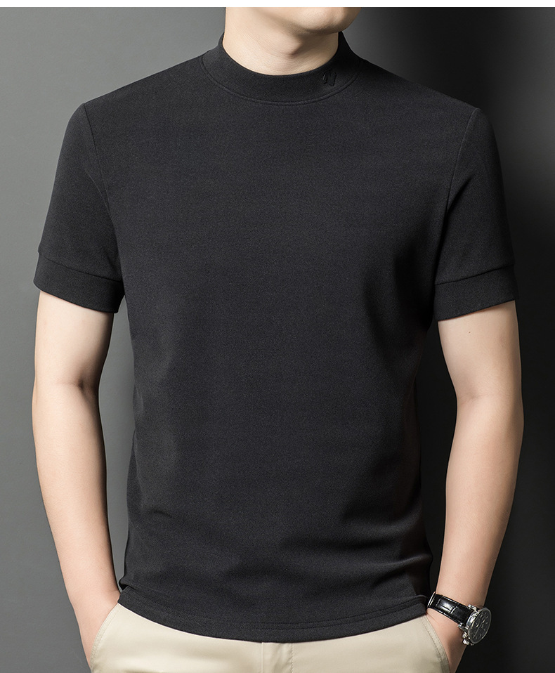 2025 시즌 그래 핀 세미 하이 칼라 따뜻한 반팔베이스 셔츠 남자 양면 벨벳 솔리드 컬러 이너 탑 티셔츠