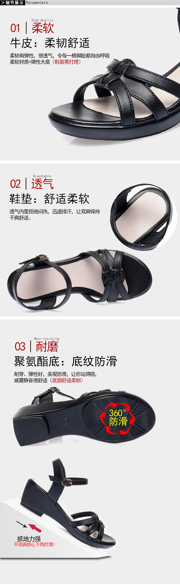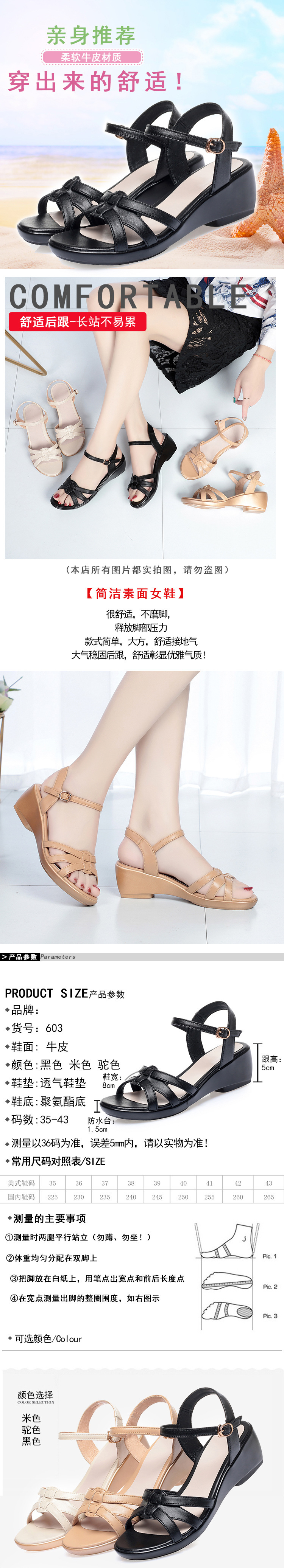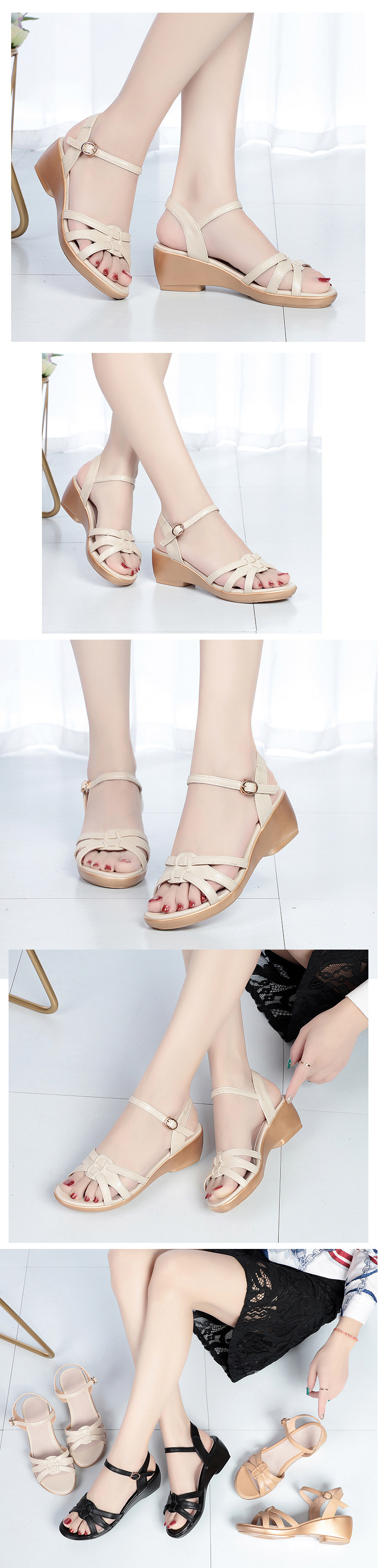 2021夏季凉鞋女坡跟舒适大码中年女士妈妈鞋透气防滑夏季鞋不