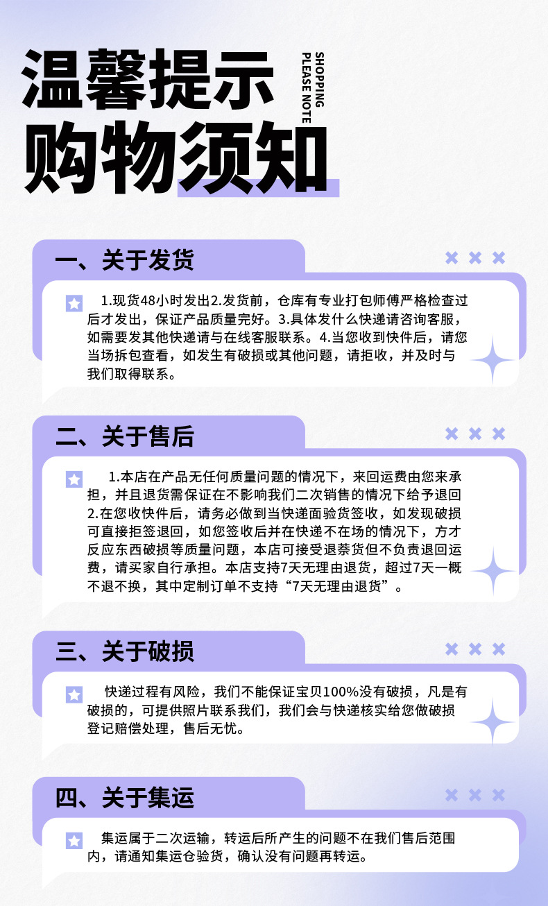 운송 비용 안내 플러스올마이너스는 배송대행시스템을 사용 중입니다. 최초 상품 구매 시 결제하는 배송비는 ‘중국내배송비(판매자->배송대행지)’이며 배송대행지에 상품이 도착했을 때 무게를 측정해 해외배송, 국내배송 및 통관비가 확정되면 고객분들께 추가로 해당 비용 결제를 요청드립니다. 무게에 따른 배송비용은 페이지를 참조해 주세요.
