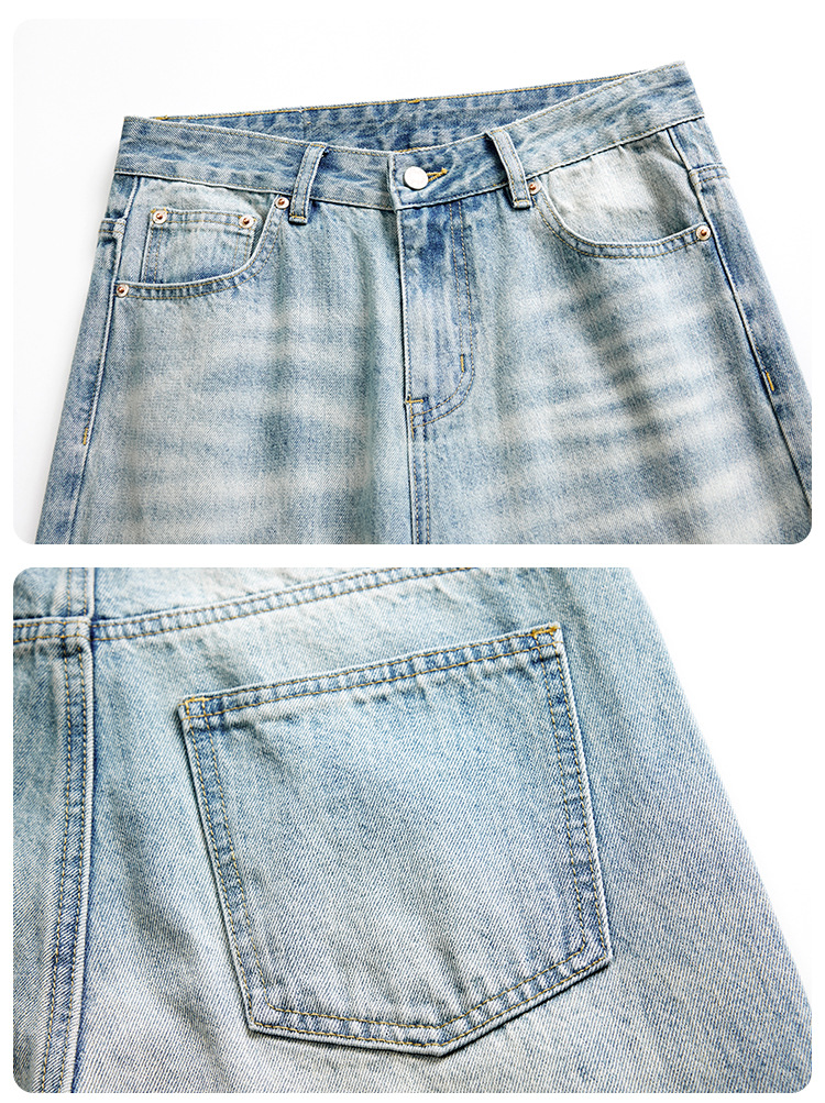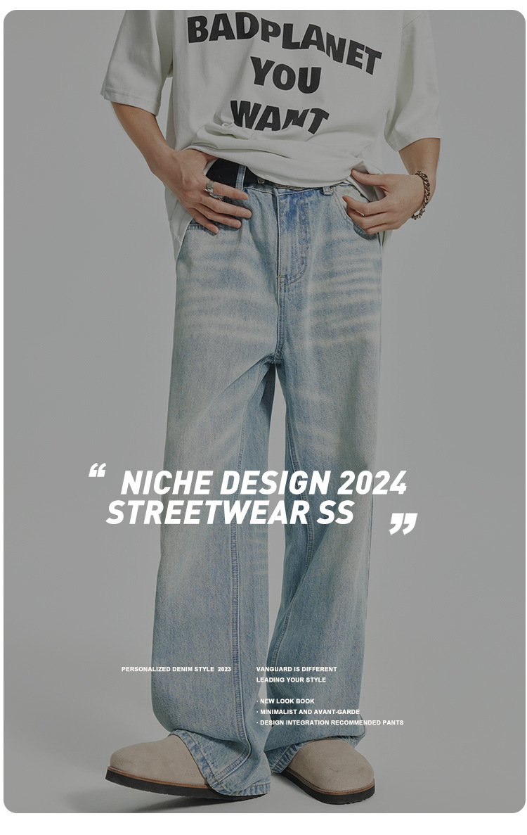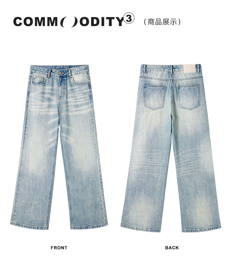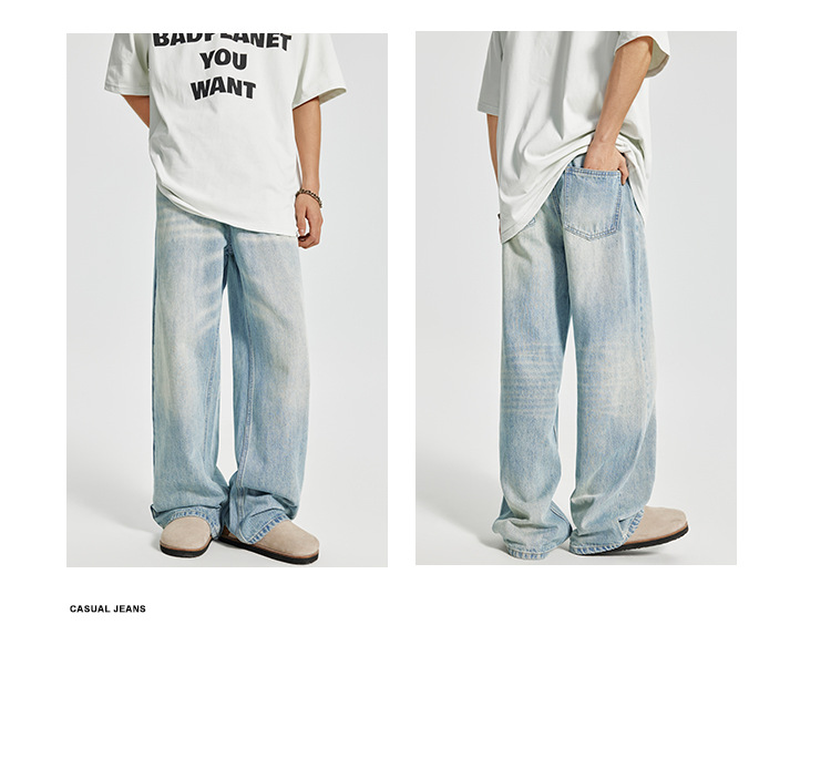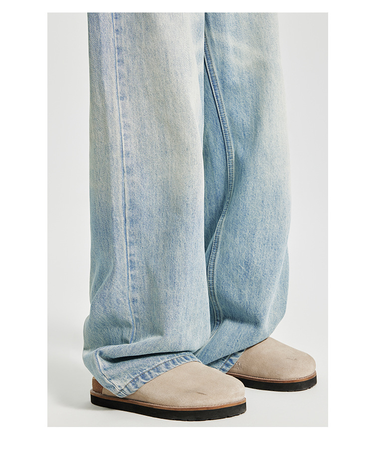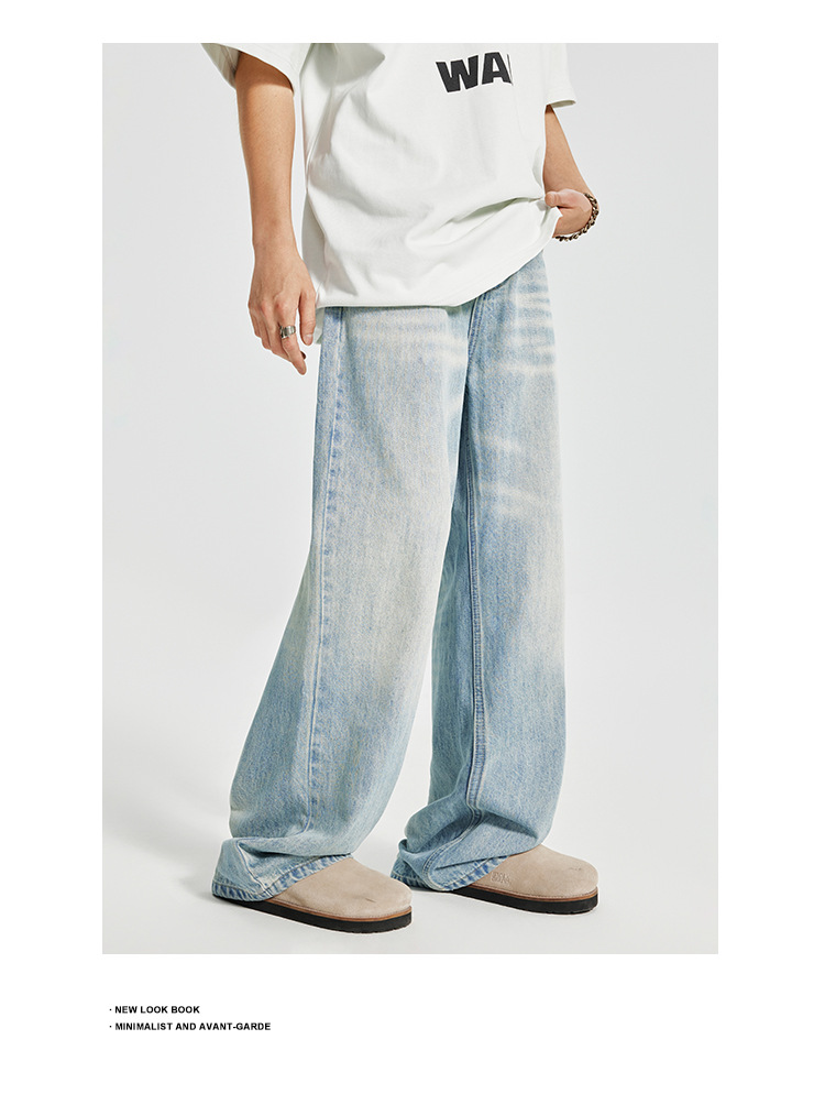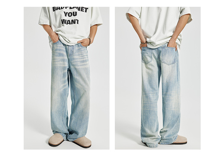 OTTB 레트로 그라데이션 청바지 남성용 아메리칸 스타일 청소년 배색 워싱 블루 루즈핏 스트레이트 데님 남성용 롱 팬츠