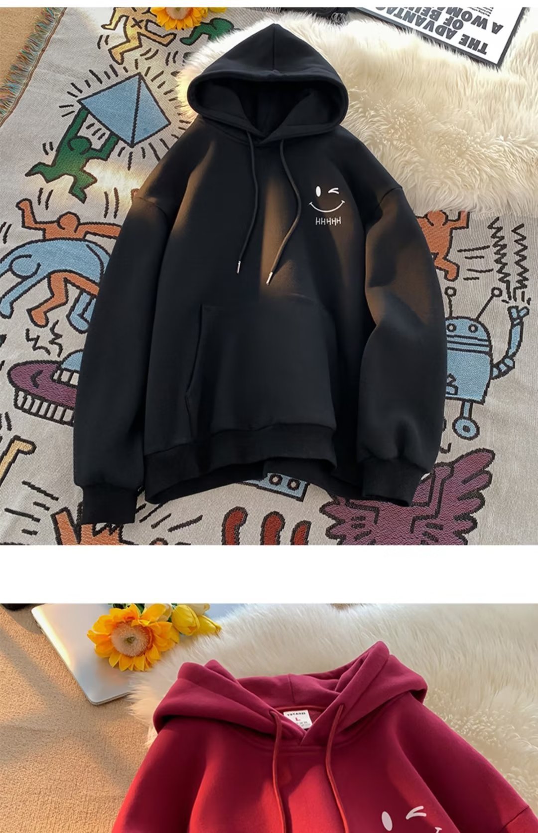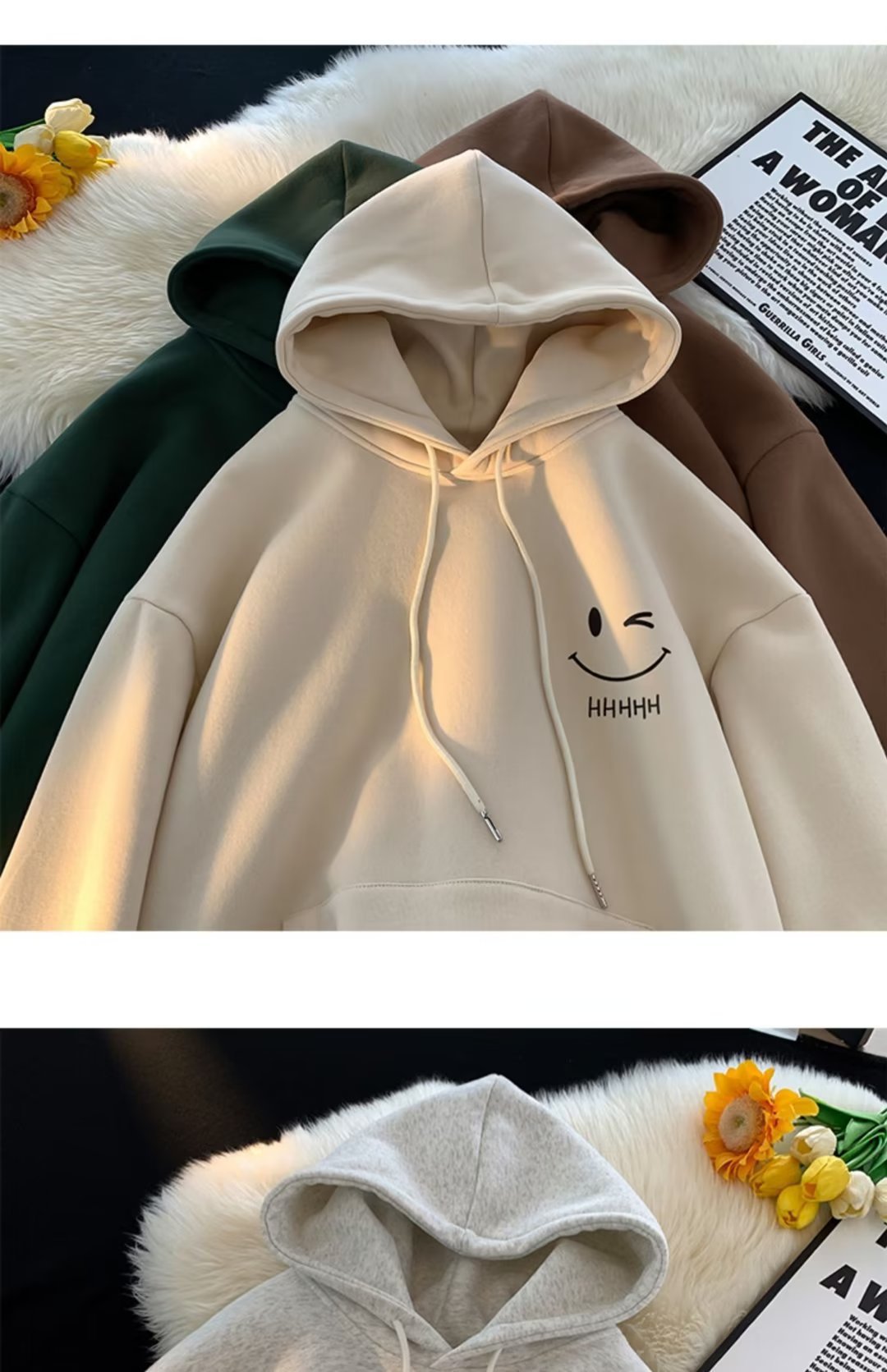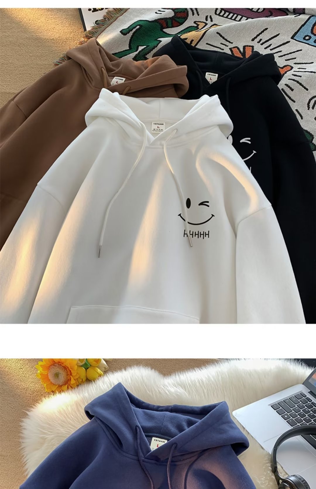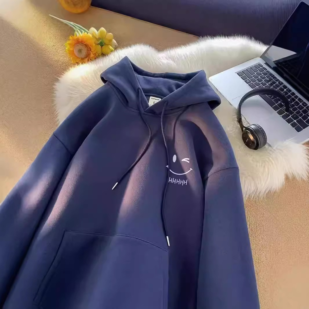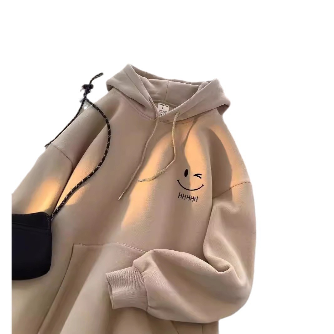 2025 남성과 여성을위한 얇은 웃는 얼굴 후드 티셔츠 봄, 가을 새로운 유행 브랜드 느슨한 탑 소년 후드 자켓