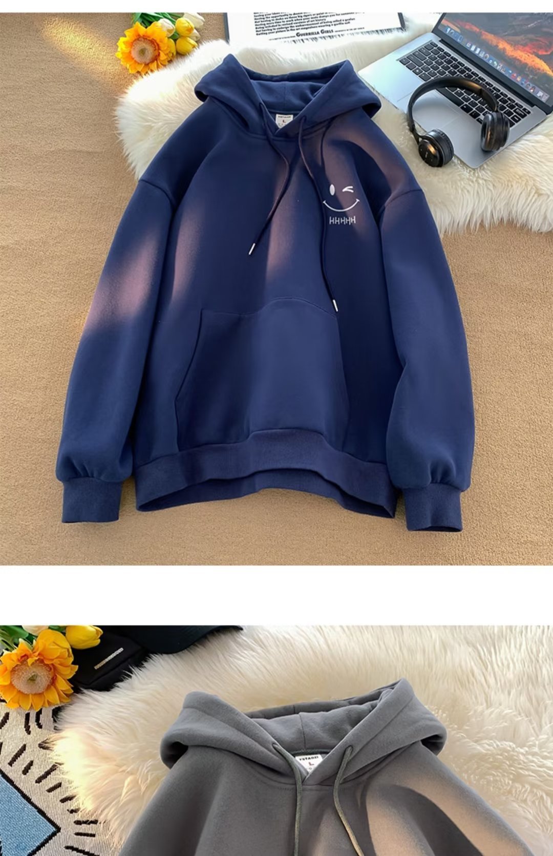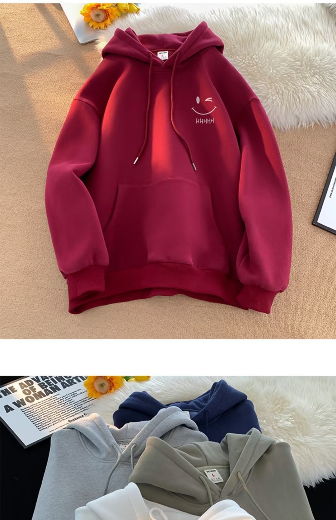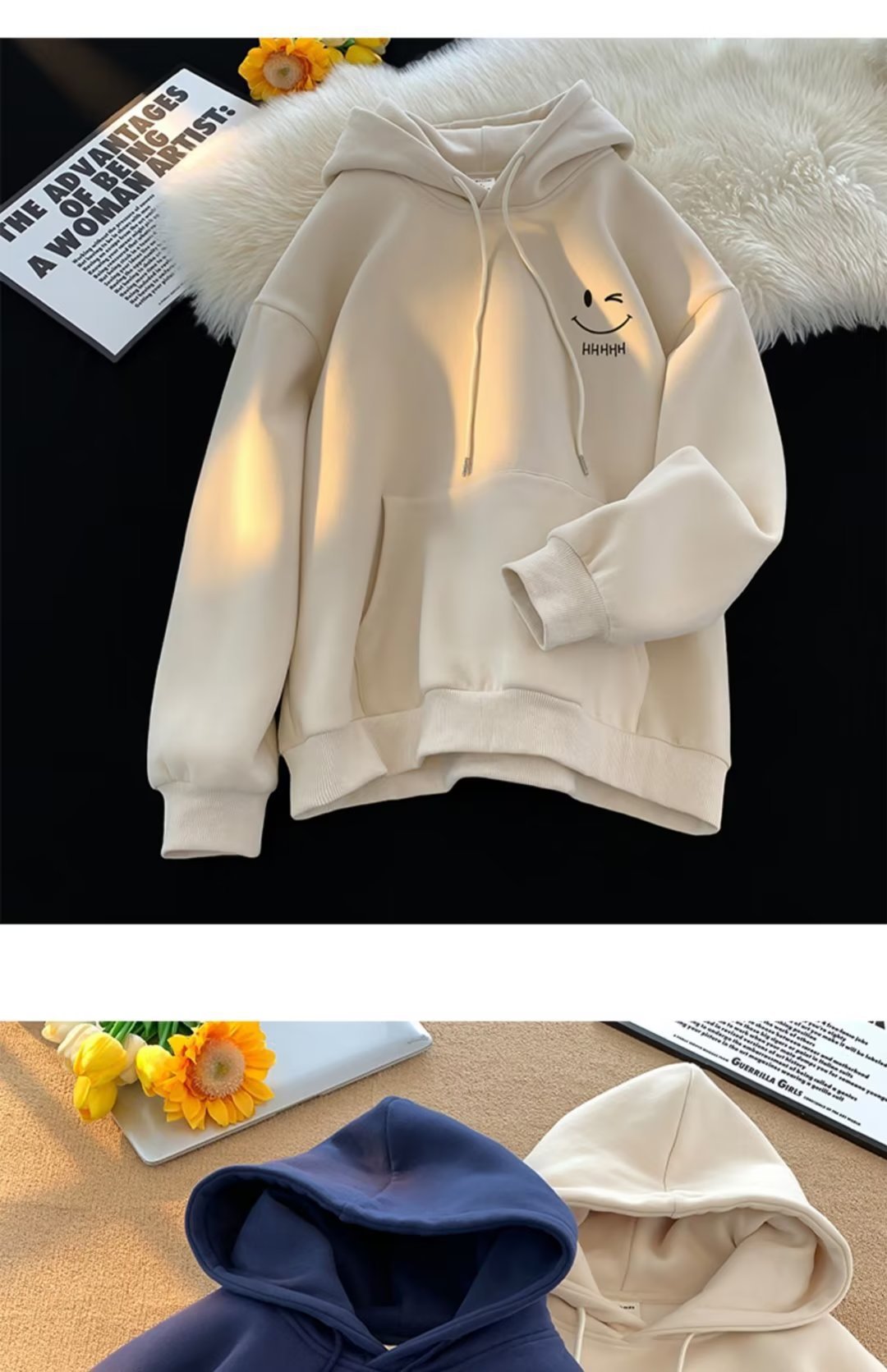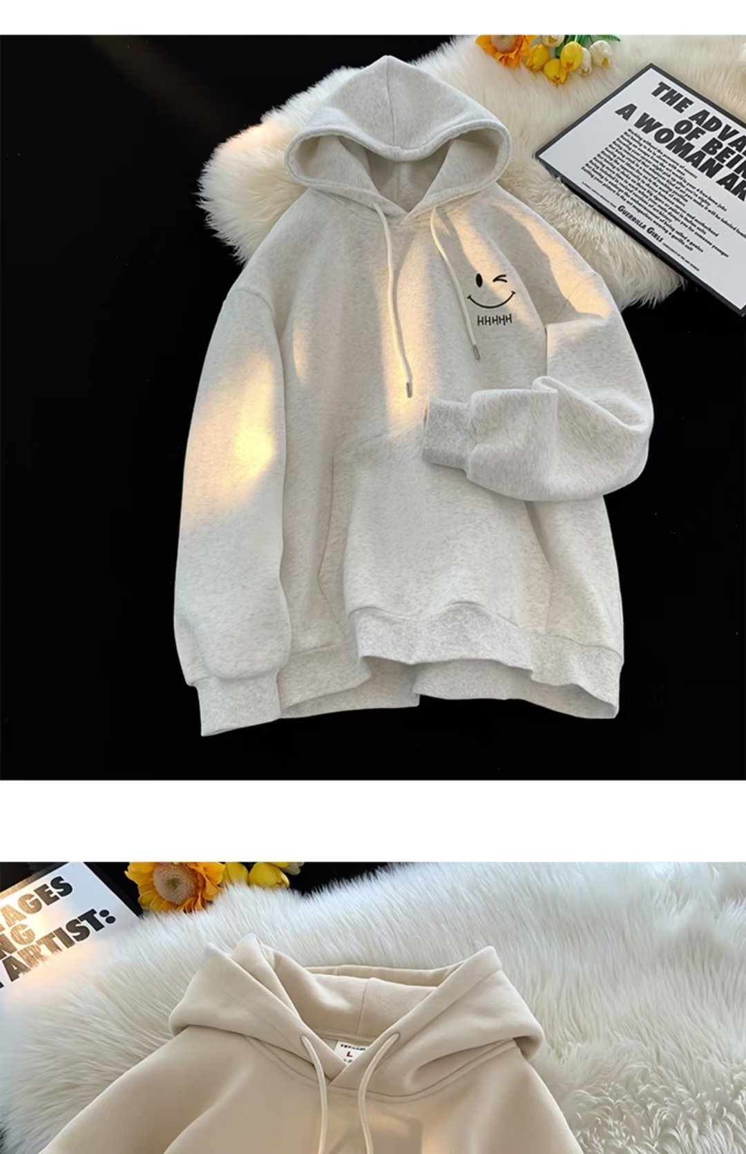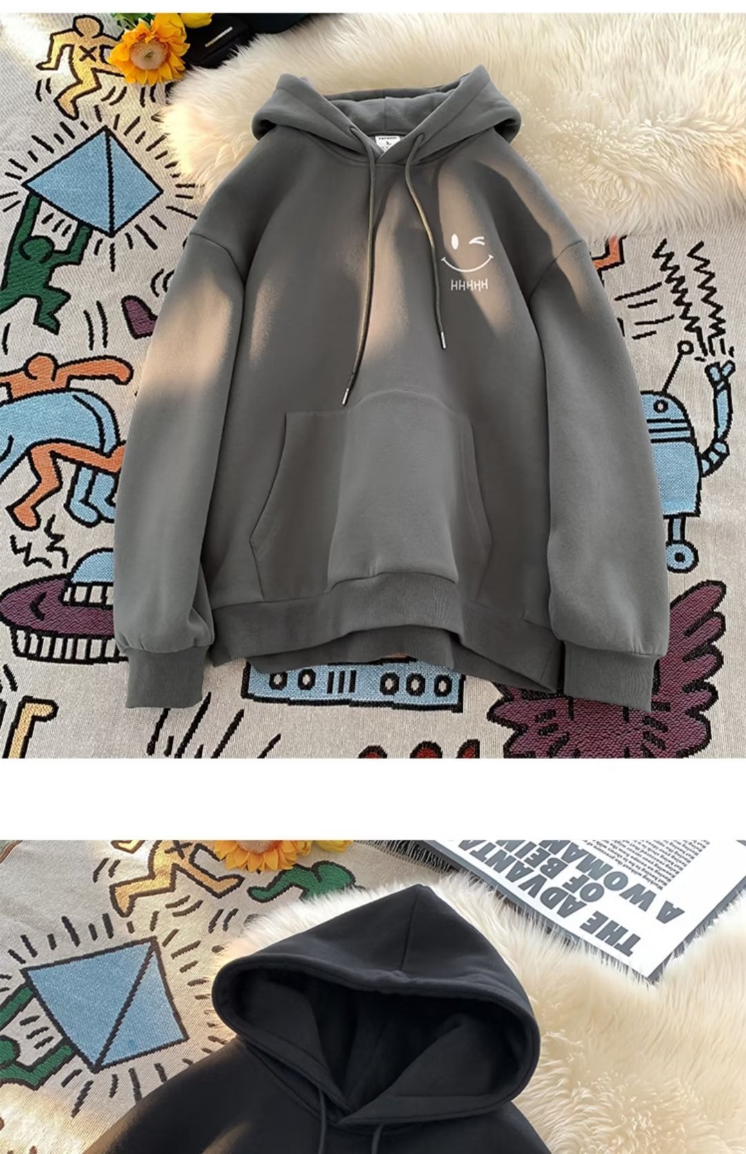 2025 남성과 여성을위한 얇은 웃는 얼굴 후드 티셔츠 봄, 가을 새로운 유행 브랜드 느슨한 탑 소년 후드 자켓
