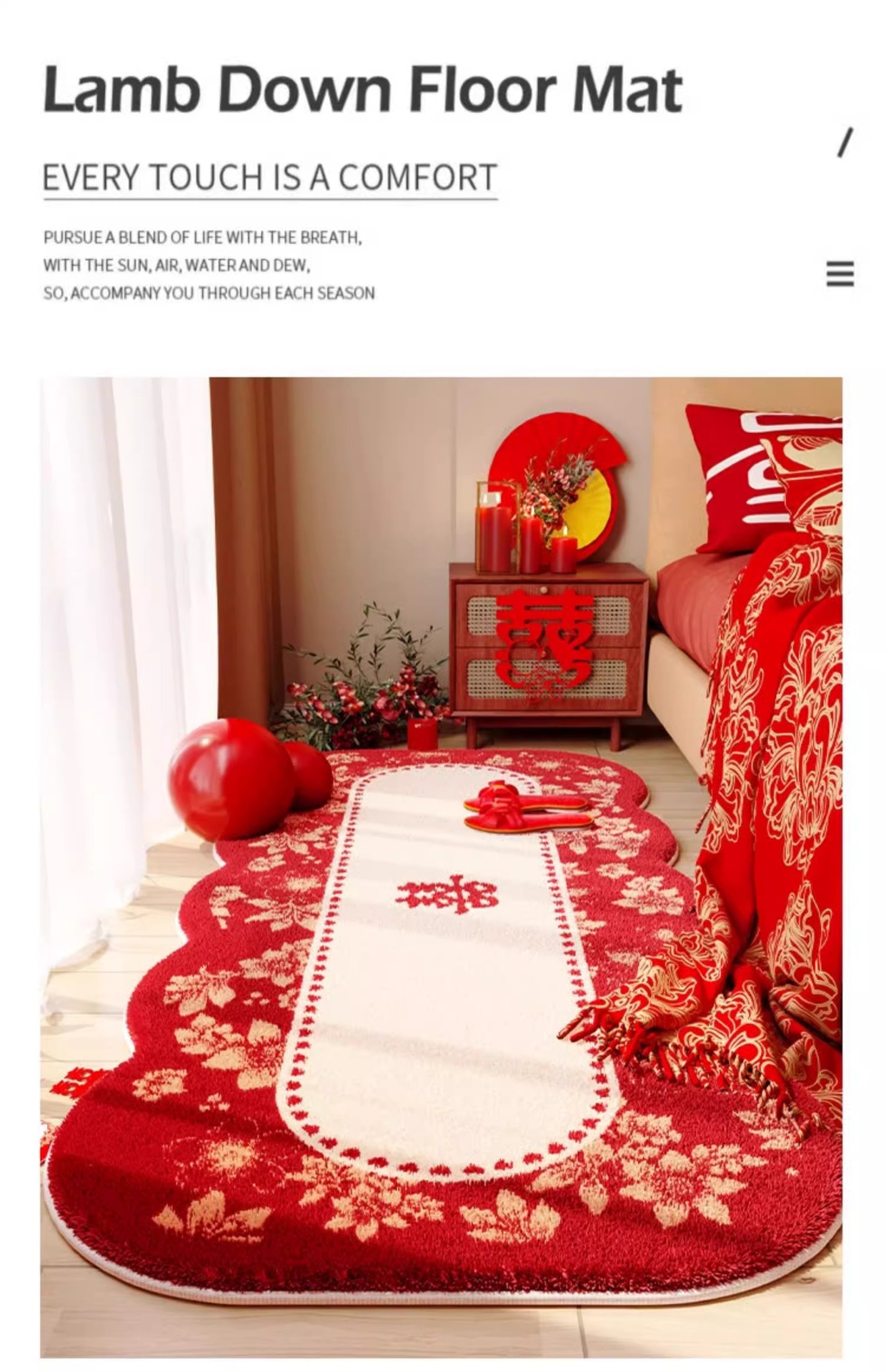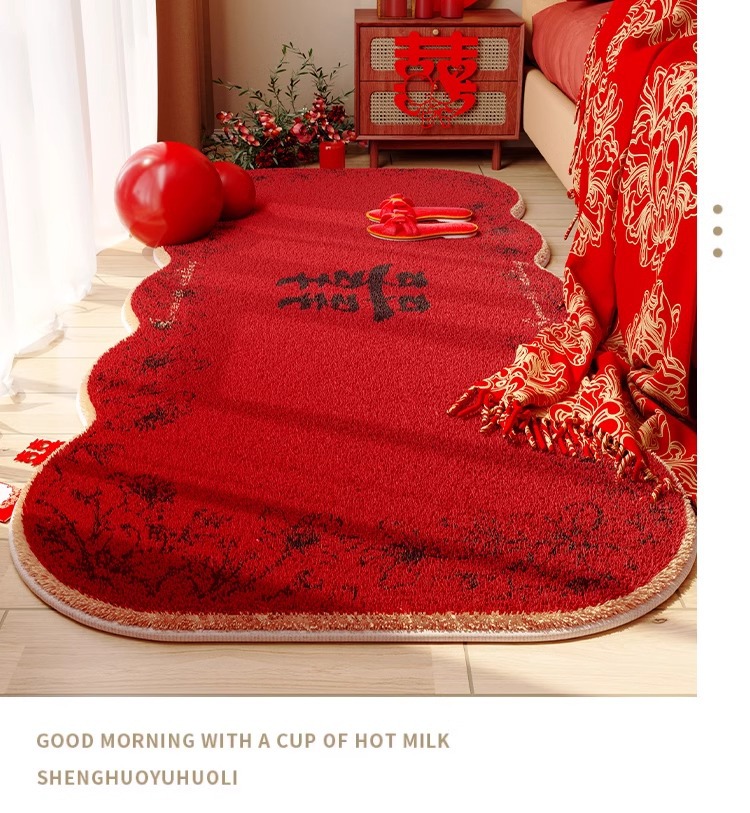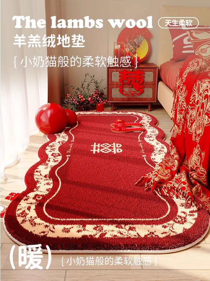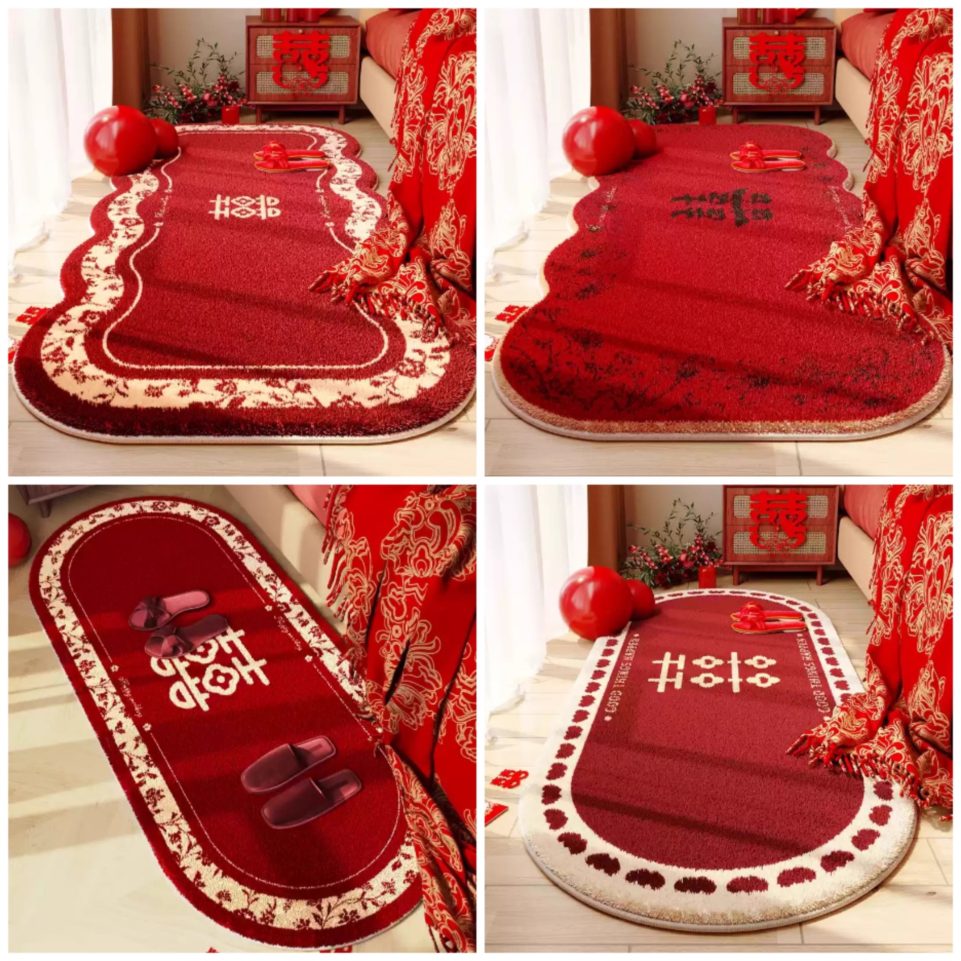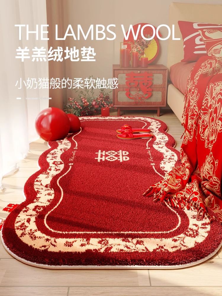 결혼식 침대 옆 카펫 빨간색 바닥 매트 겨울 웨딩룸 장식 플러시 두꺼운 발매트 행복한 행사 용품 두꺼운 보온