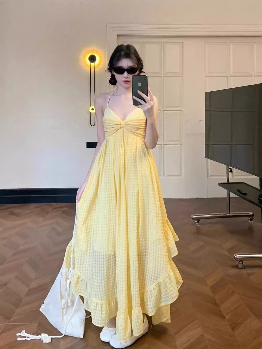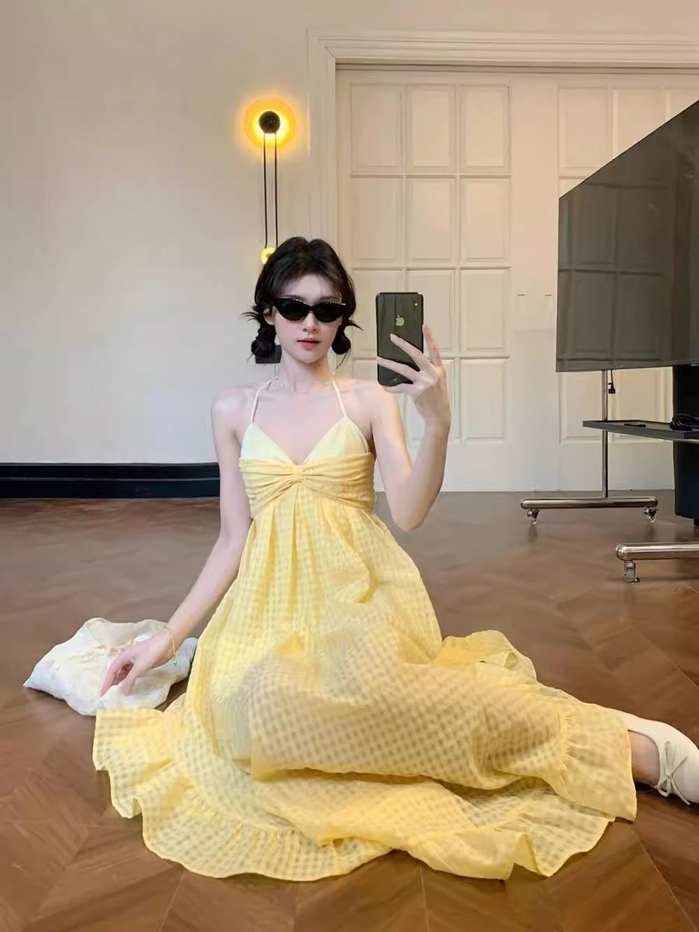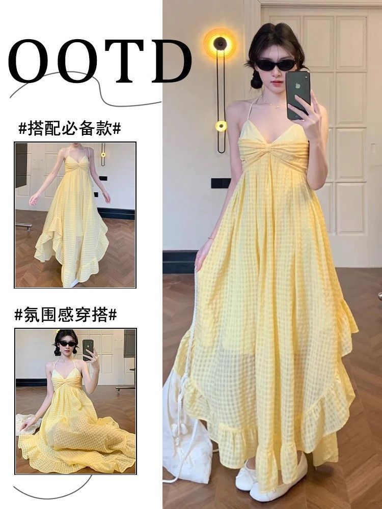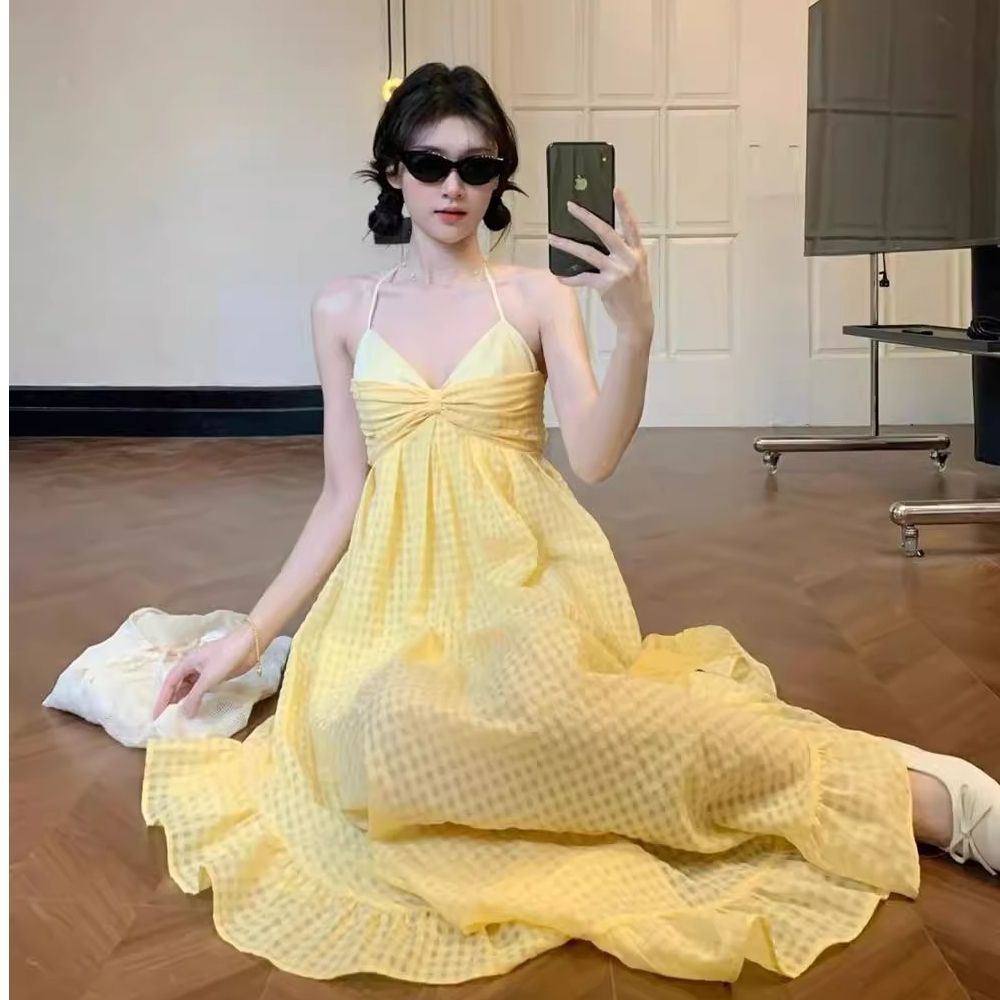 홀리데이 스타일 우아한 A 라인 스커트 부드러운 입체 꽃 원피스 해변 휴일 요정 민소매 목 원피스