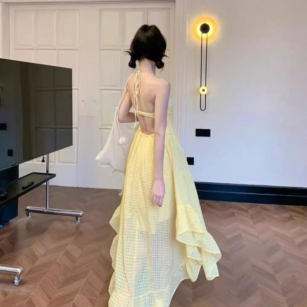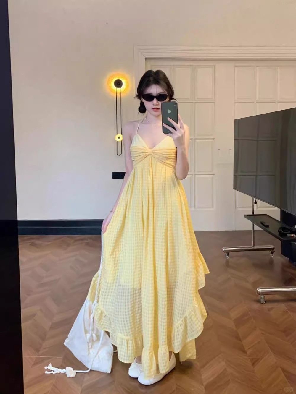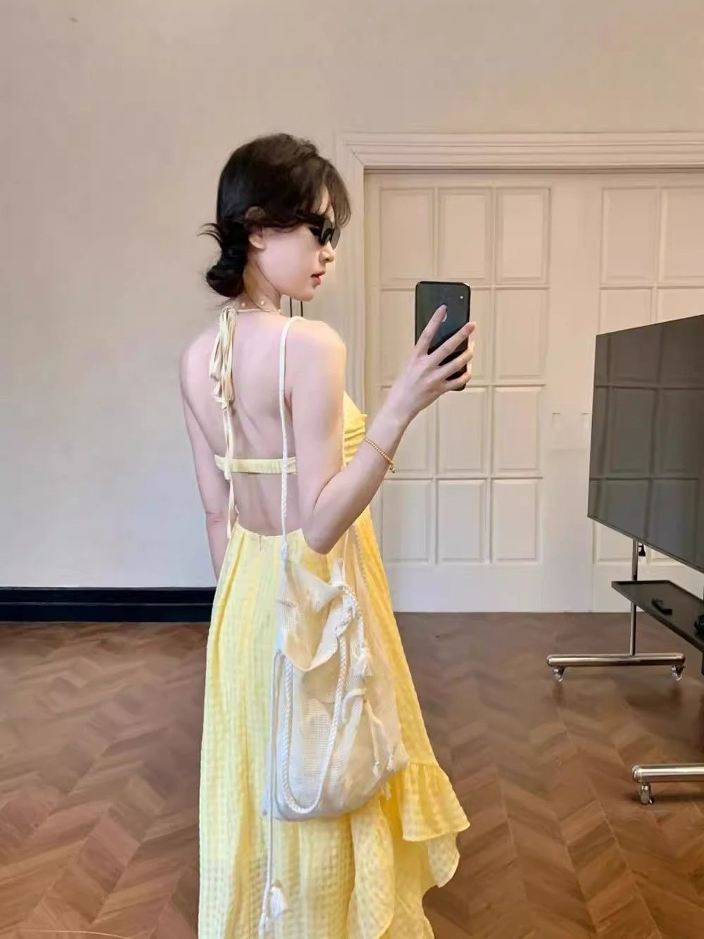 홀리데이 스타일 우아한 A 라인 스커트 부드러운 입체 꽃 원피스 해변 휴일 요정 민소매 목 원피스