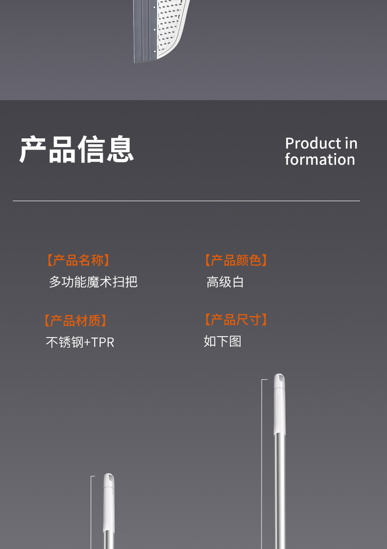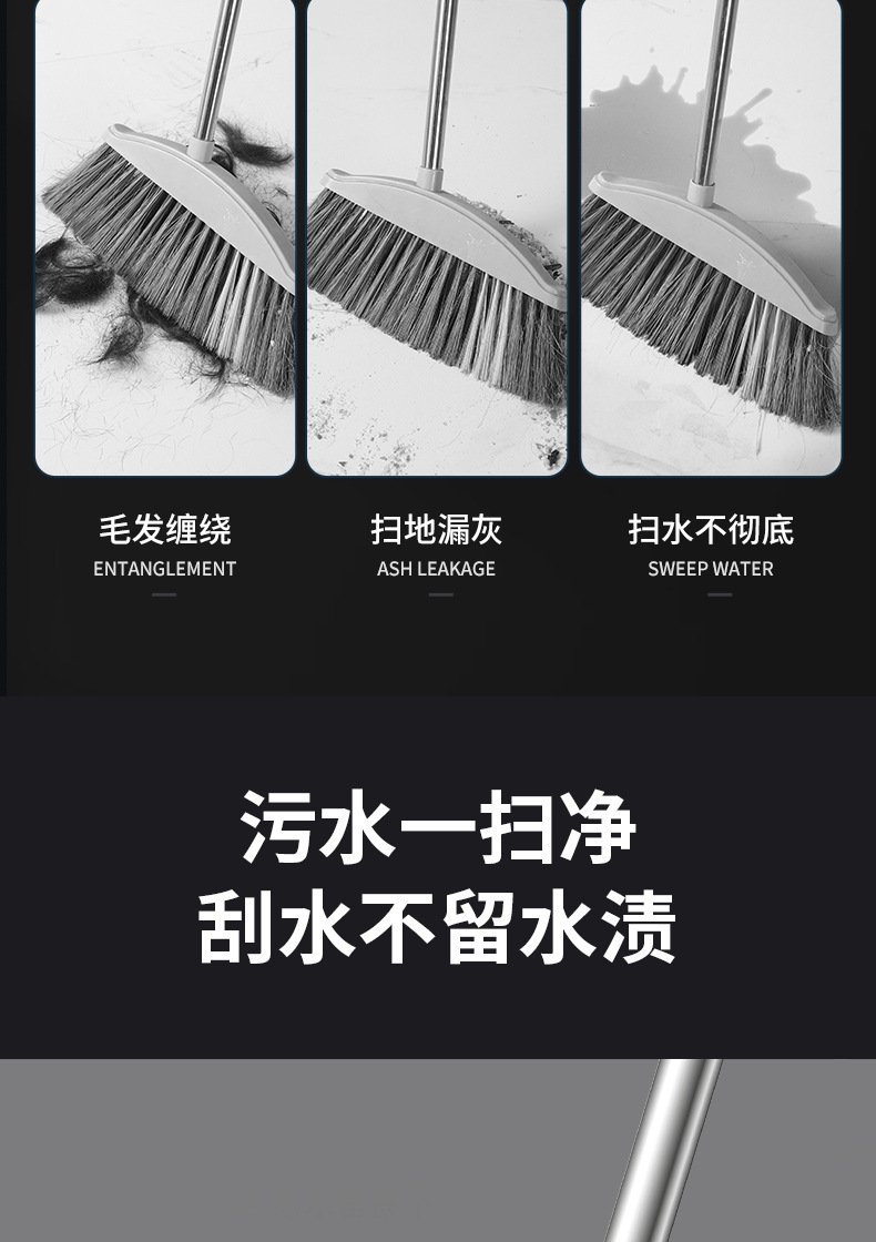 【사각 구멍 실리콘 빗자루】 3단 손잡이 - 전체 길이 139cm