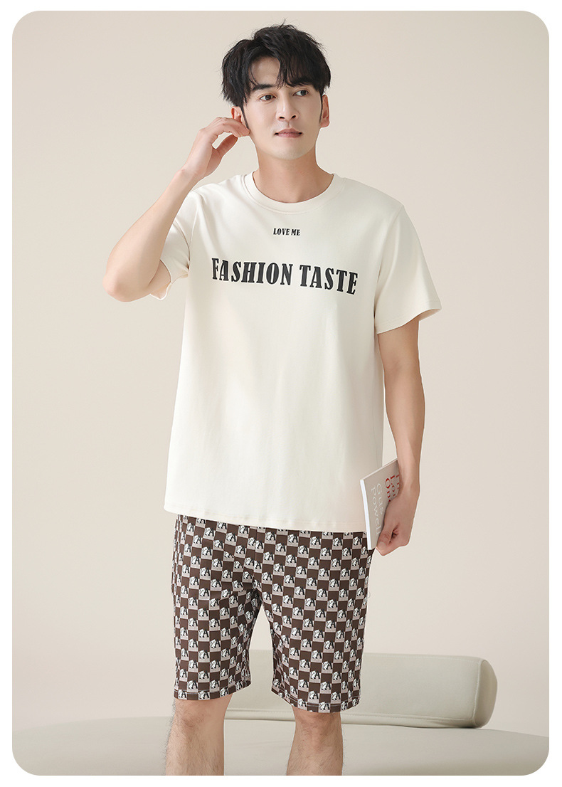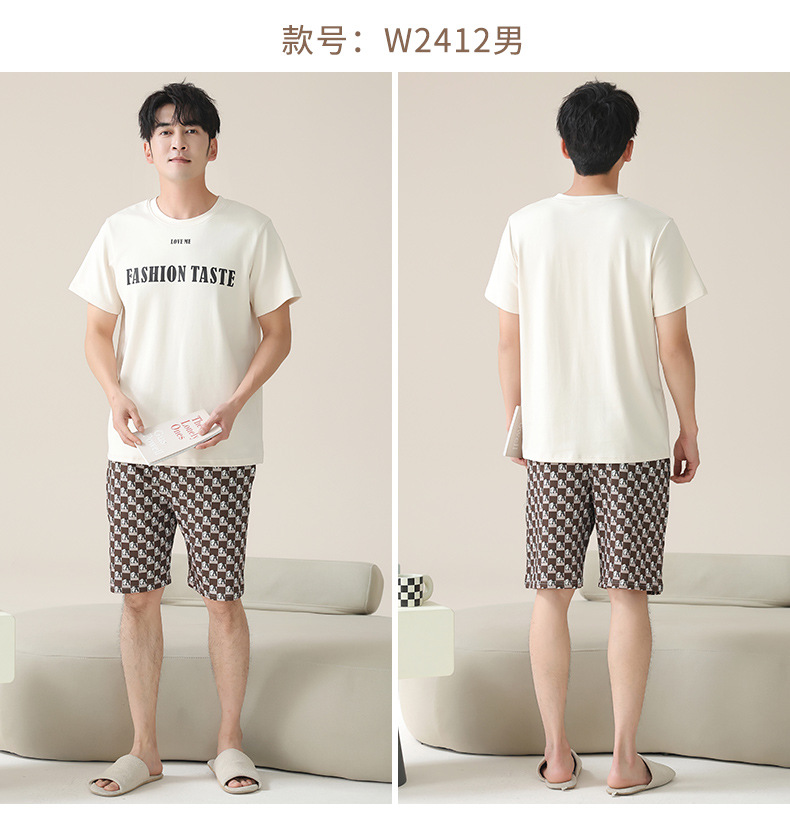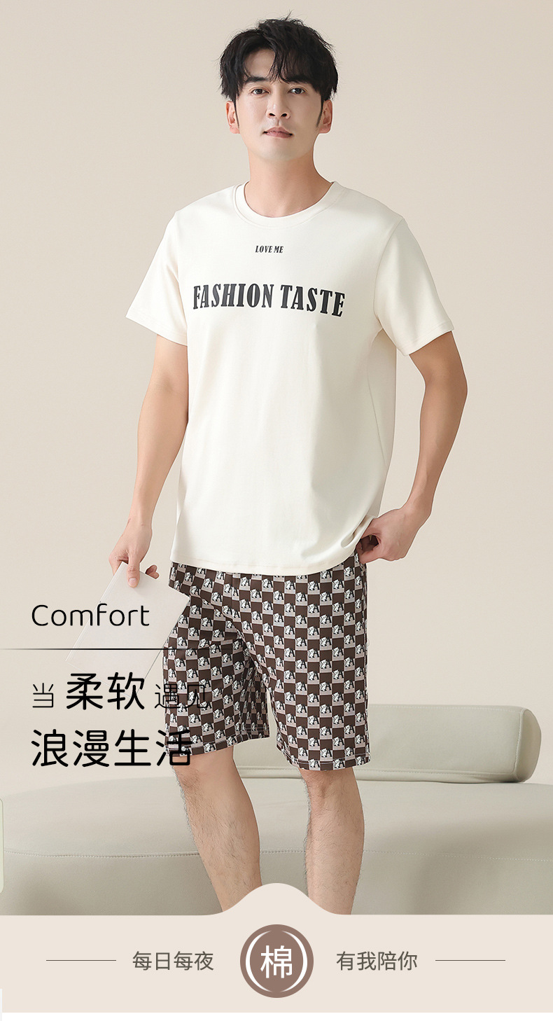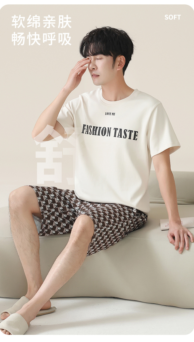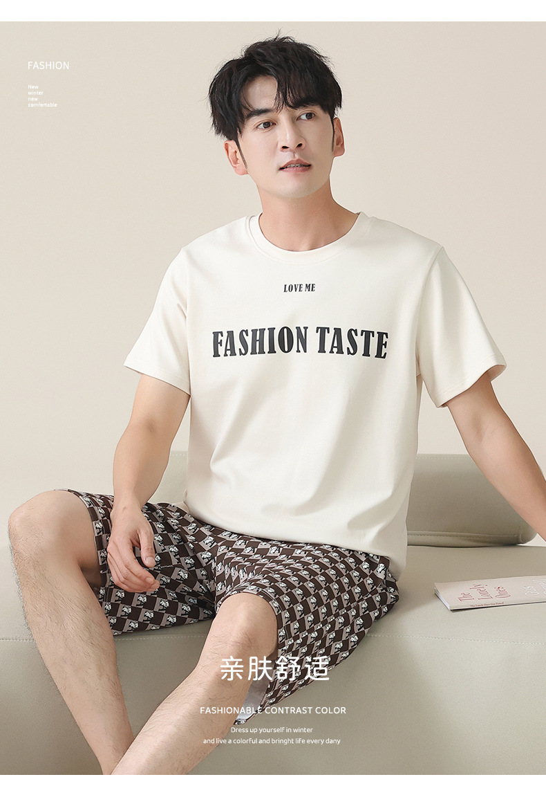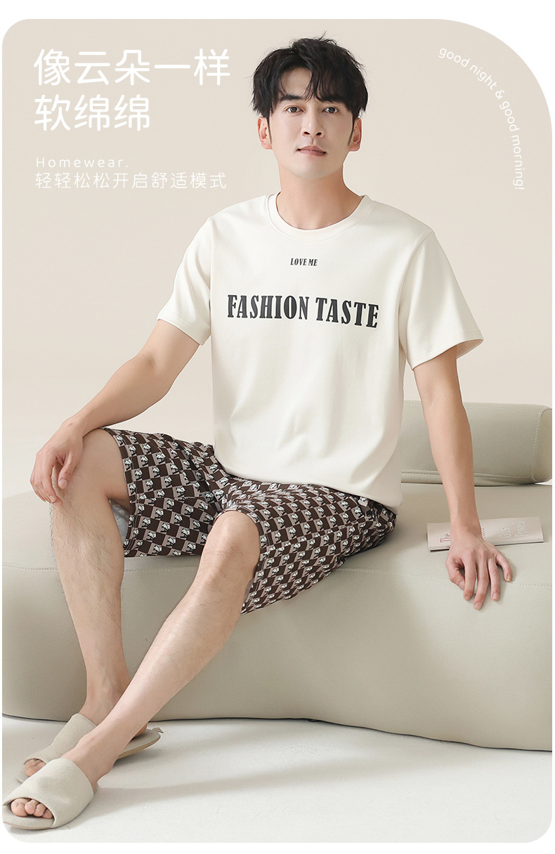 2025 새로운 반팔 남성 잠옷 여름 얇은 코튼 반바지를 입고 캐주얼 느슨한 홈 세트