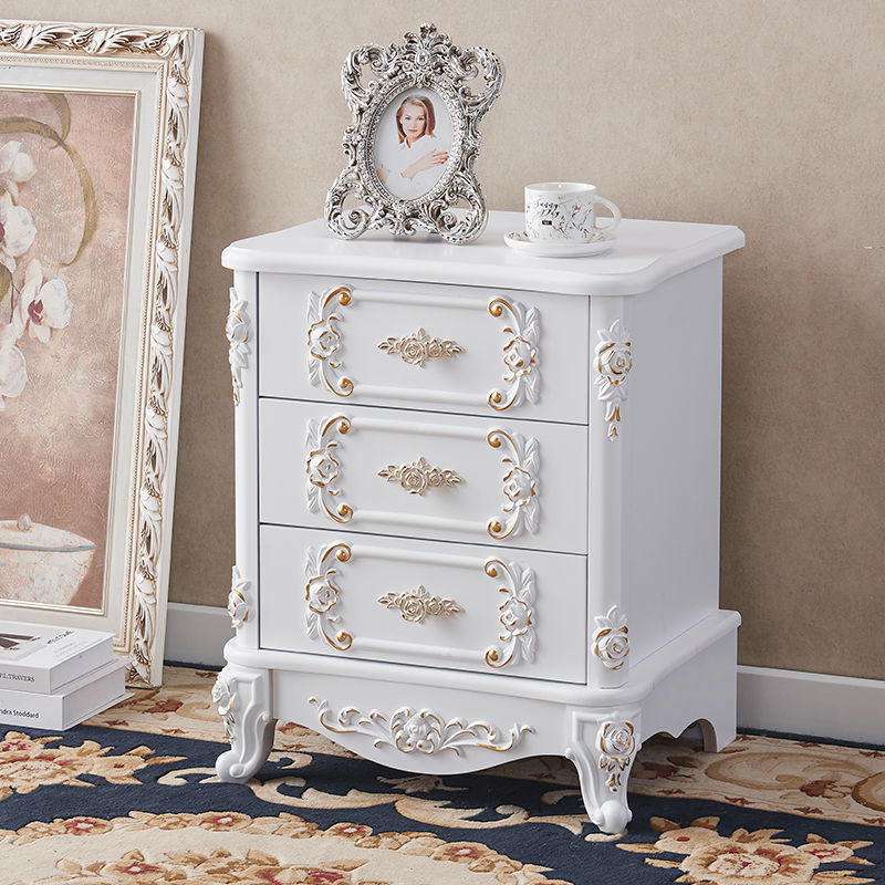Z % 유럽 스타일의 침대 옆 테이블 침실 간단한 꽃 잠금 페인트 골드 추적 실버 침대 옆 캐비닛 북유럽 작은 아파트 보관