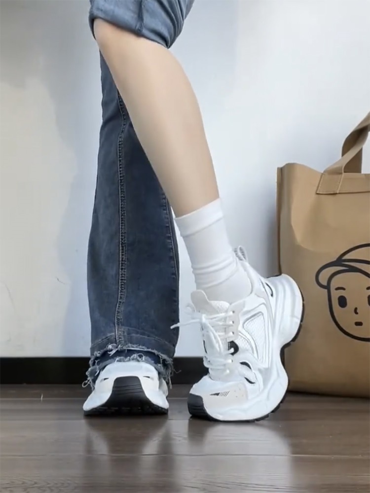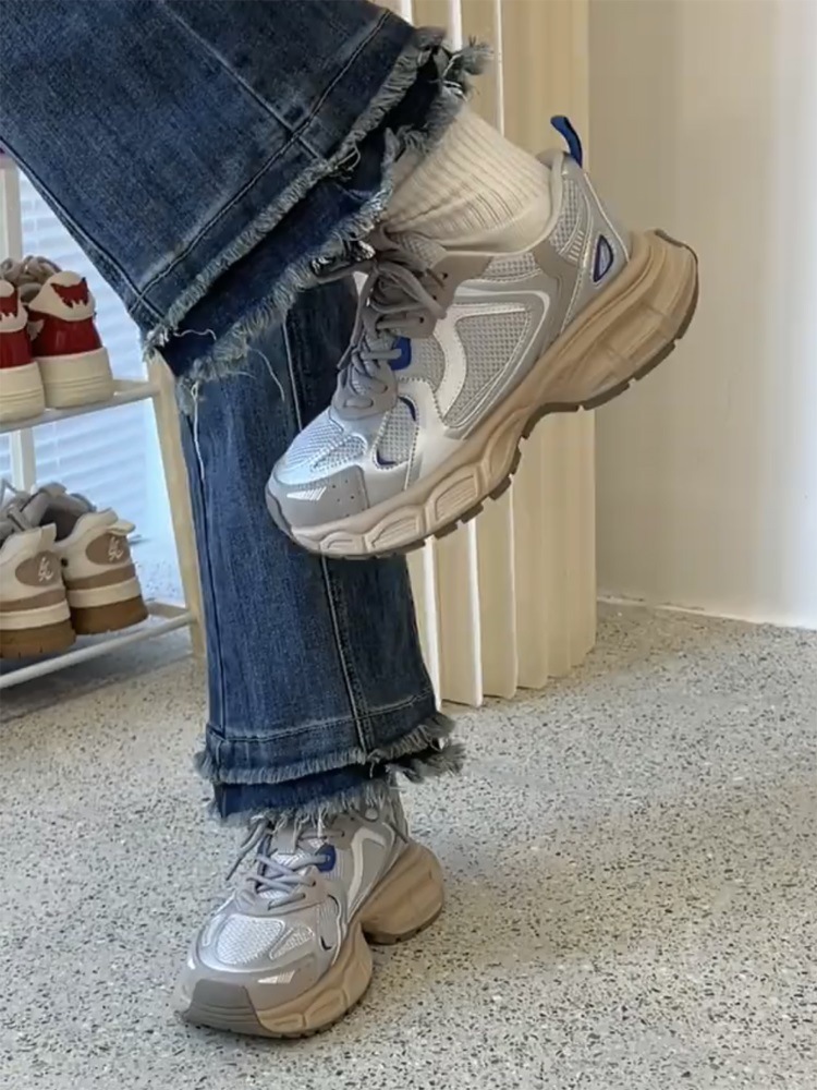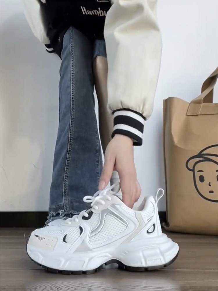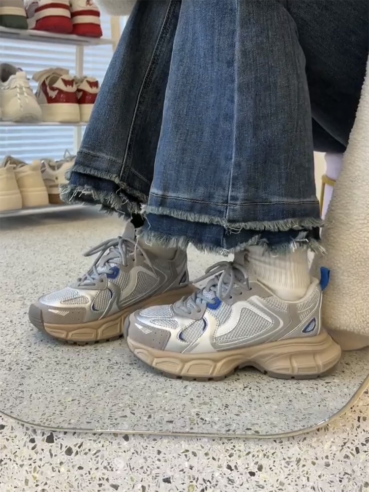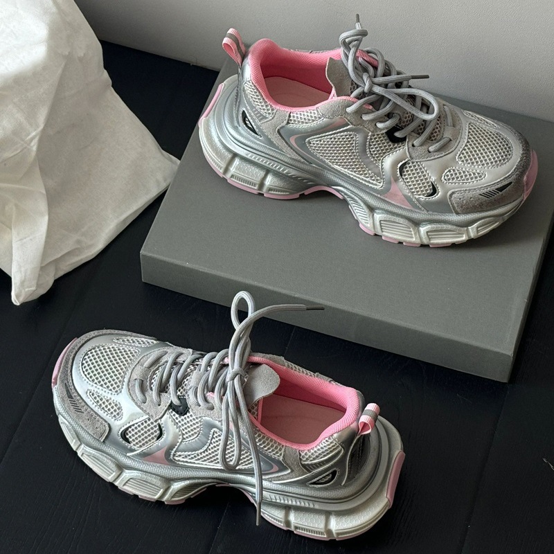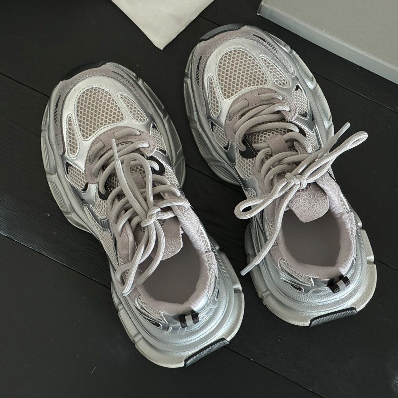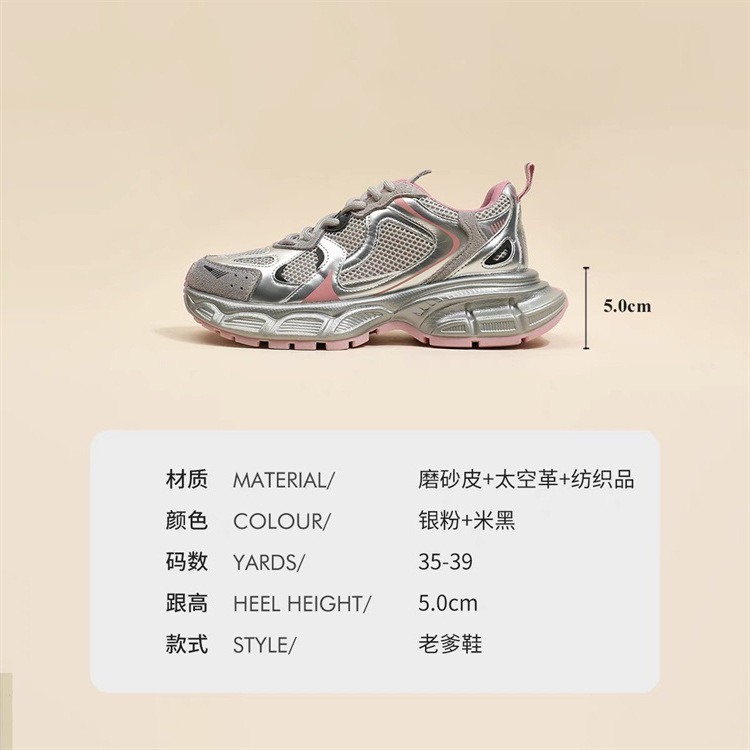 고급 실버 토레 신발 여성의 2025 년 봄과 가을 새로운 플랫폼 두꺼운 밑바닥 틈새 레저 스포츠 신발 증가