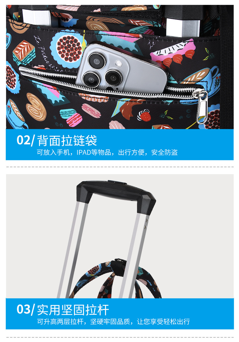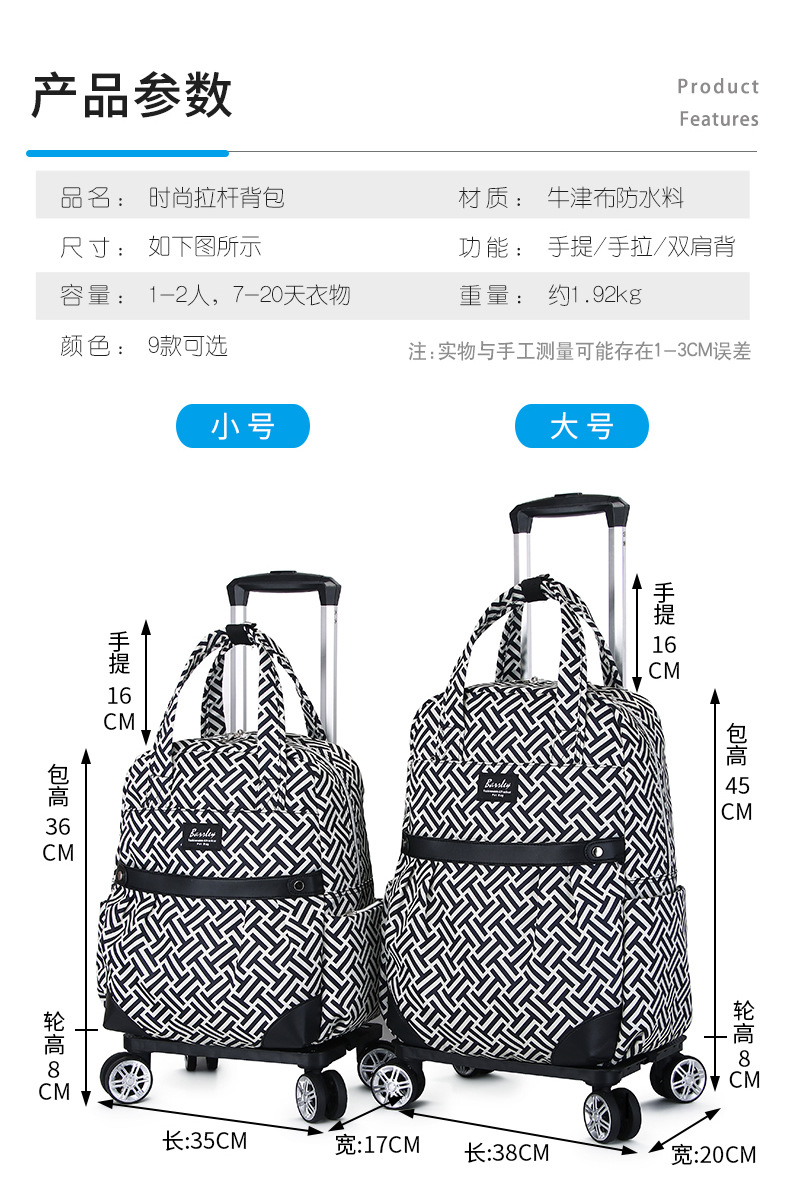 새로운 경량 트롤리 백팩 접이식 방수 여행 가방 대용량 탑승 트롤리 가방 유니버설 휠 수하물
