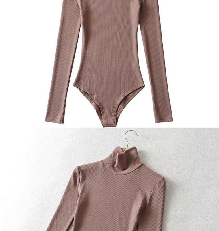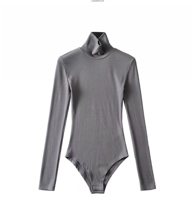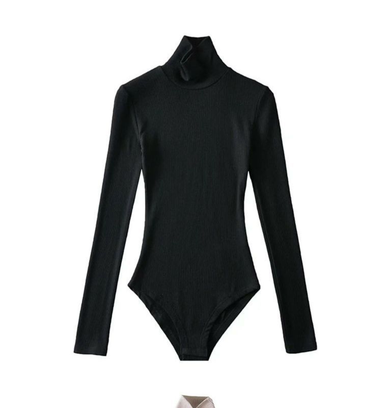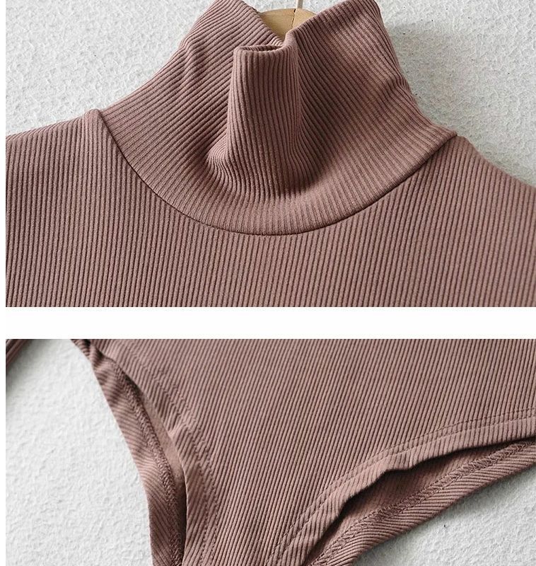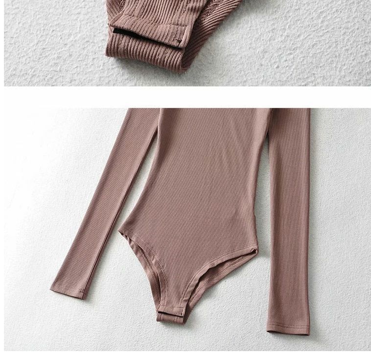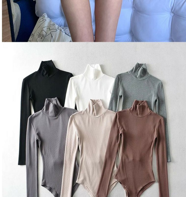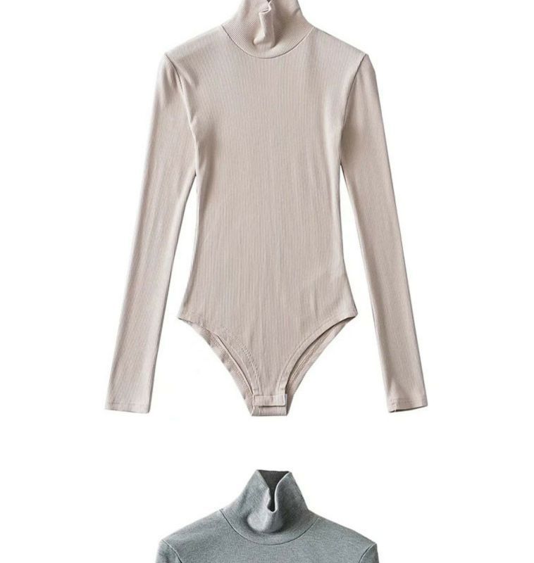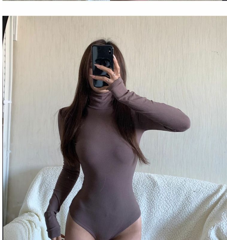 섹시한 터틀넥 슬림 핏 기본 긴팔 티셔츠 여성용 태국 단색 올인원 원피스 숨겨진 버클 및 크로 치 요가베이스 셔츠