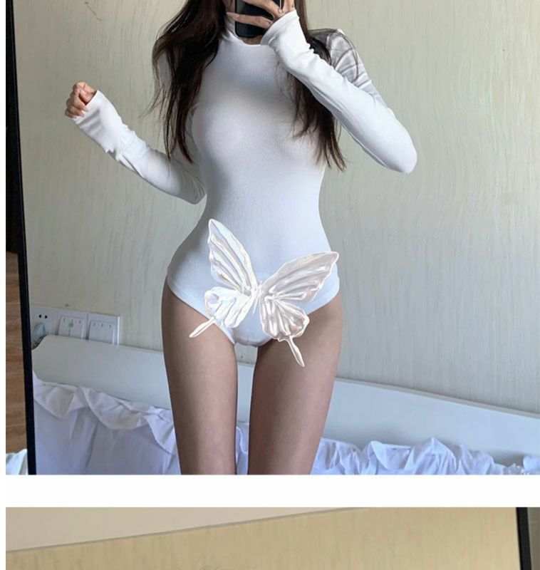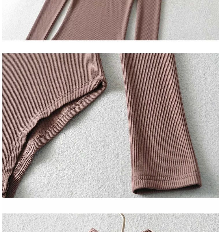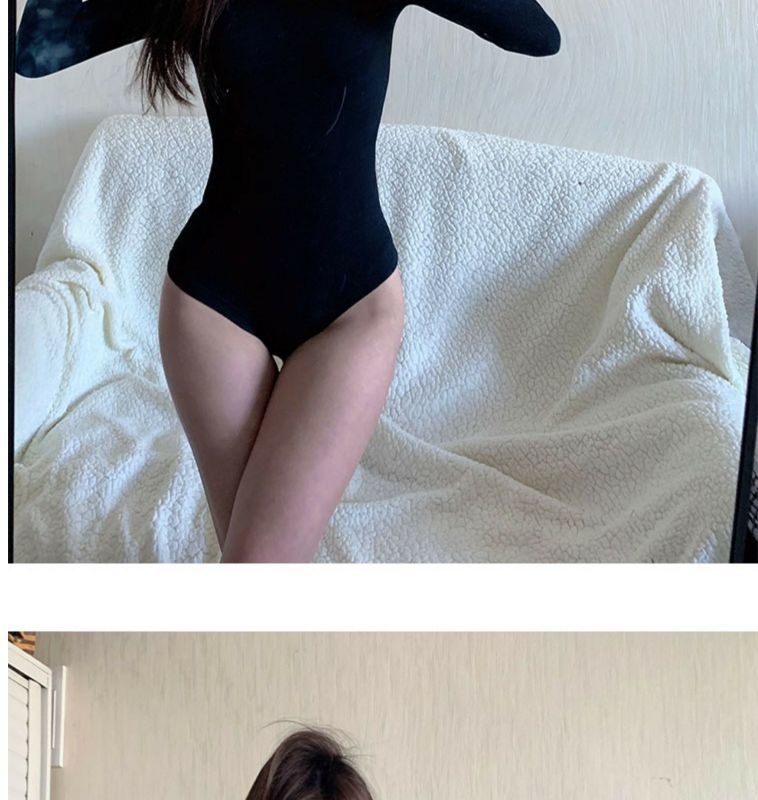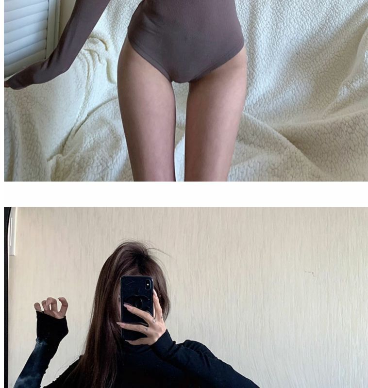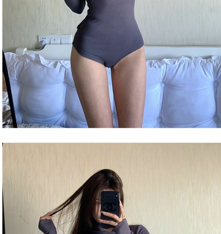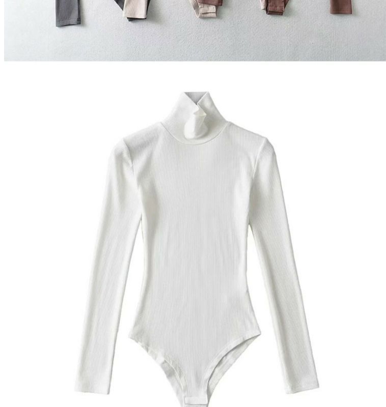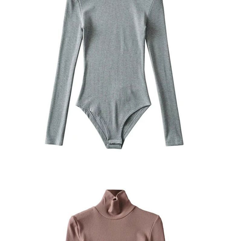 섹시한 터틀넥 슬림 핏 기본 긴팔 티셔츠 여성용 태국 단색 올인원 원피스 숨겨진 버클 및 크로 치 요가베이스 셔츠
