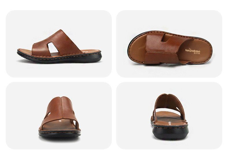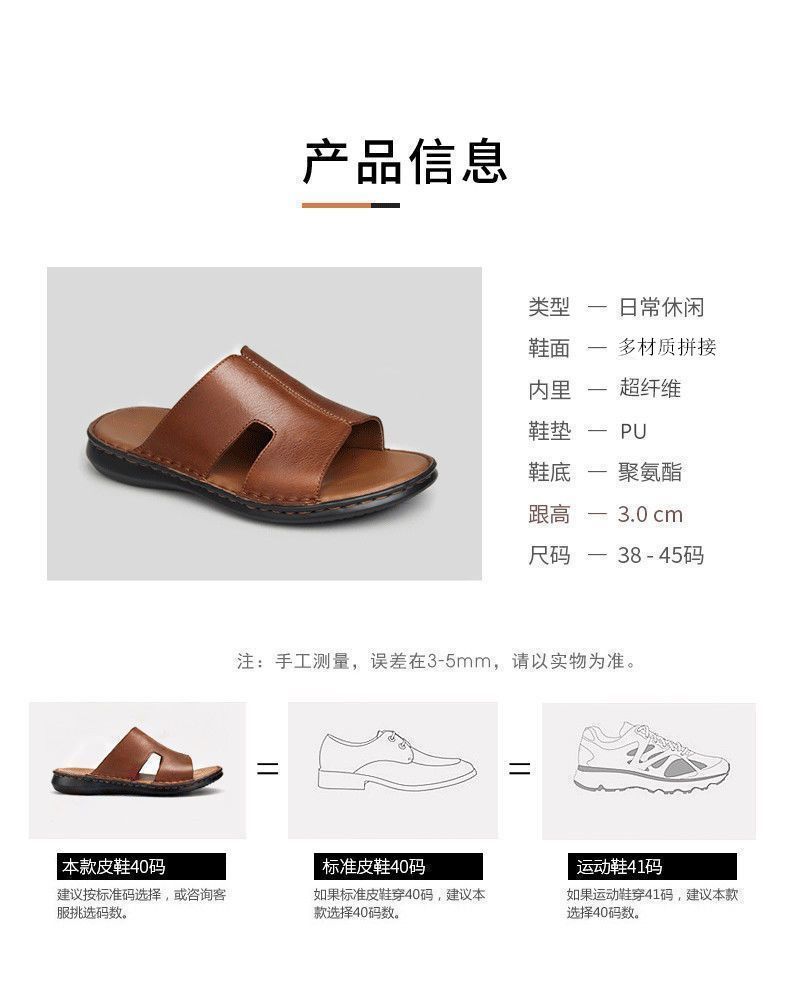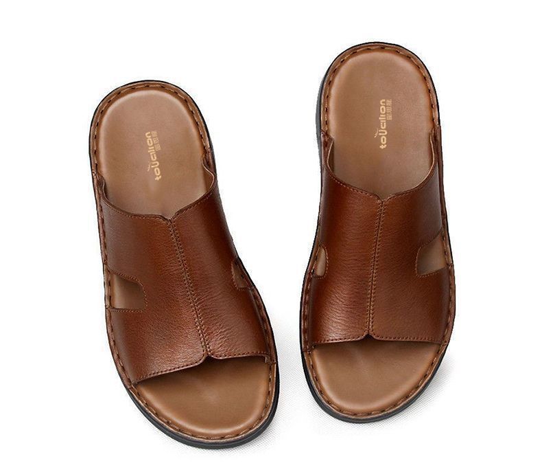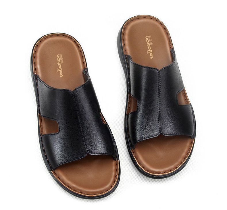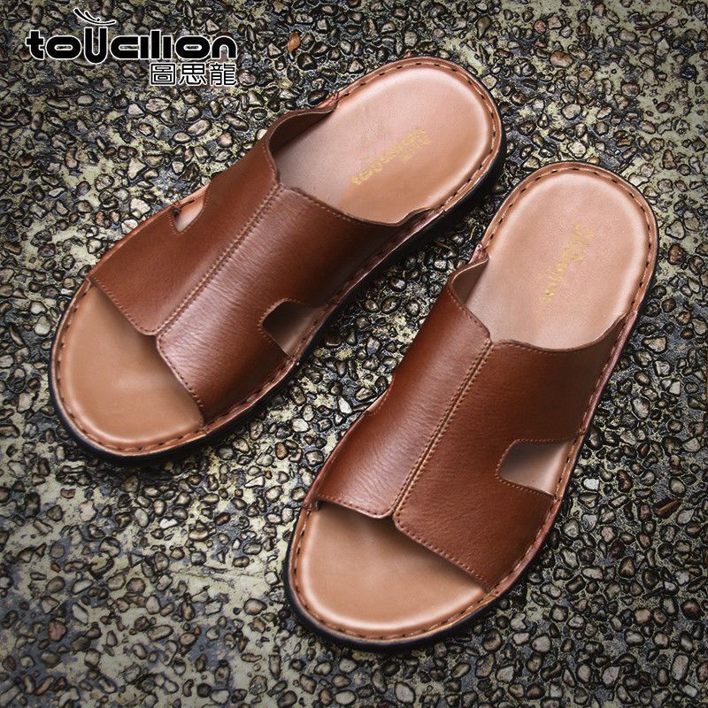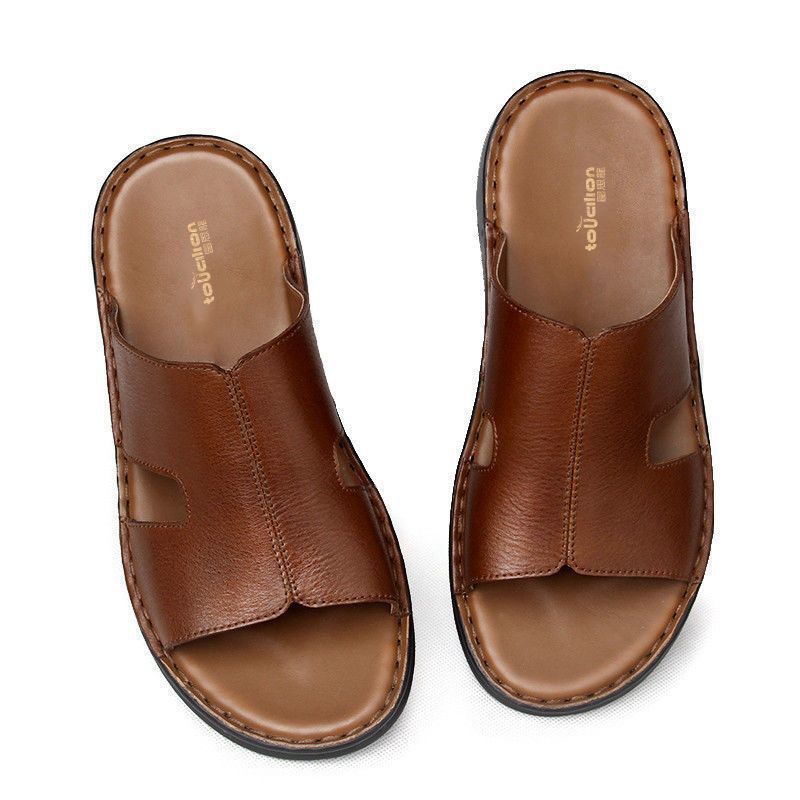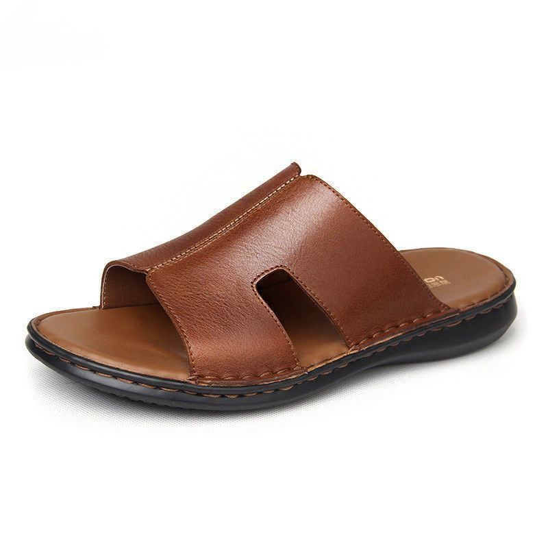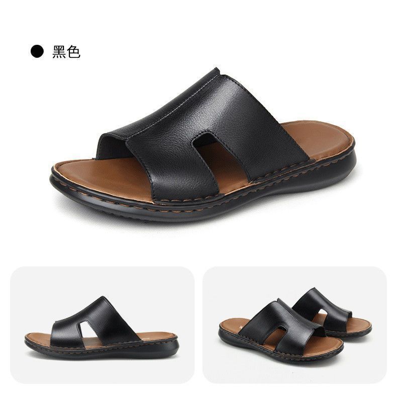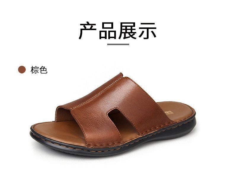 수제 남성용 가죽 슬리퍼 여름 미끄럼 방지 간단한 슬라이드 소프트 가죽 소프트 하단 정품 가죽 남성용 슬리퍼