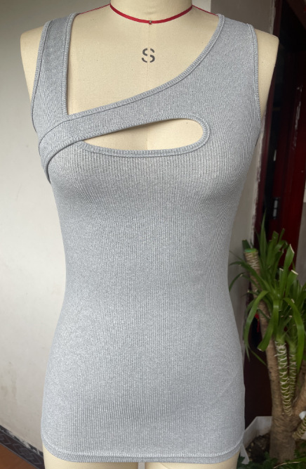 2025 유럽과 미국의 국경 간 여름 절개 여성 조끼 민소매 셔츠 갈비 섹시한 스파이스 걸스 기본 여성 티셔츠