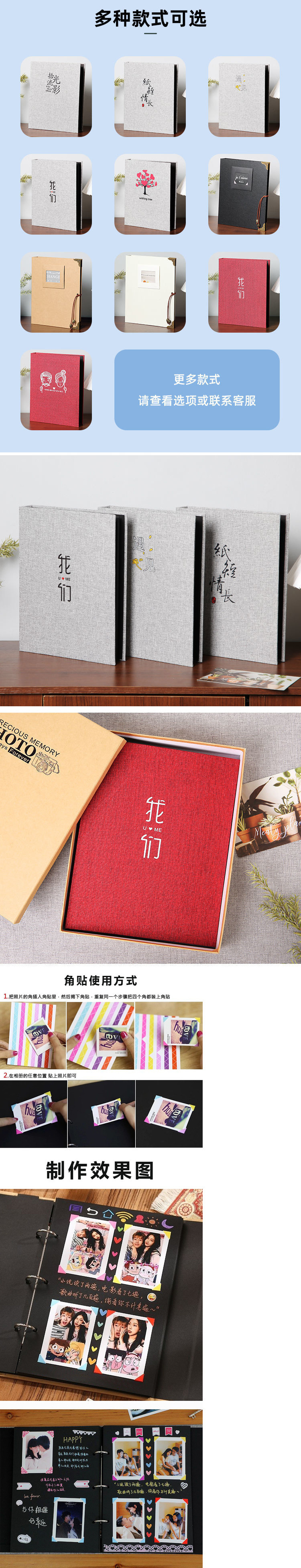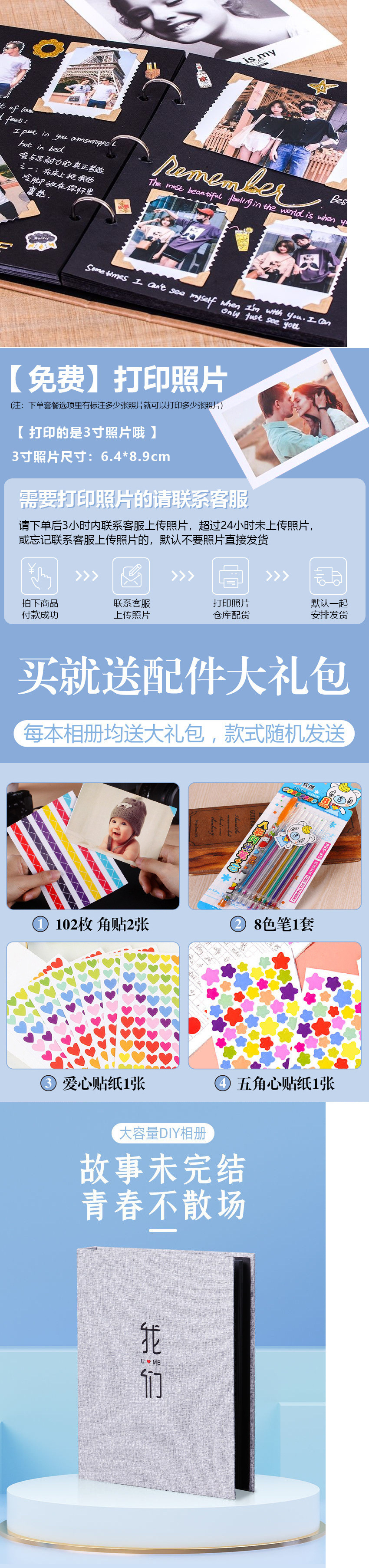 성장 핸드북 사진 앨범 Diy 수제 창조적 창조 520 커플 사진 앨범 컬렉션 스티커 천 기념 앨범