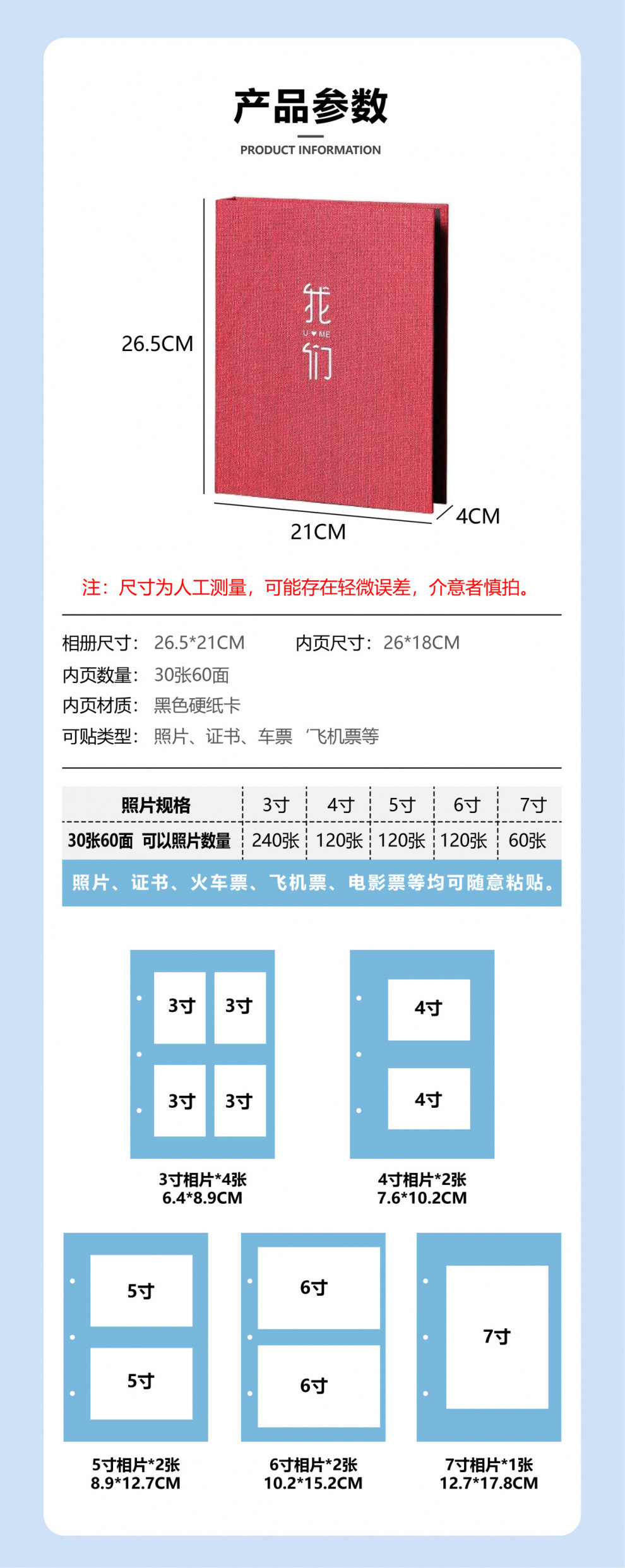 Qiqin 사진 앨범/액세서리 패키지/사진 없음