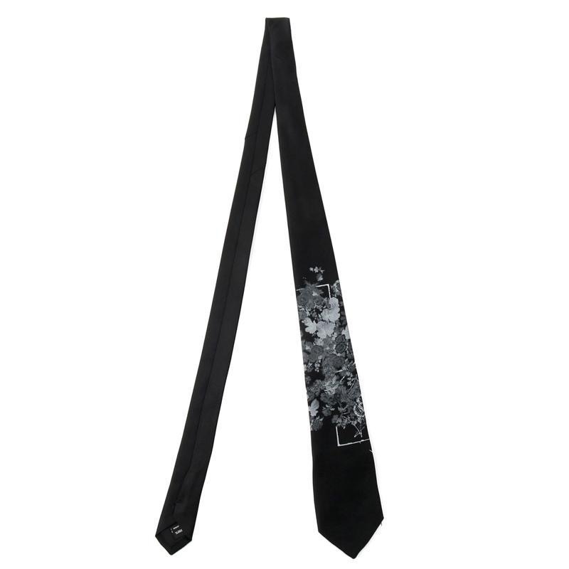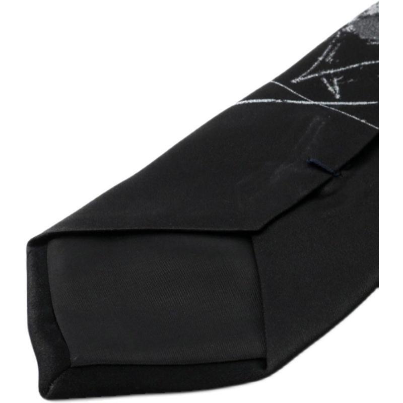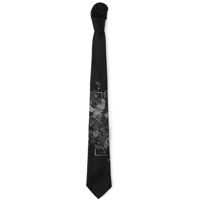 야마모토 꽃과 뼈 프린트 유니섹스 넥타이, 다크하고 개성 넘치는 패션