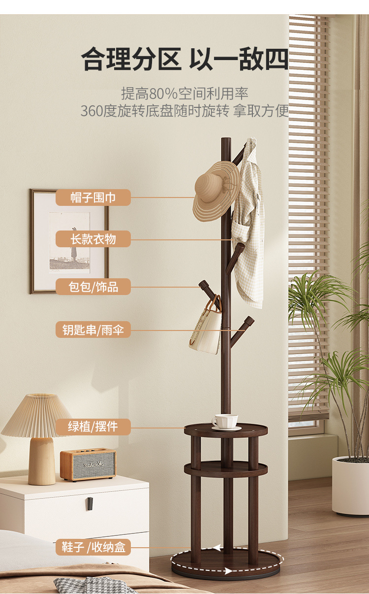 HH112 심플한 다층 옷걸이 우드 컬러 회전