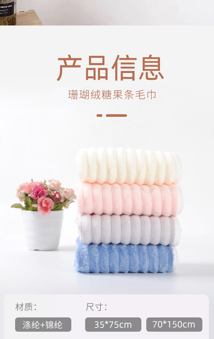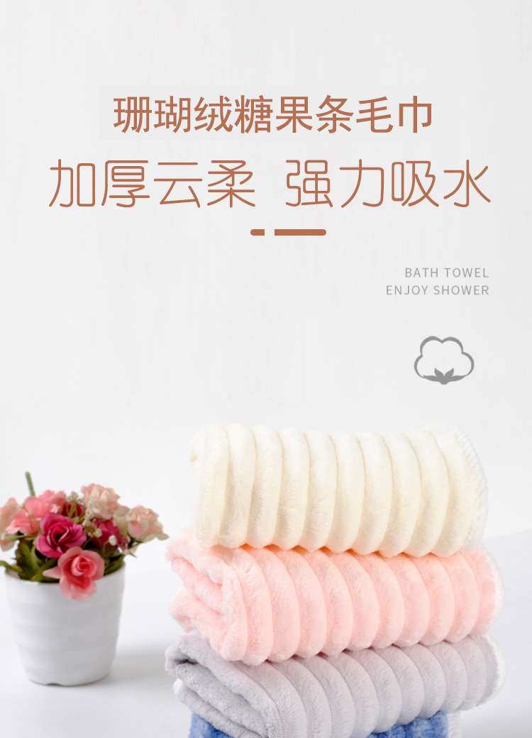 캔디 스트립 산호 양털 수건 부드러운 흡수성 빠른 건조 보풀이없는 두꺼운 수건 부드러운 솜털 30cm * 60cm