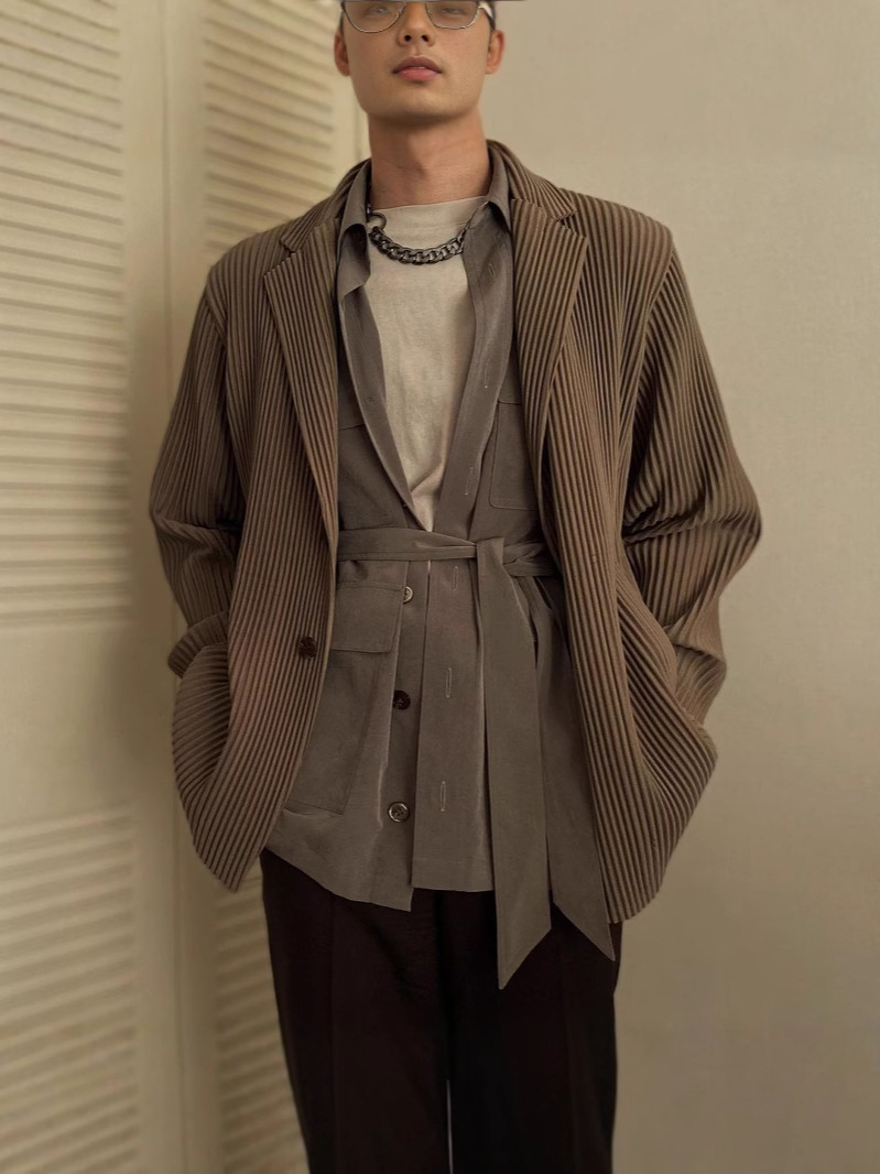 미야케 플리츠 주름 정장 긴팔 남성 재킷 라펠 루즈핏 캐주얼 해외 무역 JD201 일본 스타일