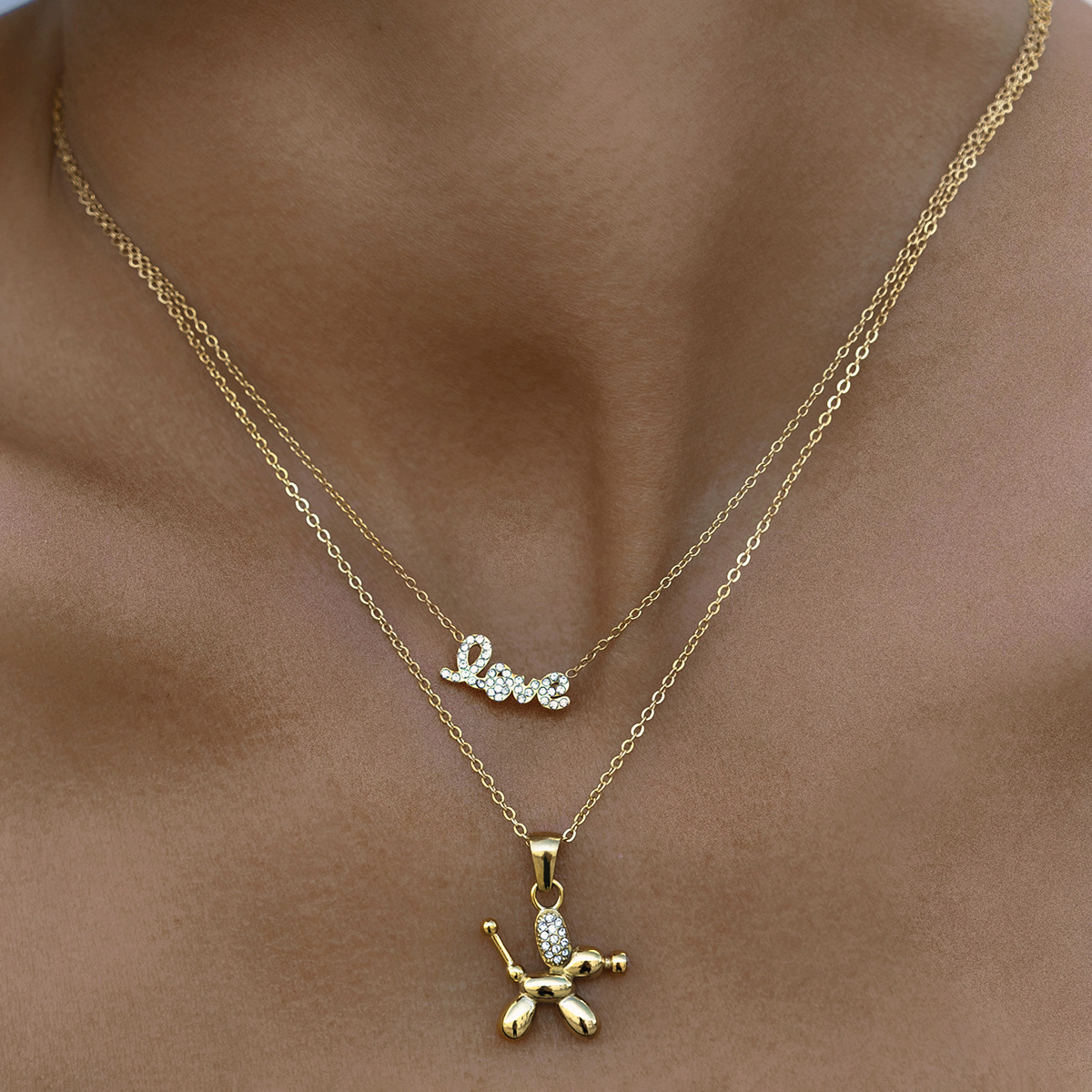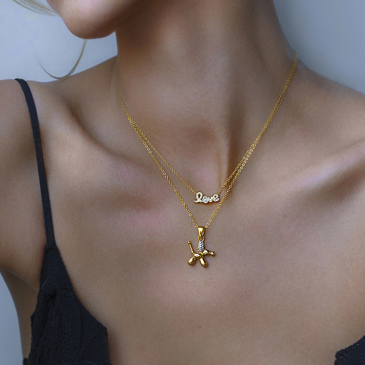 유럽과 미국의 스테인레스 스틸 모조 다이아몬드 개 목걸이 액세서리 감각 편지 쇄골 체인 티타늄 스틸 보석 국경 간 AI