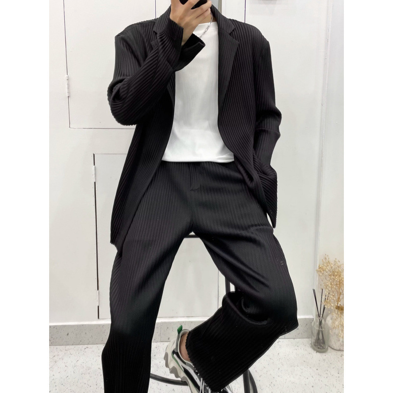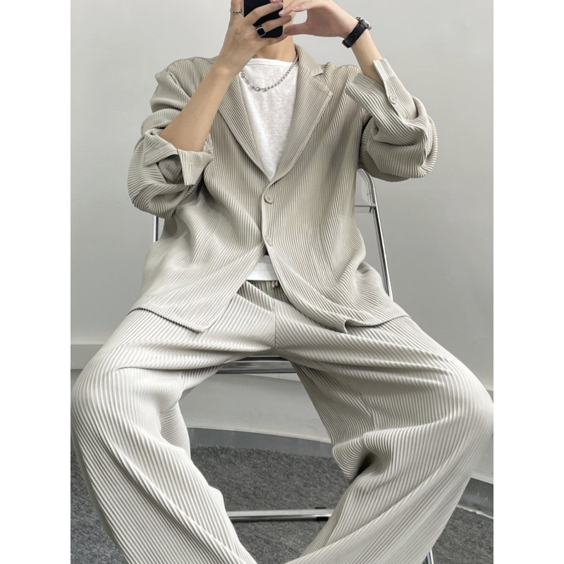 Pleated 세트 세트 남성 봄과 가을 Ruffian 핸섬 느슨한 패션 브랜드 캐주얼 Yuppie 세트 간단한 draped 투피스 세트