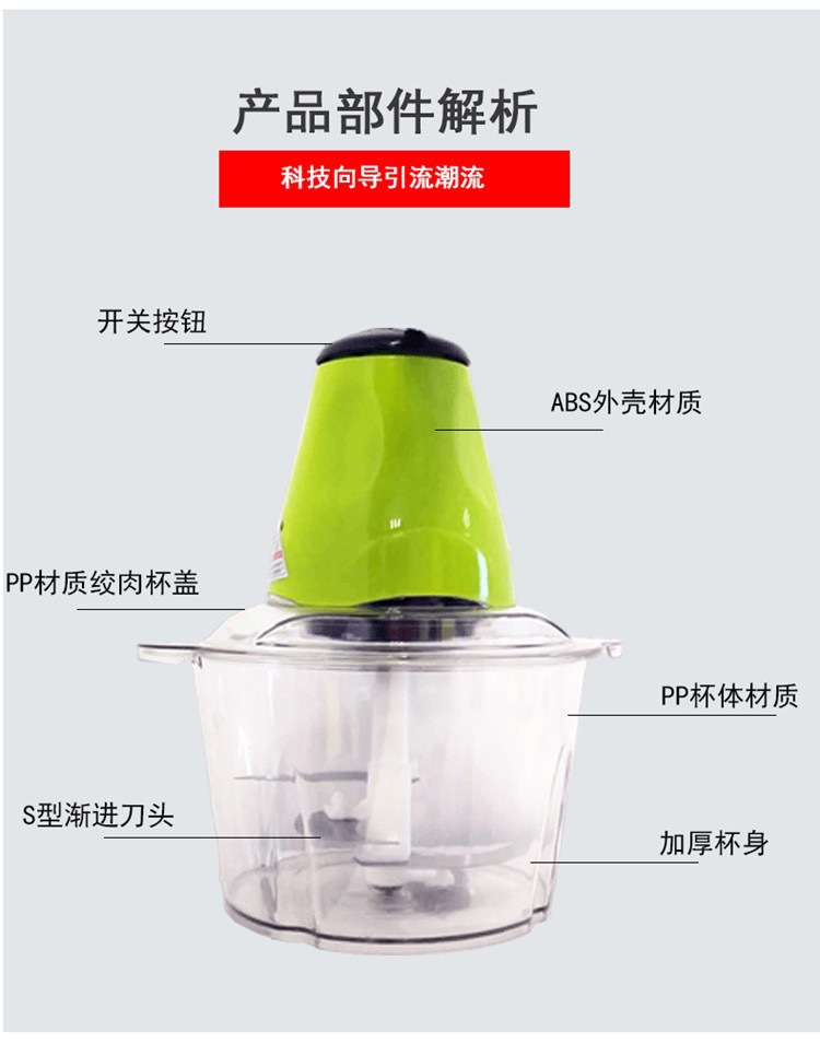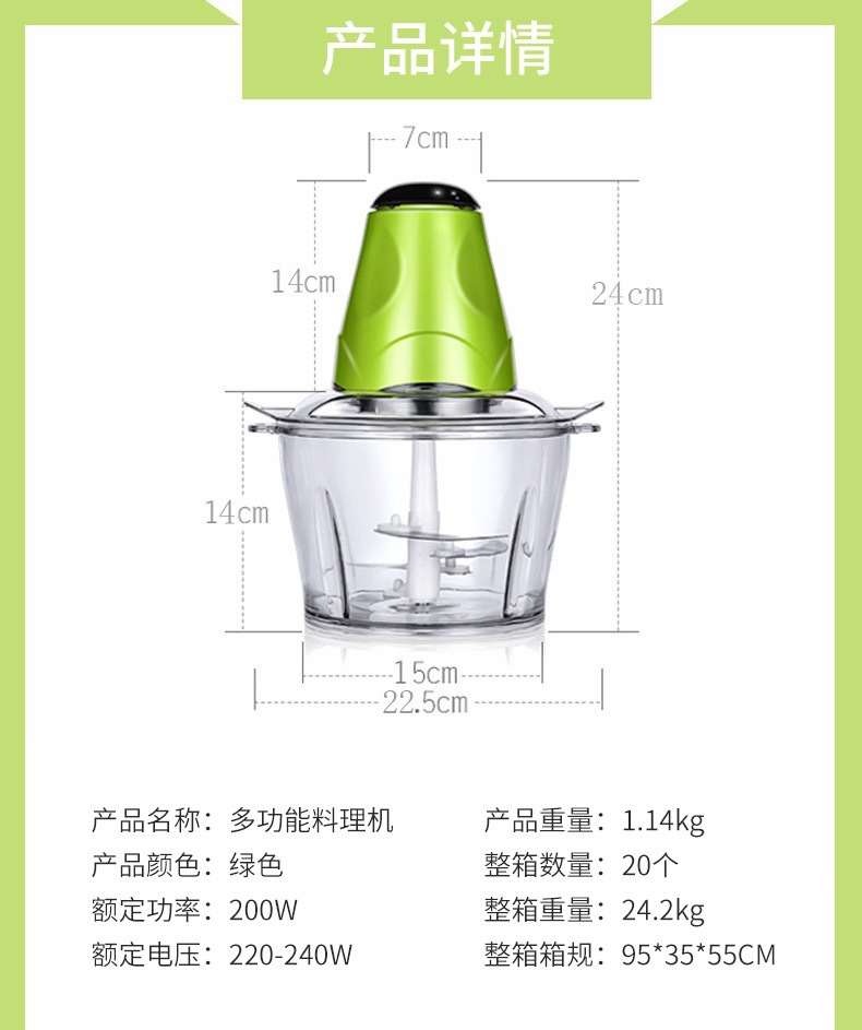 새로운 2 리터 주방 가정용 고기 분쇄기 다용도 갈은 고기 분쇄 야채 혼합 요리 기계 작은 고기 분쇄기