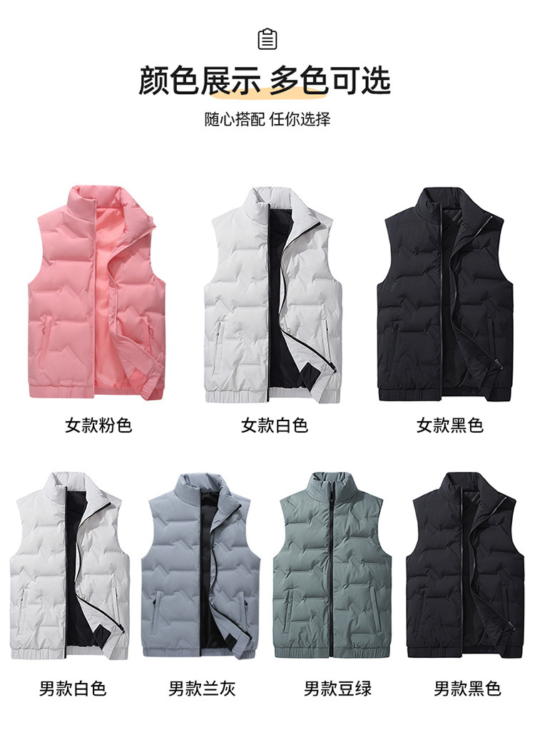 남성과 커플을 위한 가을 겨울 경량 다운 조끼, 같은 스타일의 솔리드 컬러 스탠드 칼라 조끼, 캐주얼 가디건, 대형 사이즈