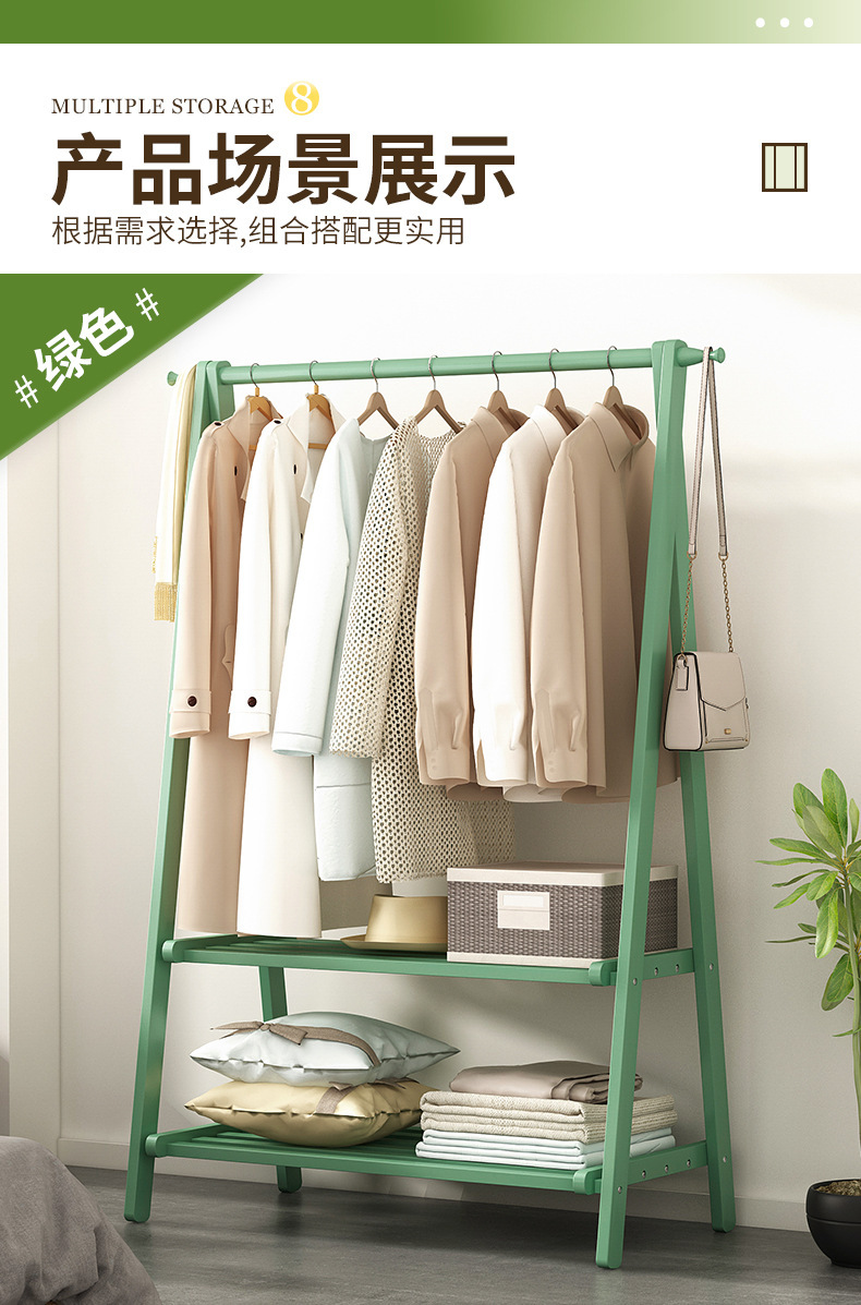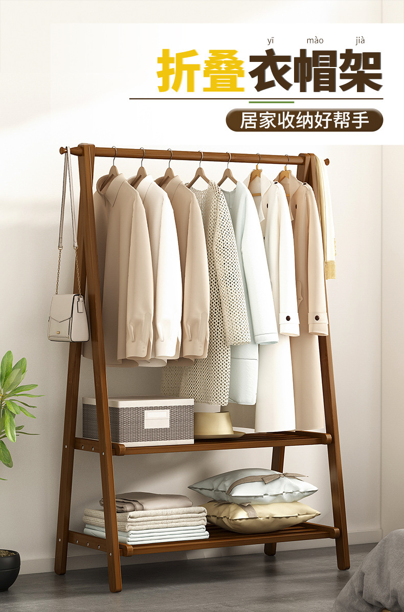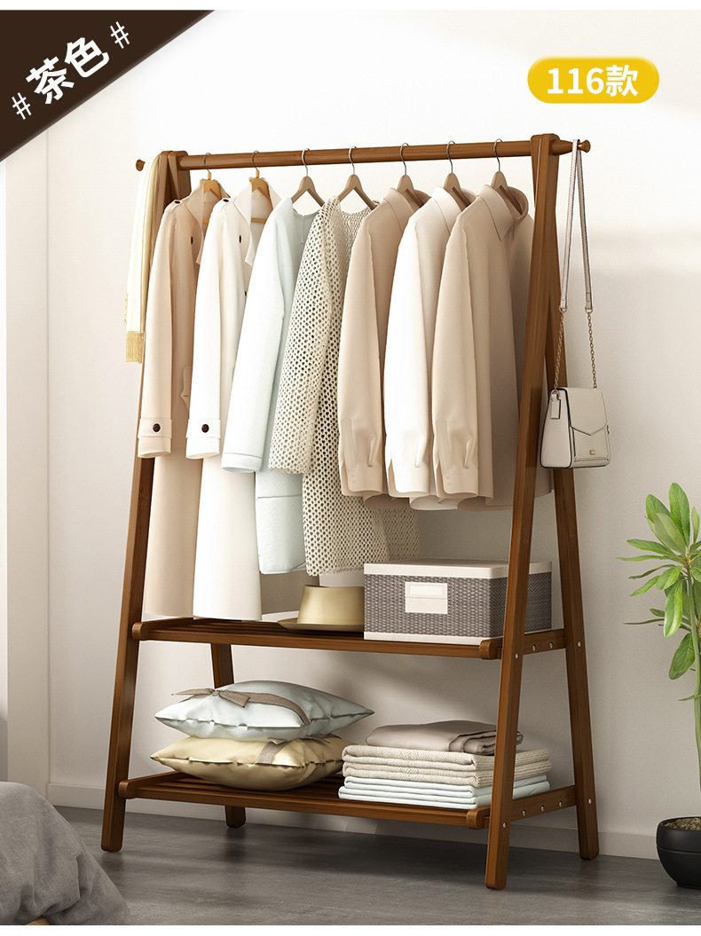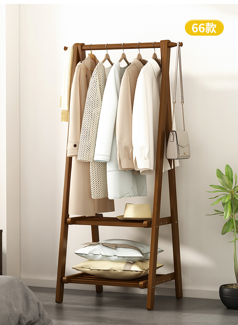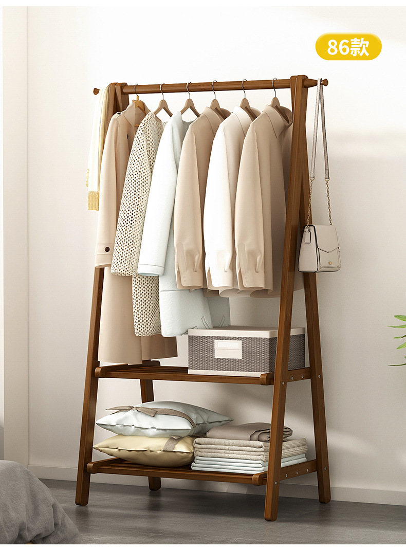 옷걸이 간단한 바닥 장착 침실 가정용 의류 옷걸이 코트 랙 인터넷 축하 스토리지 랙 솔리드 우드 교수형 가방 보관 랙