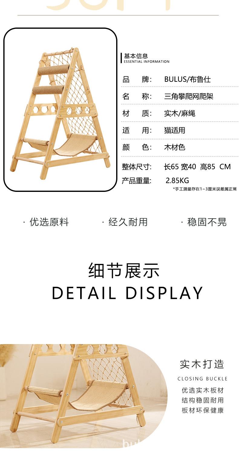 고양이 등반 랙 큰 고양이 랙, 고양이 스크래치 등반 메쉬 다기능 고양이 해먹 삼각형 안정