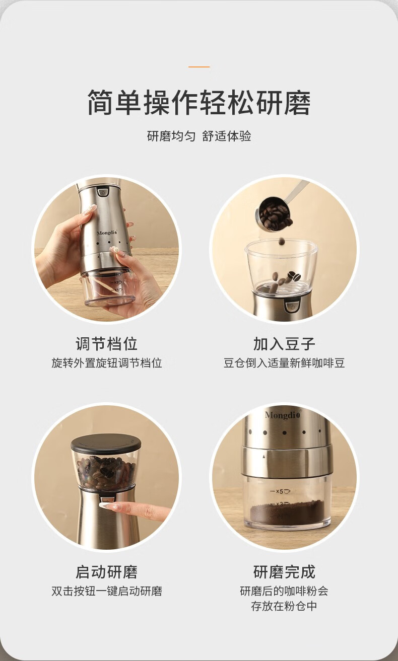 몽디오 커피 분쇄기 전기 콩 분쇄기 커피 기계 커피 분말 가정용 자동 콩 분쇄기